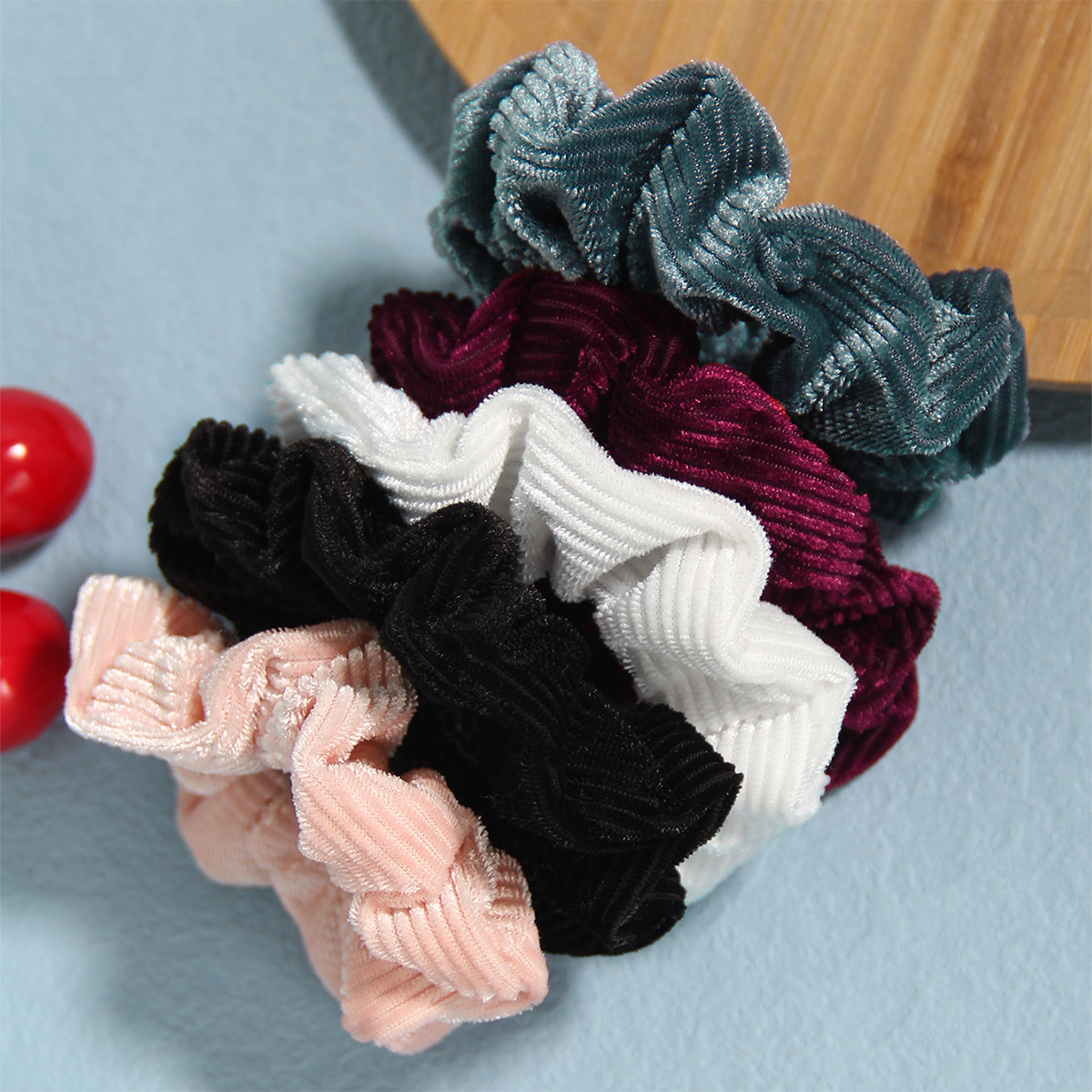 时尚纯色条纹绒布大肠发圈凹凸感条纹发饰日常通勤百搭头饰