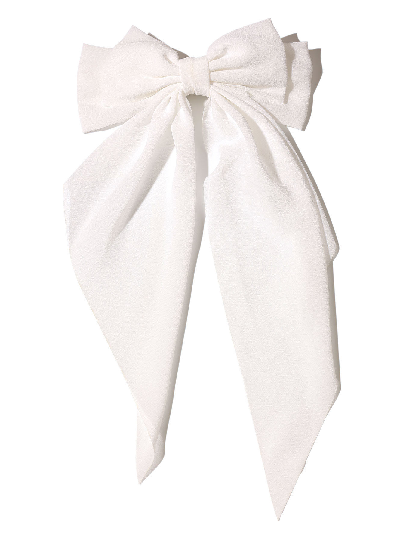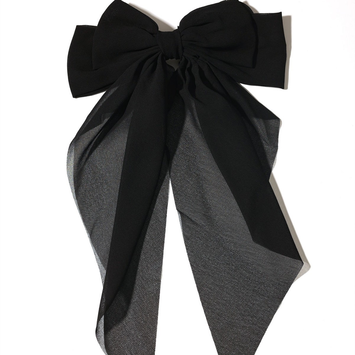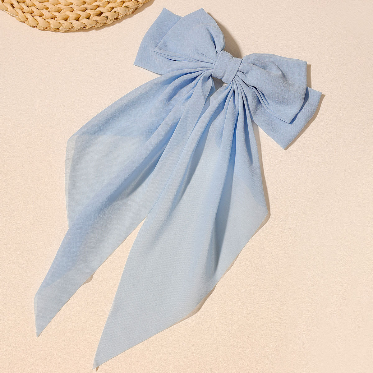 时尚雪纺纯色蝴蝶结弹簧夹布艺长飘带甜美少女半扎发发夹发饰
