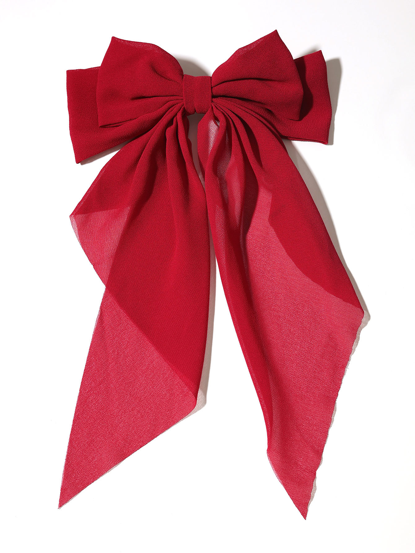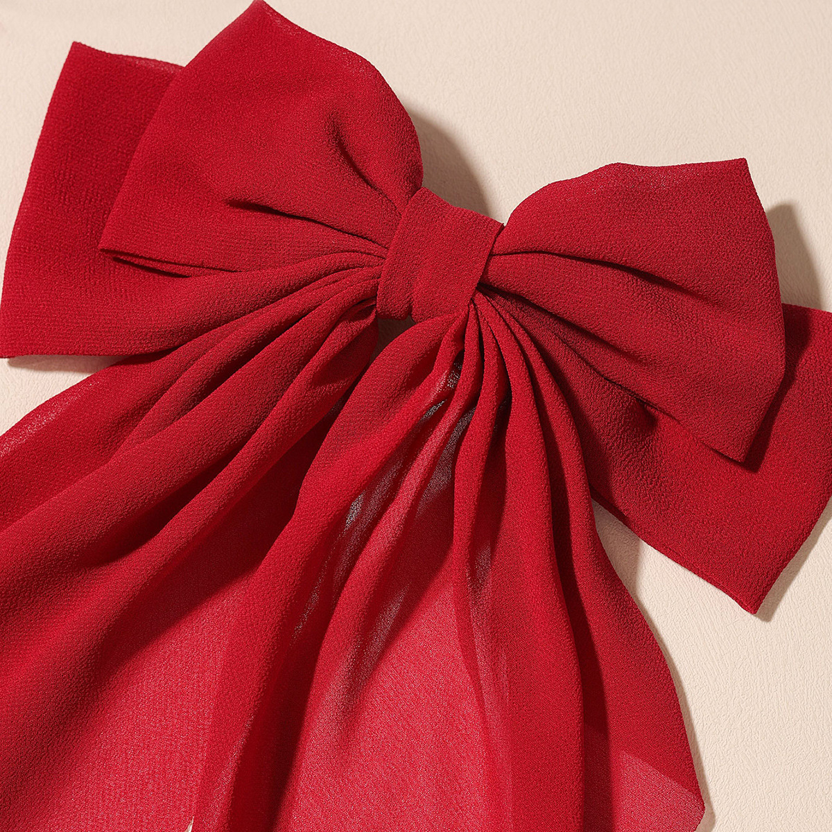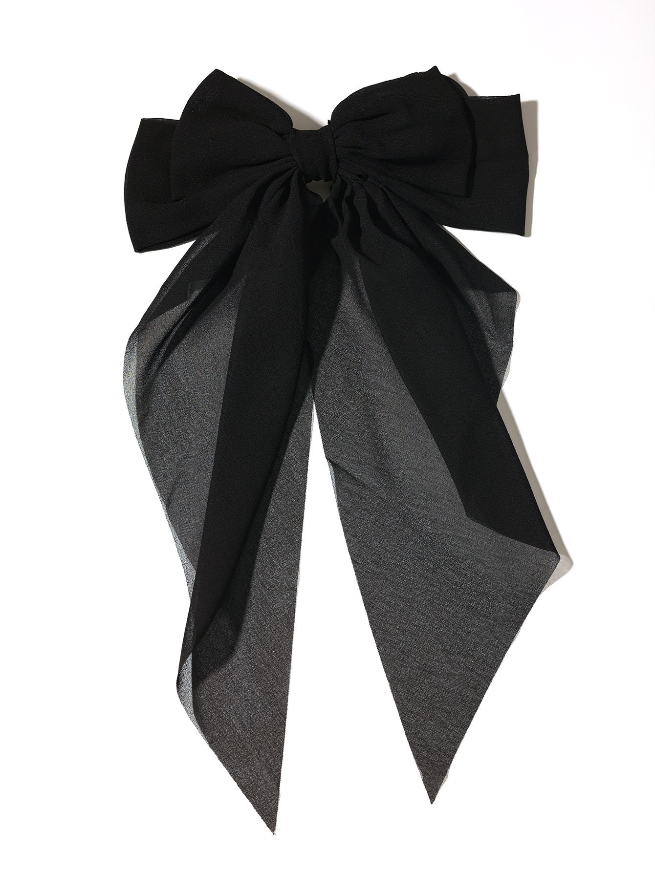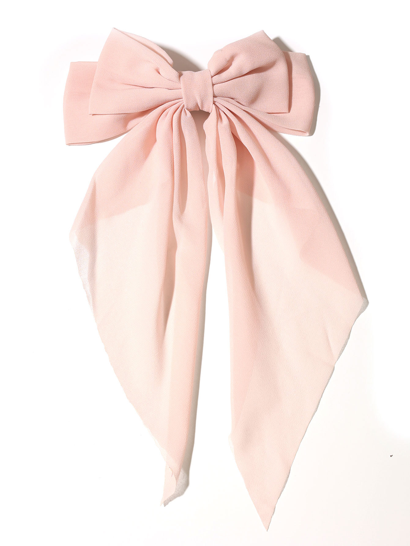 时尚雪纺纯色蝴蝶结弹簧夹布艺长飘带甜美少女半扎发发夹发饰
