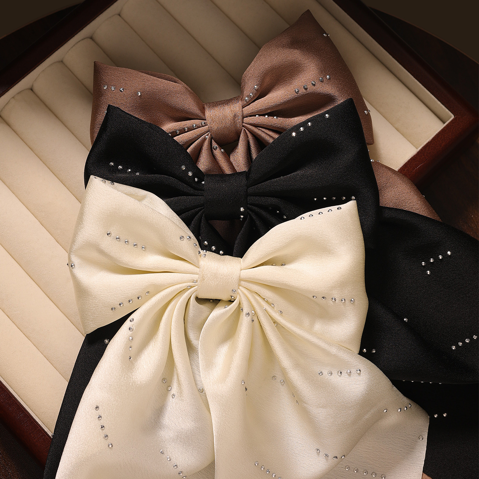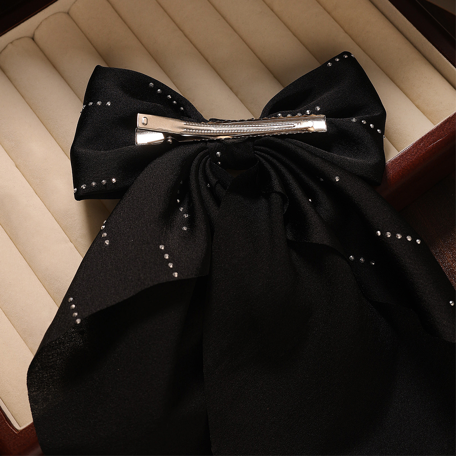 时尚点钻装饰蝴蝶结鸭嘴夹气质纯色后脑勺甜美半扎发马尾夹发饰