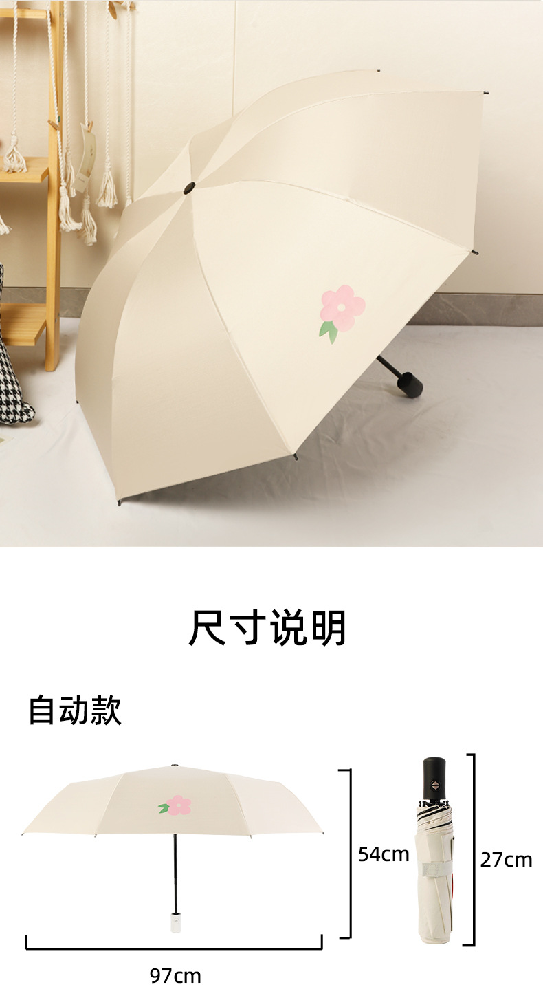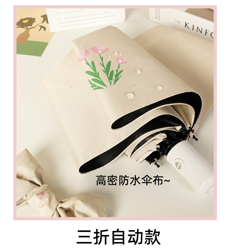 全自动雨伞女高颜值晴雨两用 结实耐用遮阳伞ins风小众黑胶太阳伞