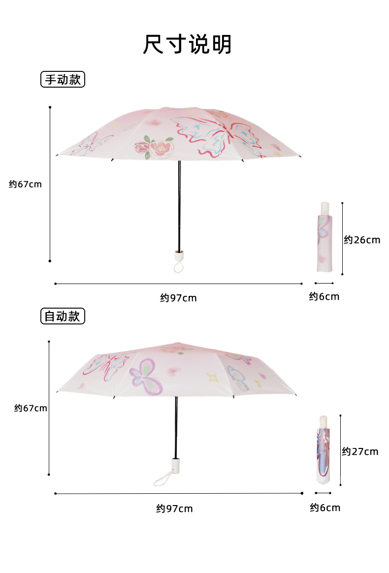 [automatic double dragon bone reinforcement] vinyl sun protective-flower butterfly(【自动双龙骨加固】黑胶防晒-花蝴蝶) USD $2.89 876 piece available