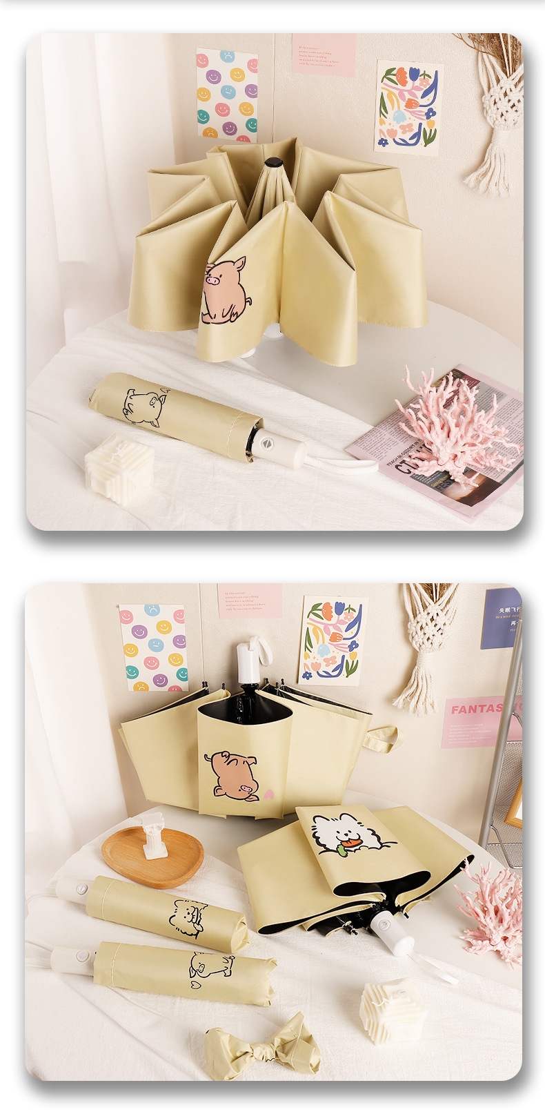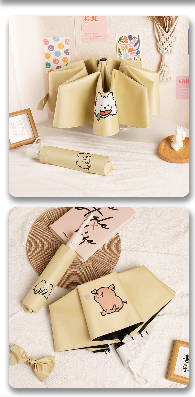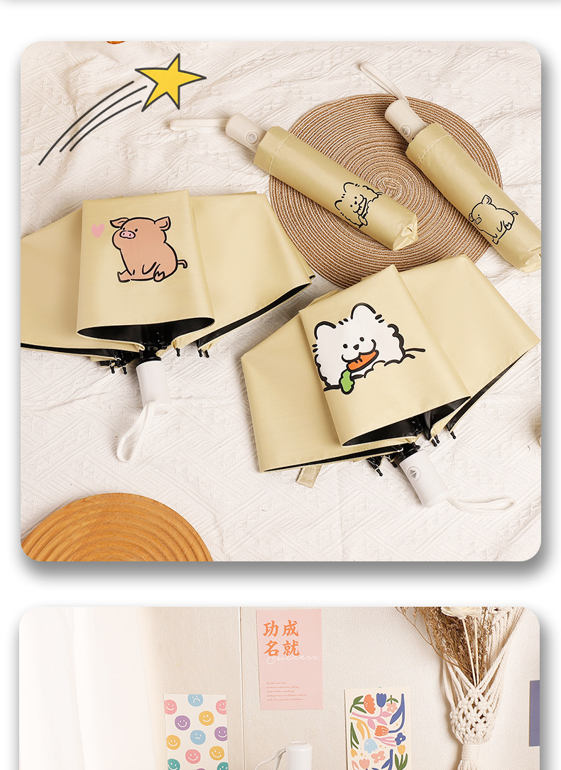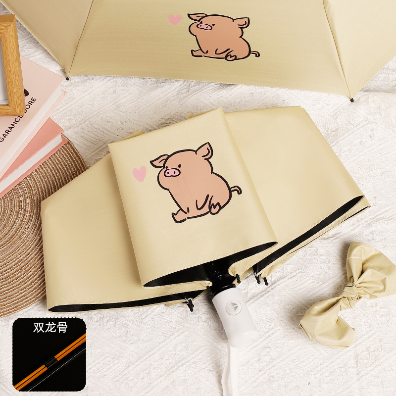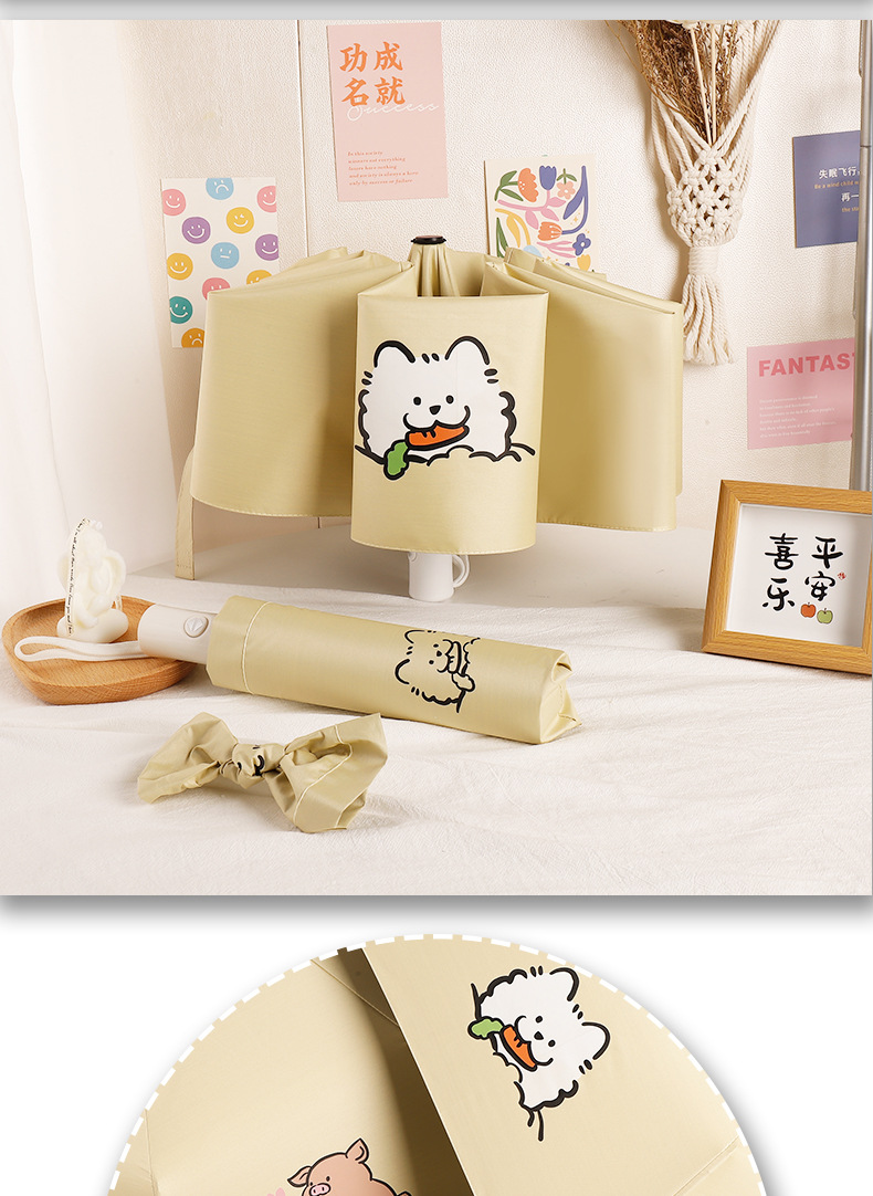[automatic] 16-segment double fiber rain and rain dual-use bright yellow-naughty pig(【自动】16段双纤维晴雨两用玉子黄- 调皮猪) USD $2.82 973 piece available