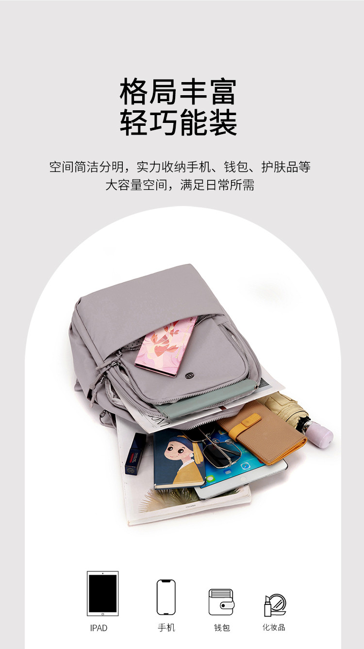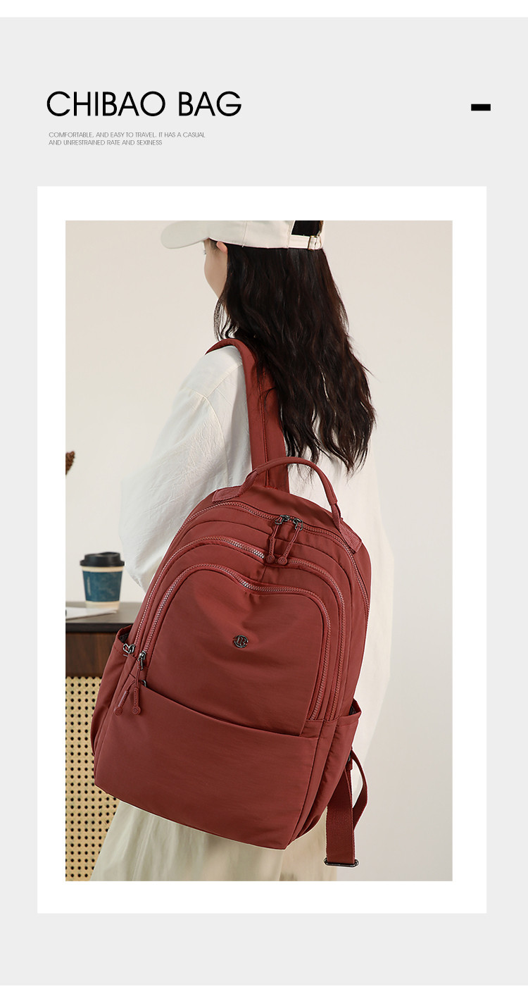 驰豹简约风双肩包女大容量通勤电脑包轻便防泼水旅游尼龙背包