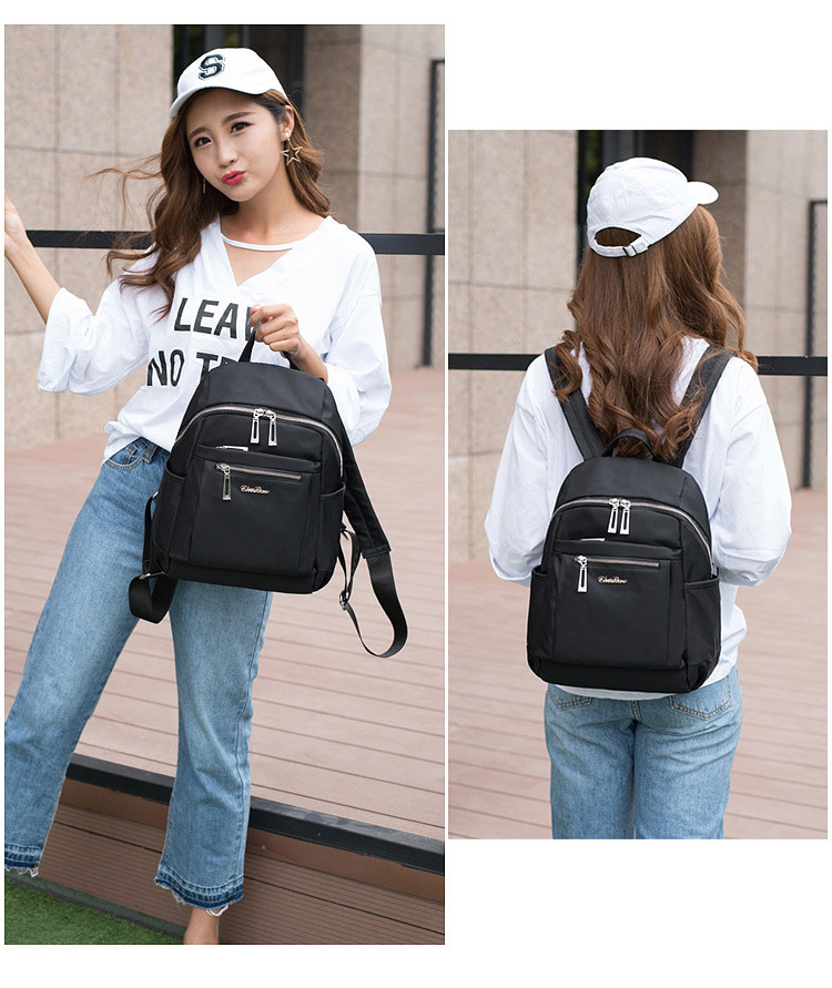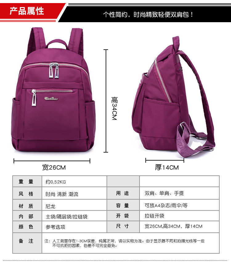驰豹牛津布双肩包女韩版百搭帆布尼龙学生书包旅游休闲时尚背包包