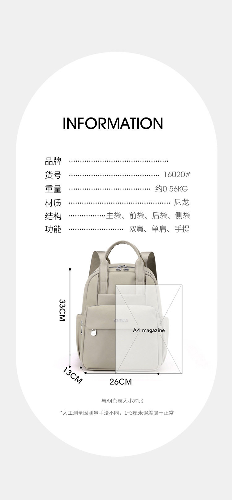 驰豹2024新款妈咪包时尚大容量牛津布背包女手提士旅行电脑书包包