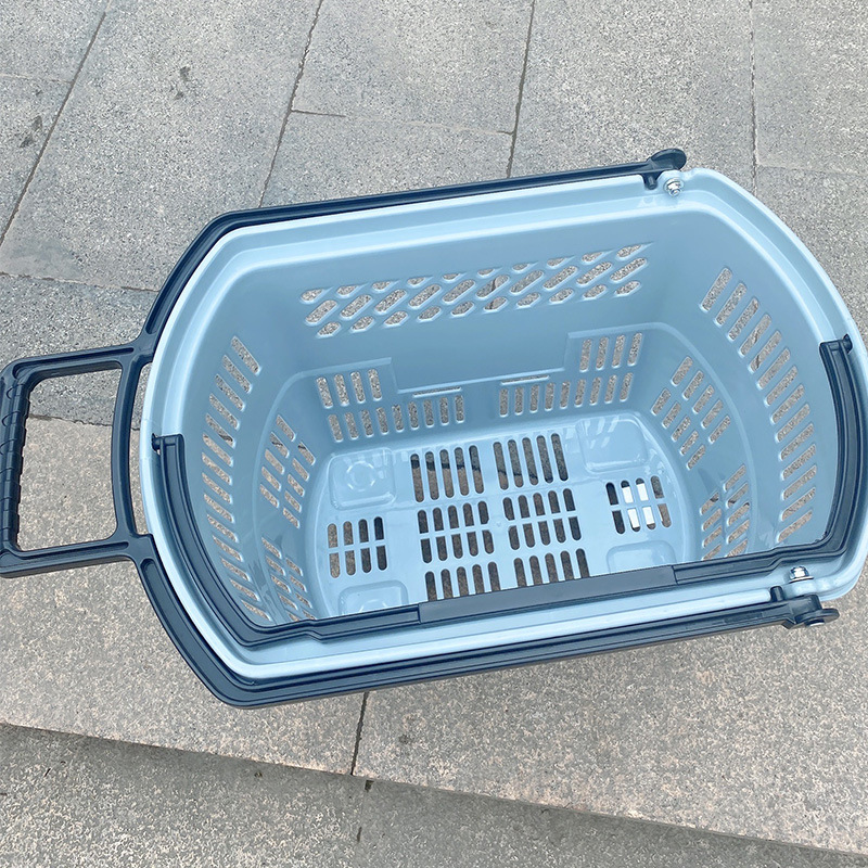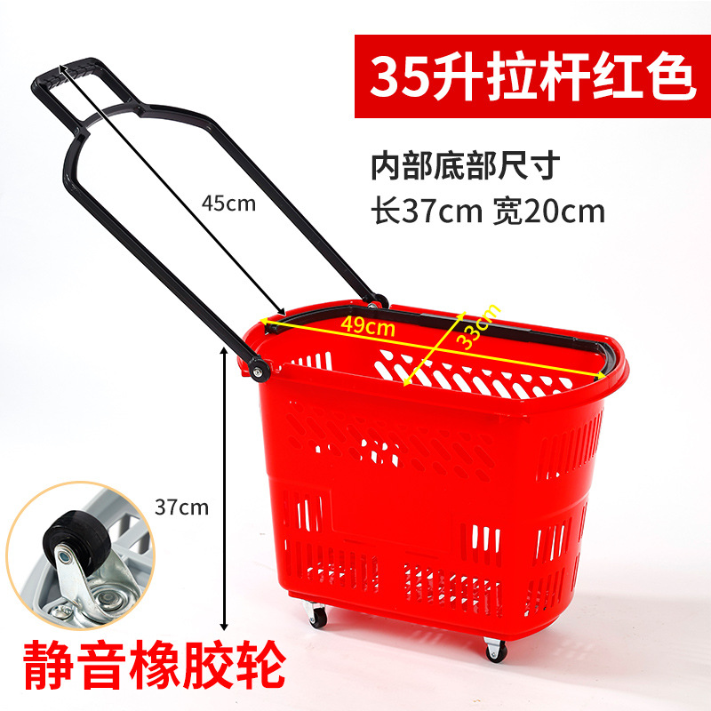 超市购物篮拉杆带轮便利店塑料买菜手提篮子零食购物筐加厚超批发