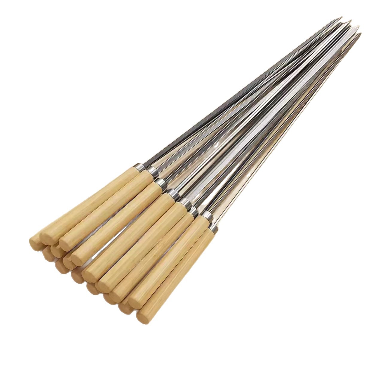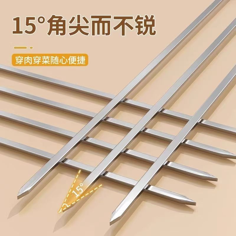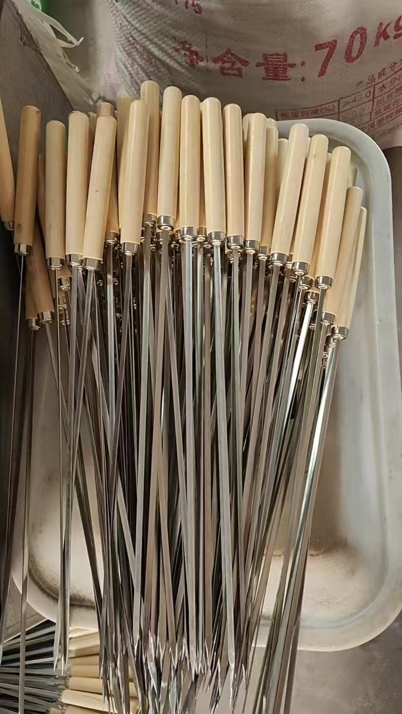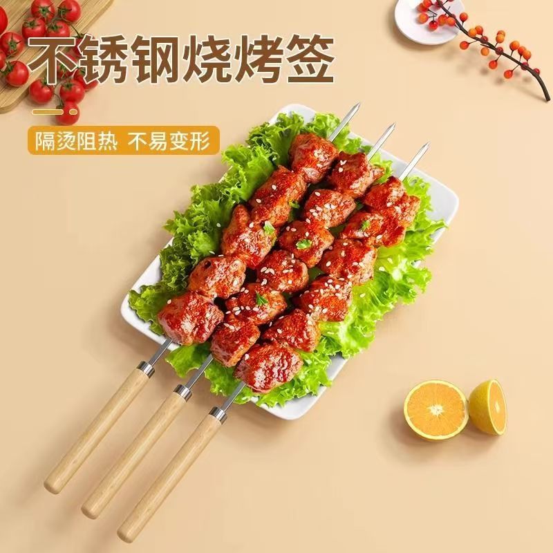 烧烤签批发不锈钢木柄烧烤针羊肉串铁签子烧烤工具烧烤签子扁签子