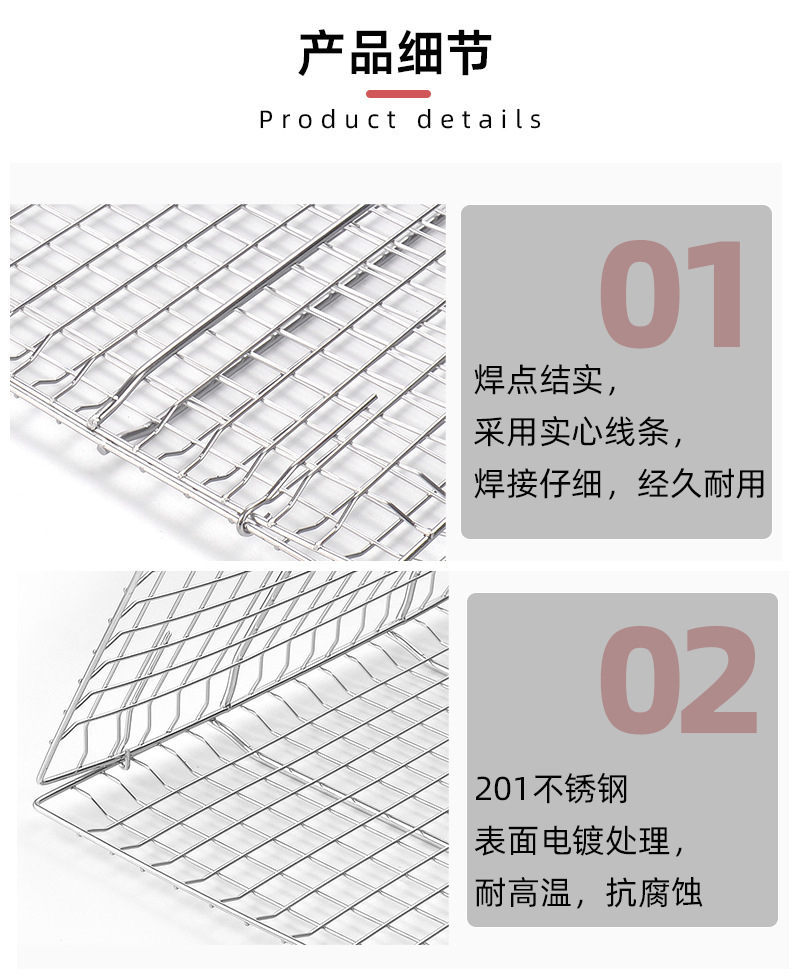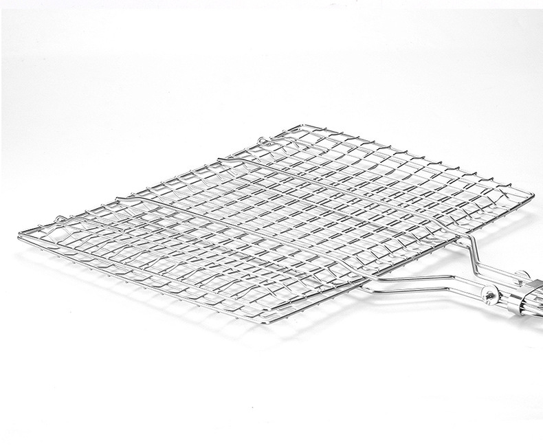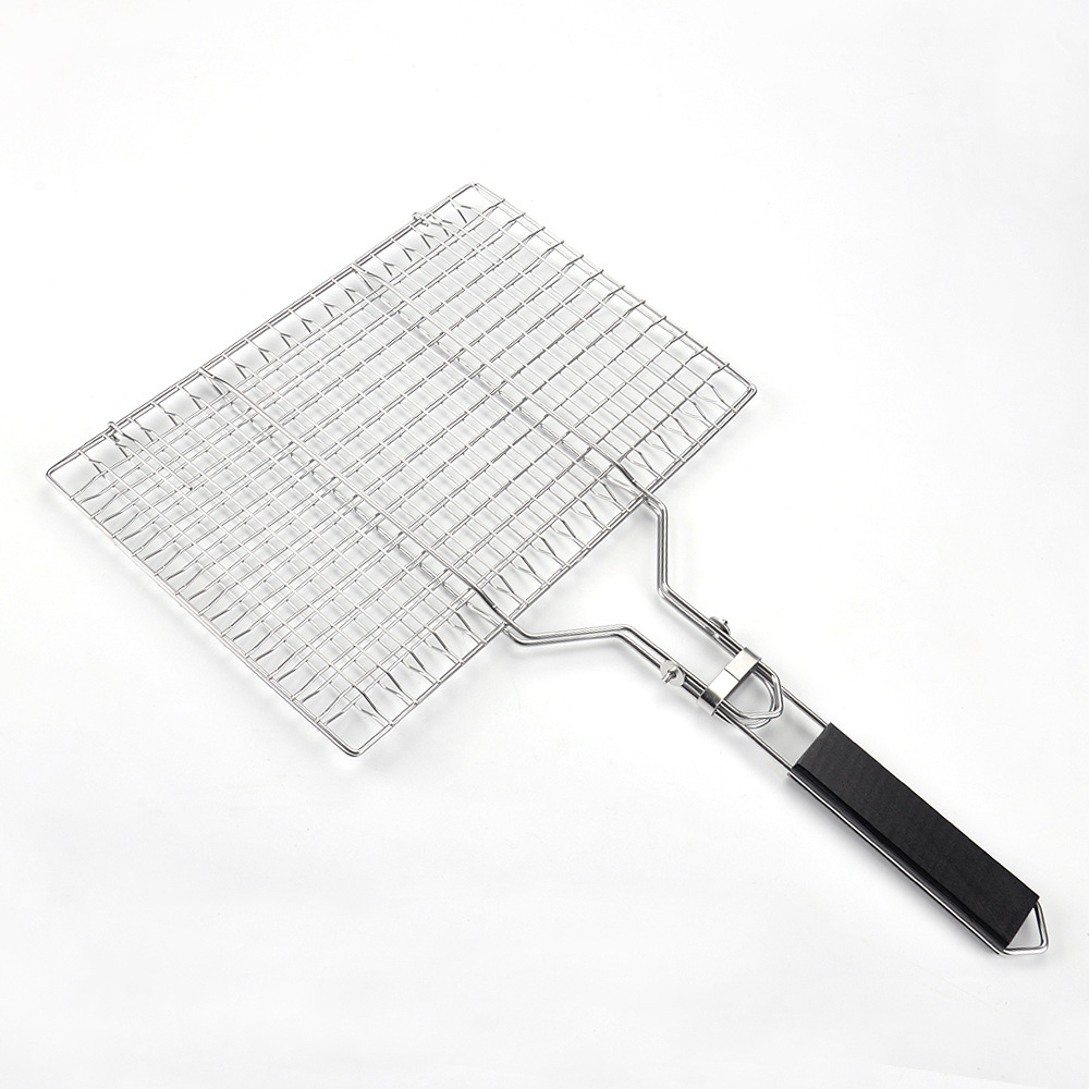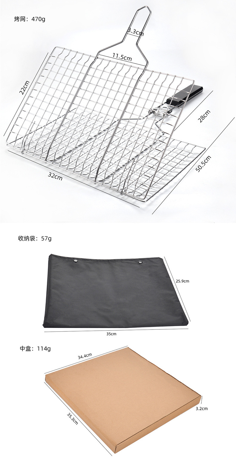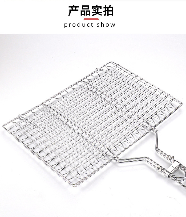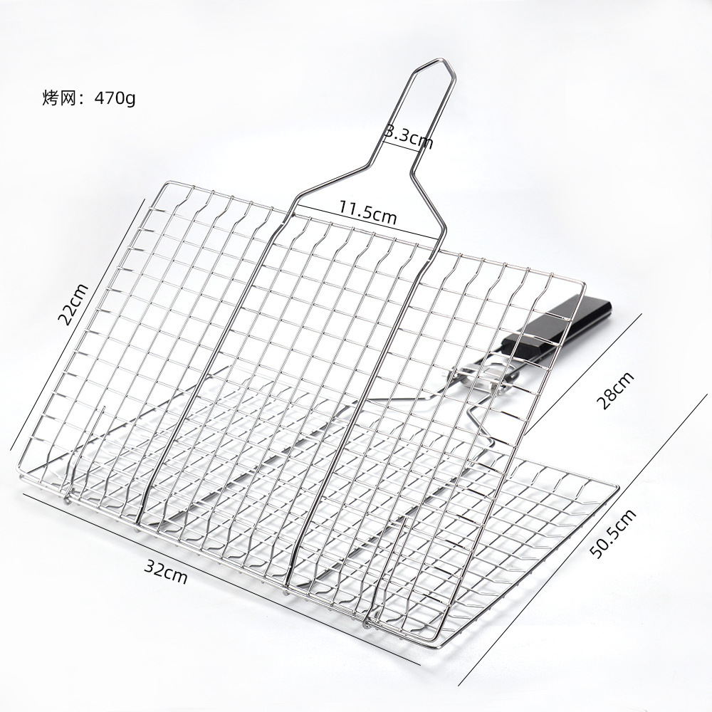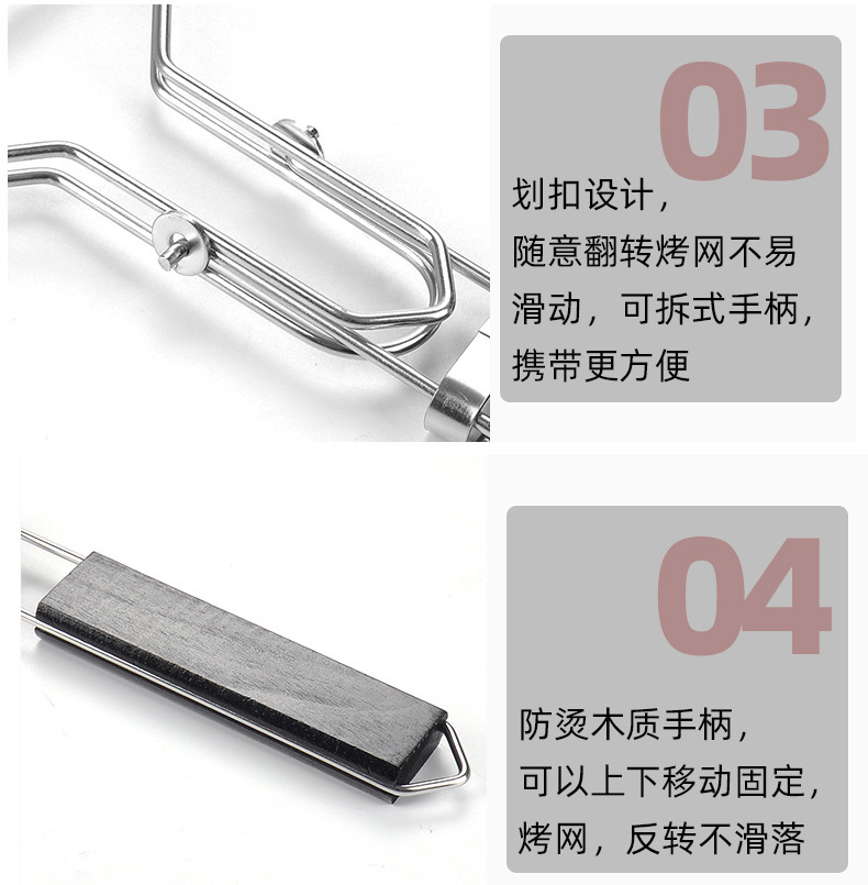户外折叠烧烤网烧烤工具不锈钢木柄食物夹430烤鱼夹可拆卸BBQ烤网
