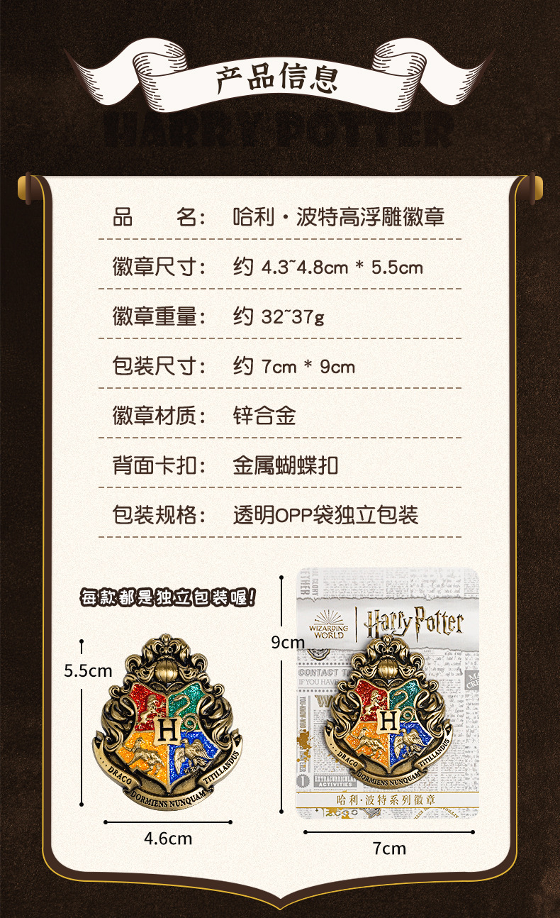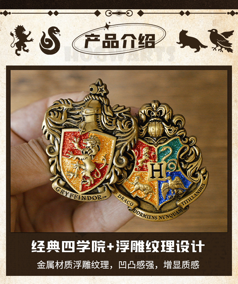 正版哈利波特周边礼品学院徽章霍格沃兹院徽金属胸章复古胸针