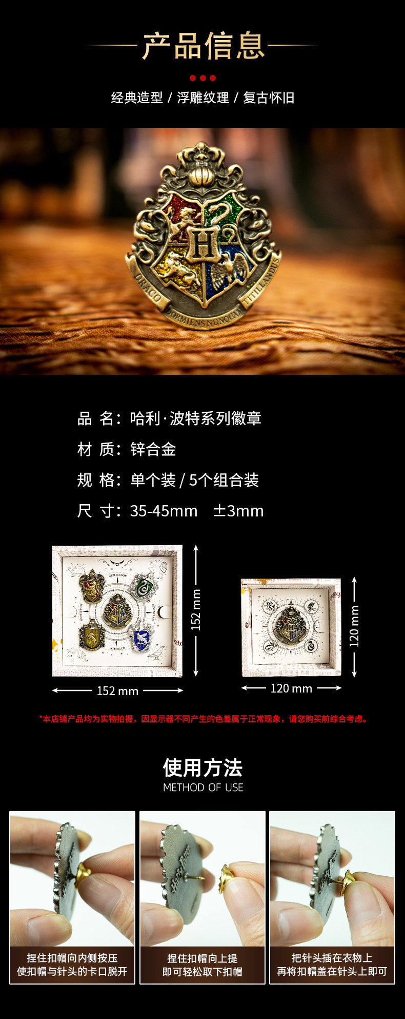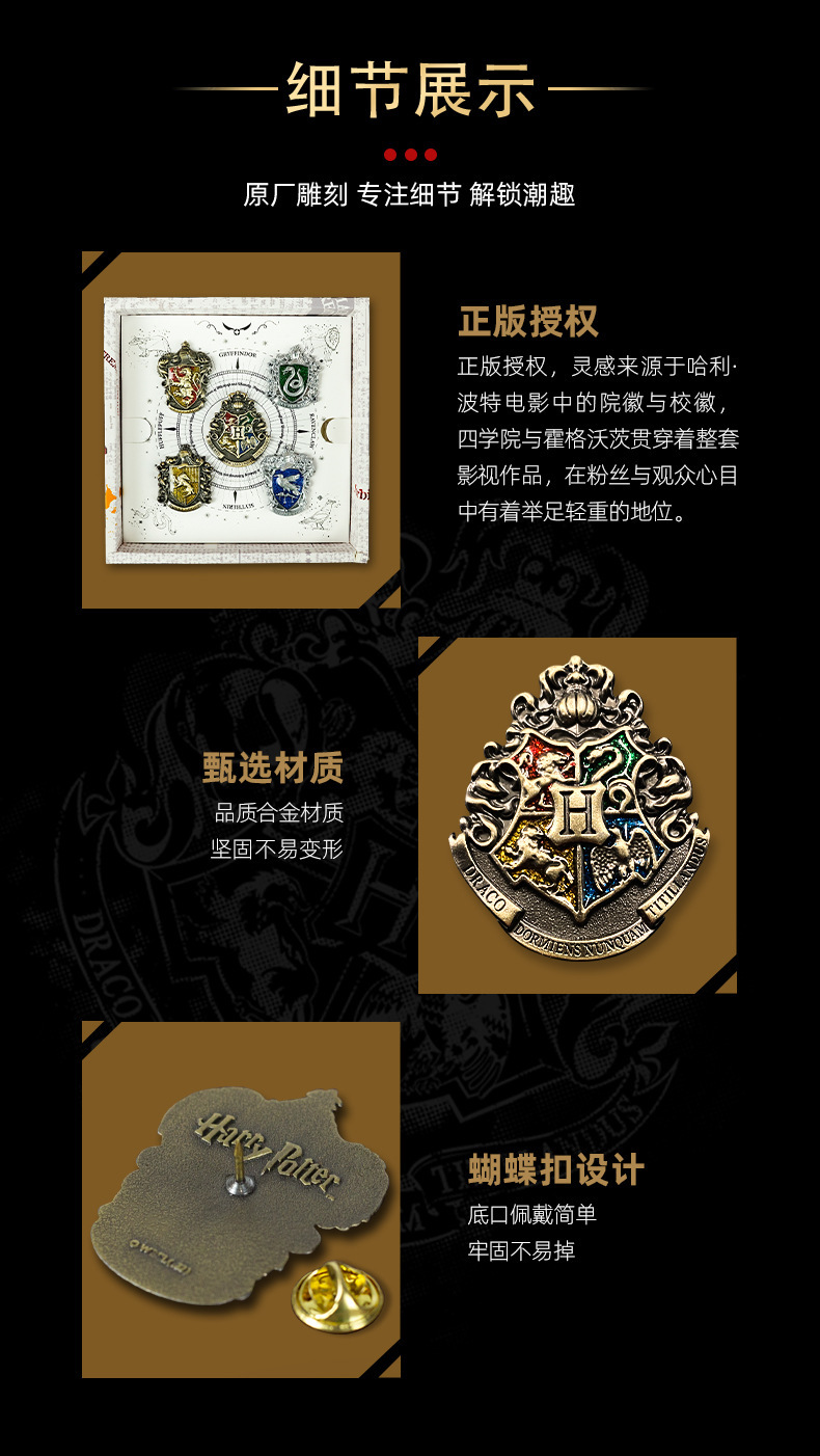 正版哈利波特金属徽章复古胸章胸针四学院周边霍格沃茨礼盒收藏