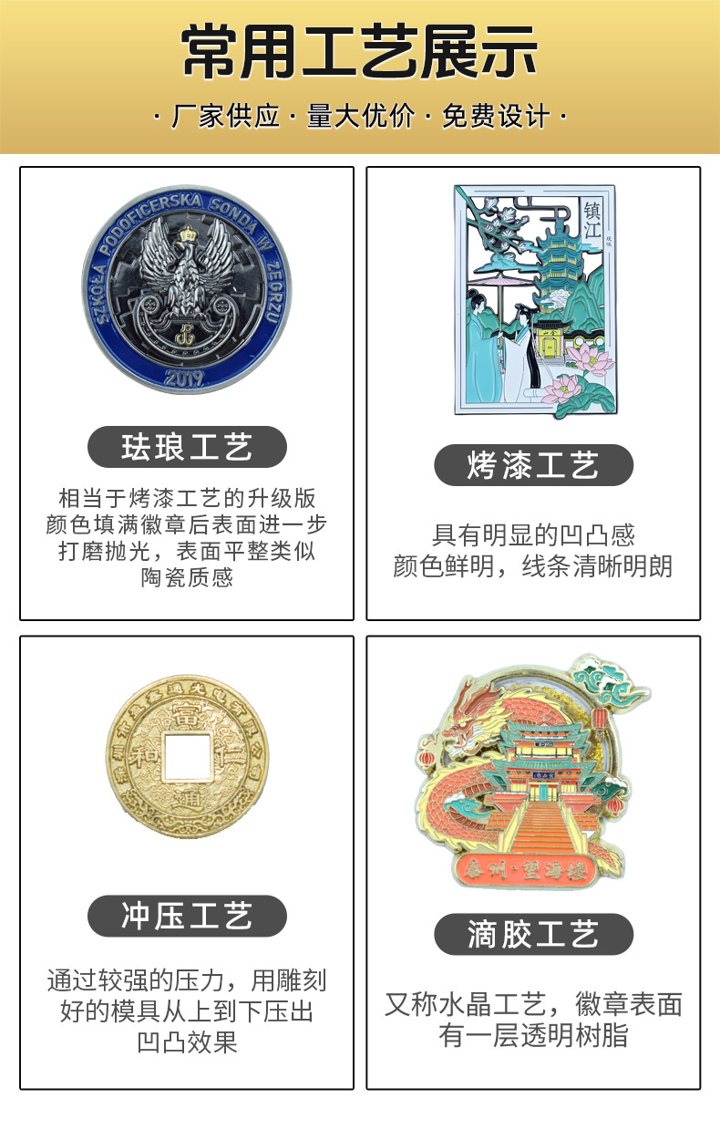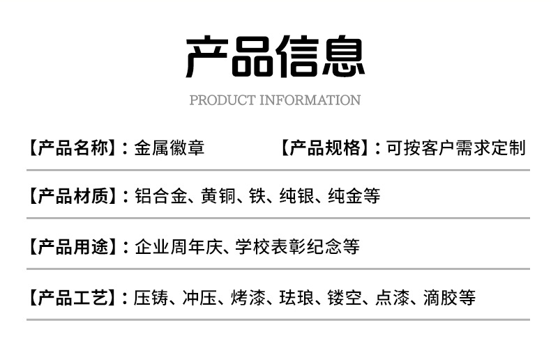 金属徽章定制烤漆珐琅锌合金创意胸章奖章胸章司徽校徽班徽可定做
