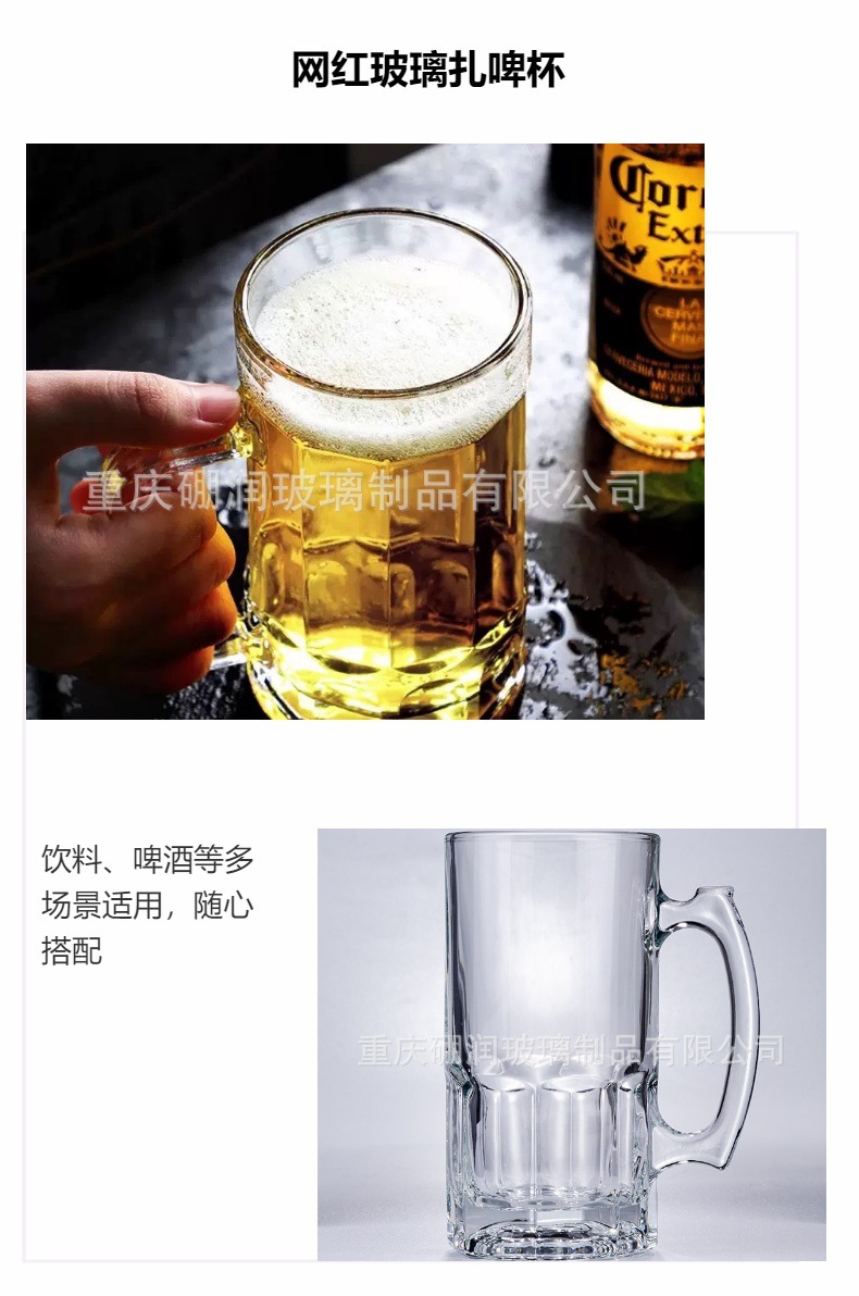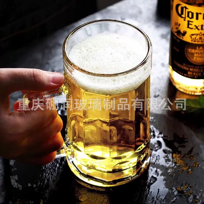 工厂可定制logo英雄杯大扎啤杯网红带把手950ML玻璃扎啤杯