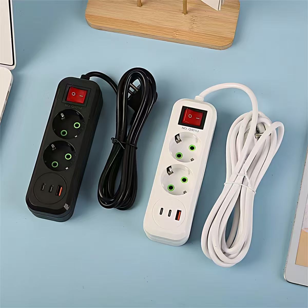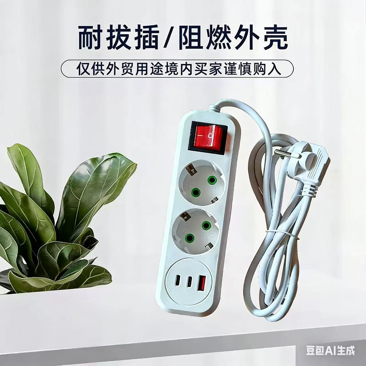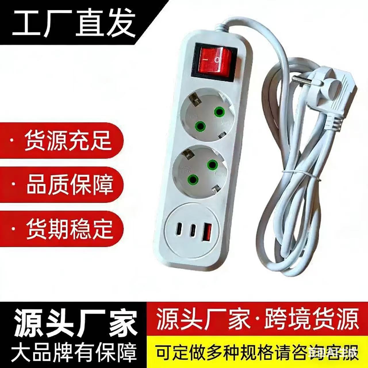 厂家直销供应外贸欧规带线USB排插插座批发插线板