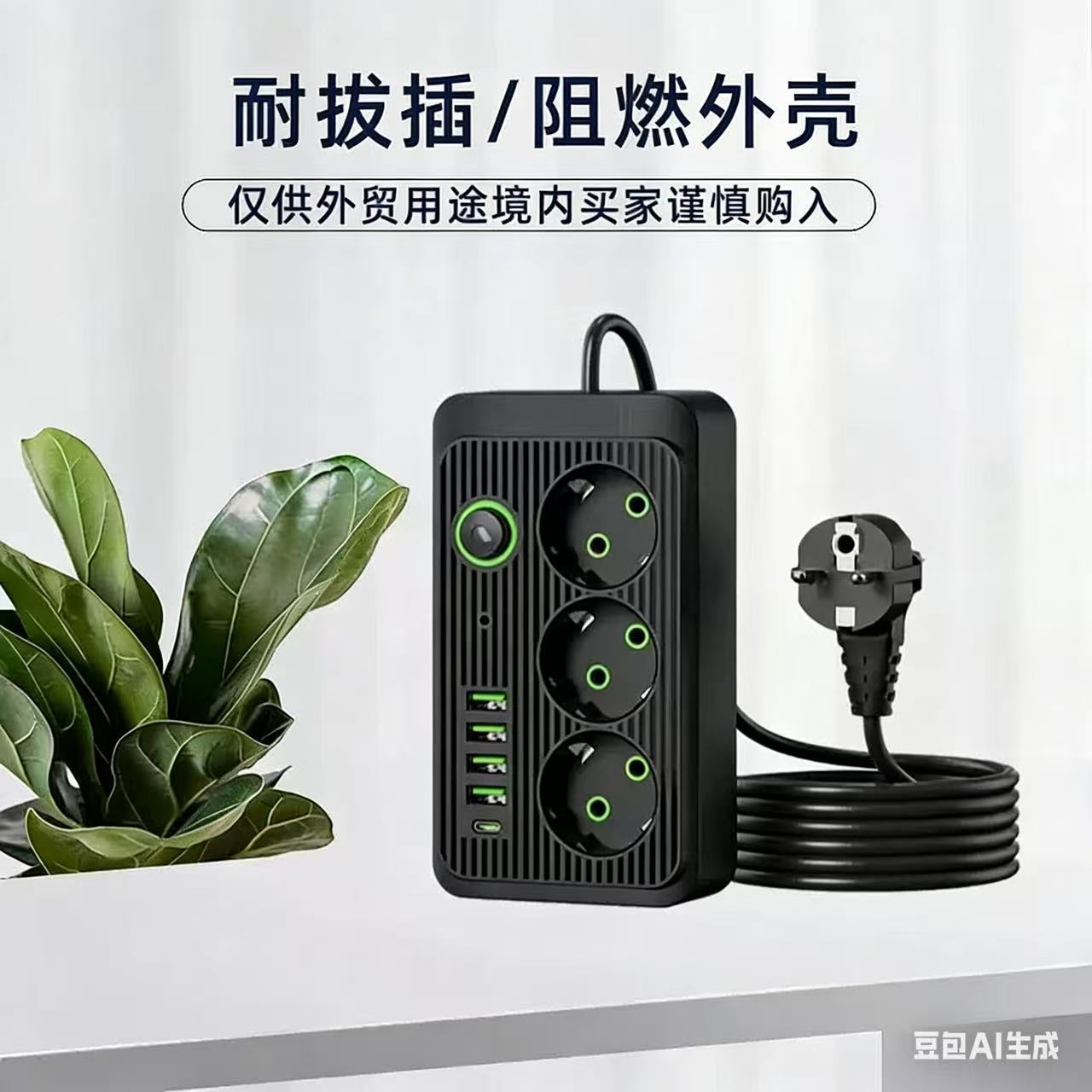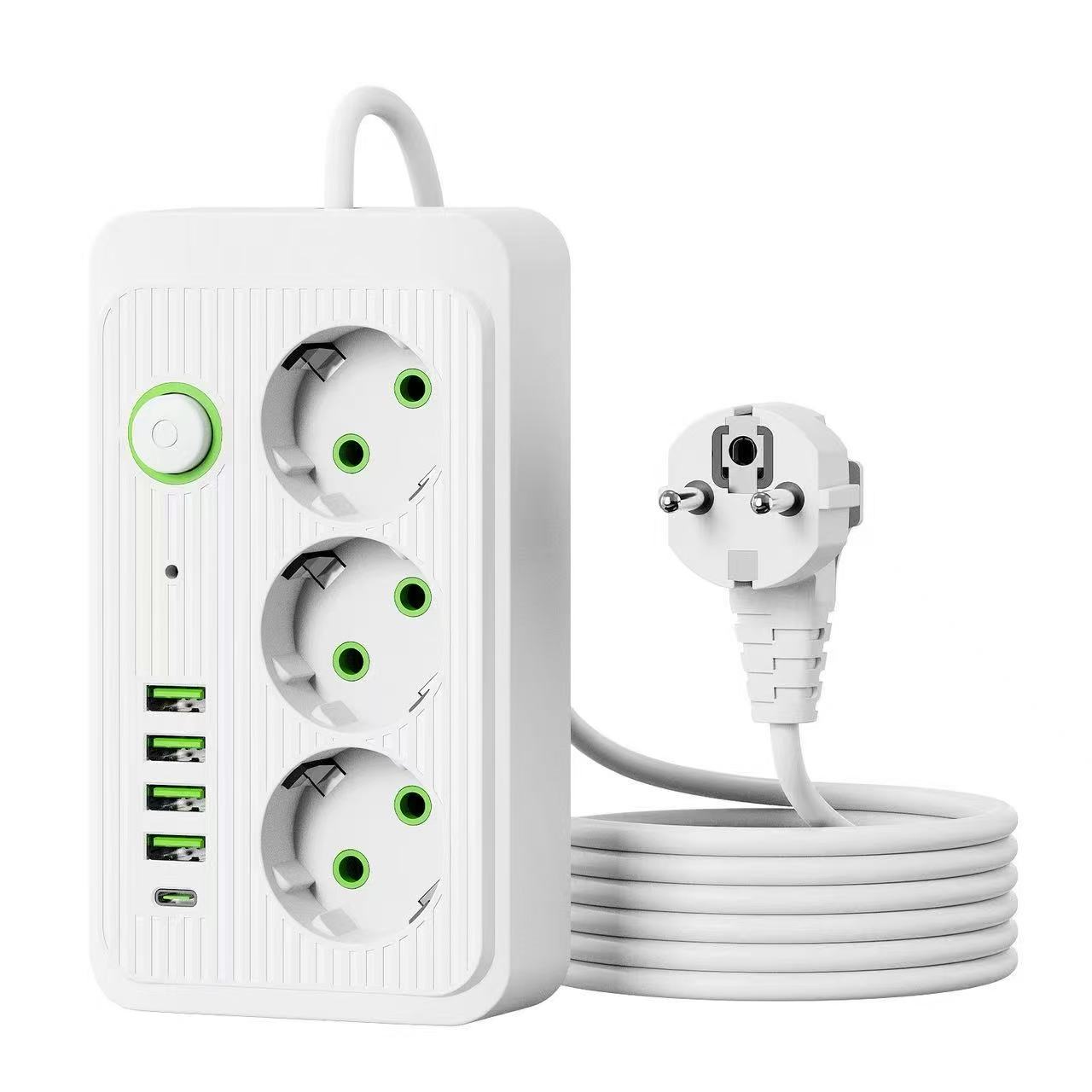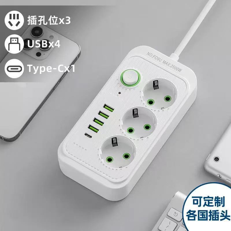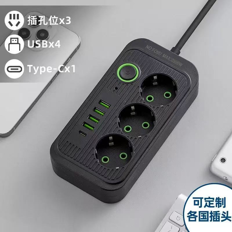 供应外贸排插批发USB欧规带线插排插座插线板