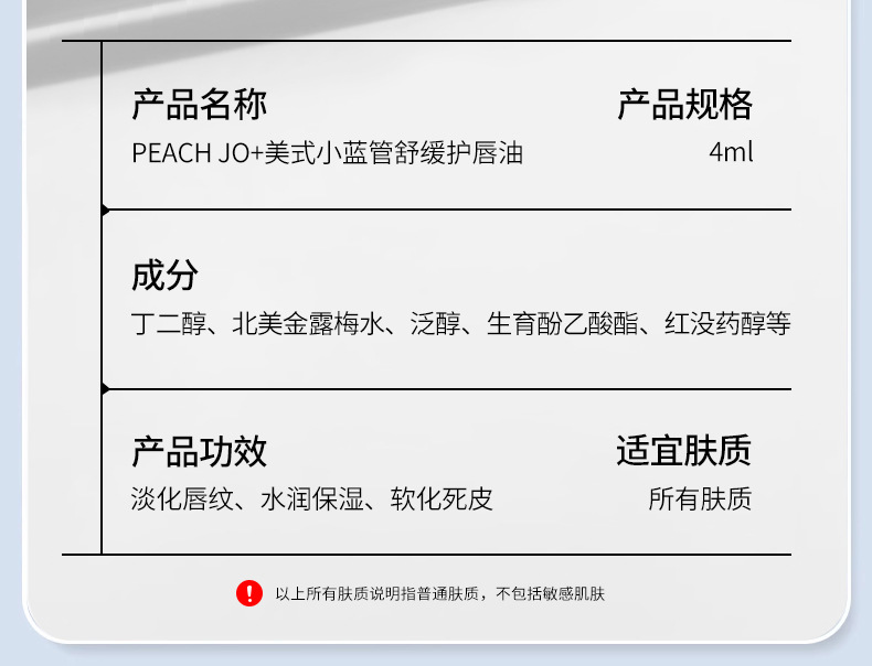 PEACH JO+美妆个护小蓝管唇部美容液唇油保湿滋润补水男女去死皮