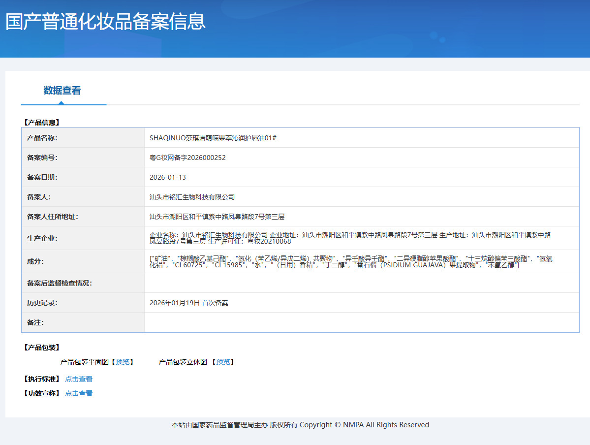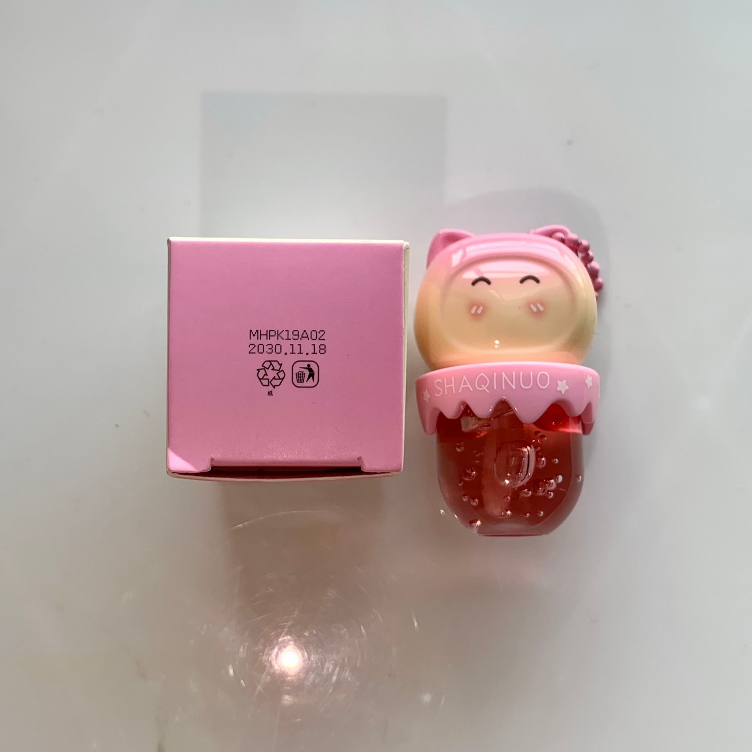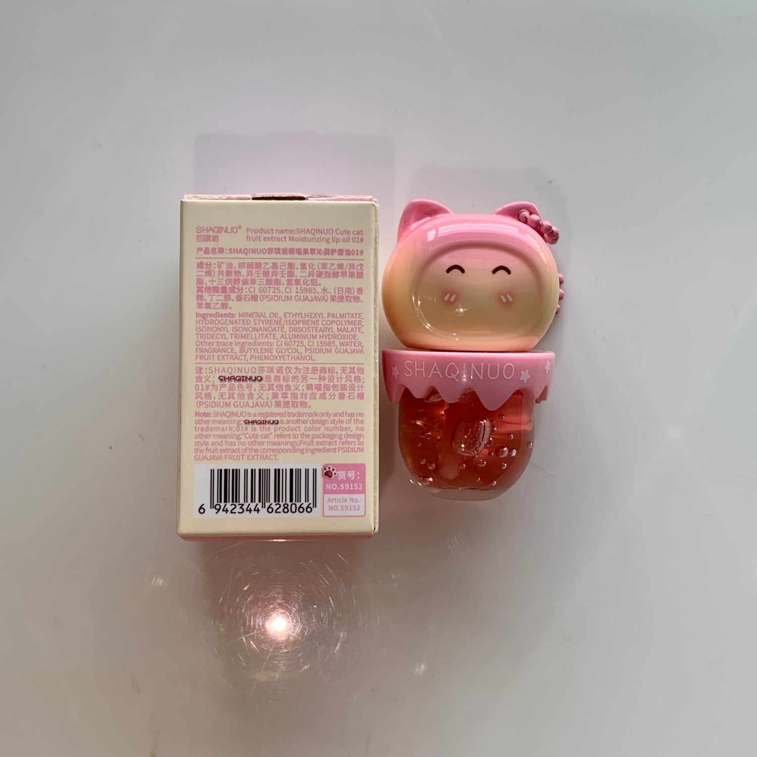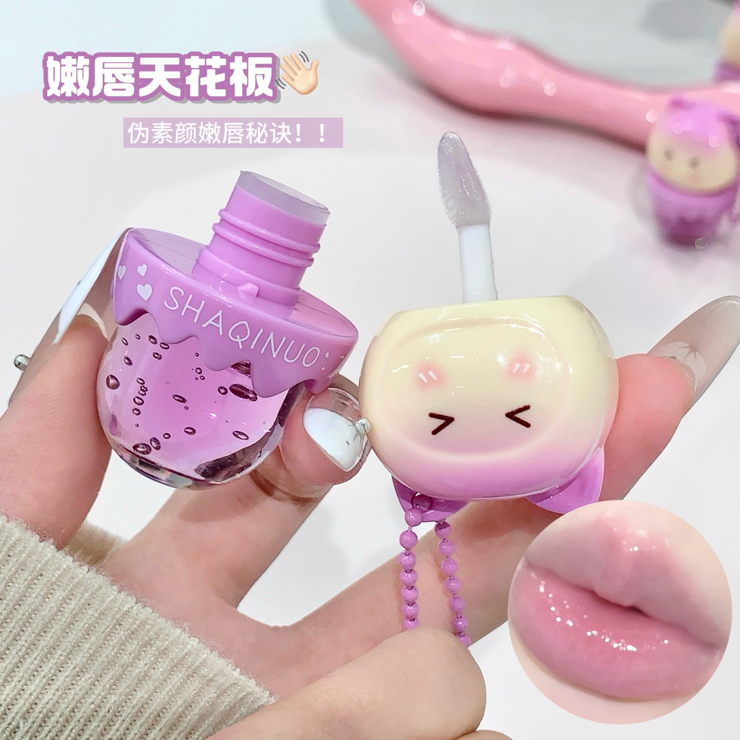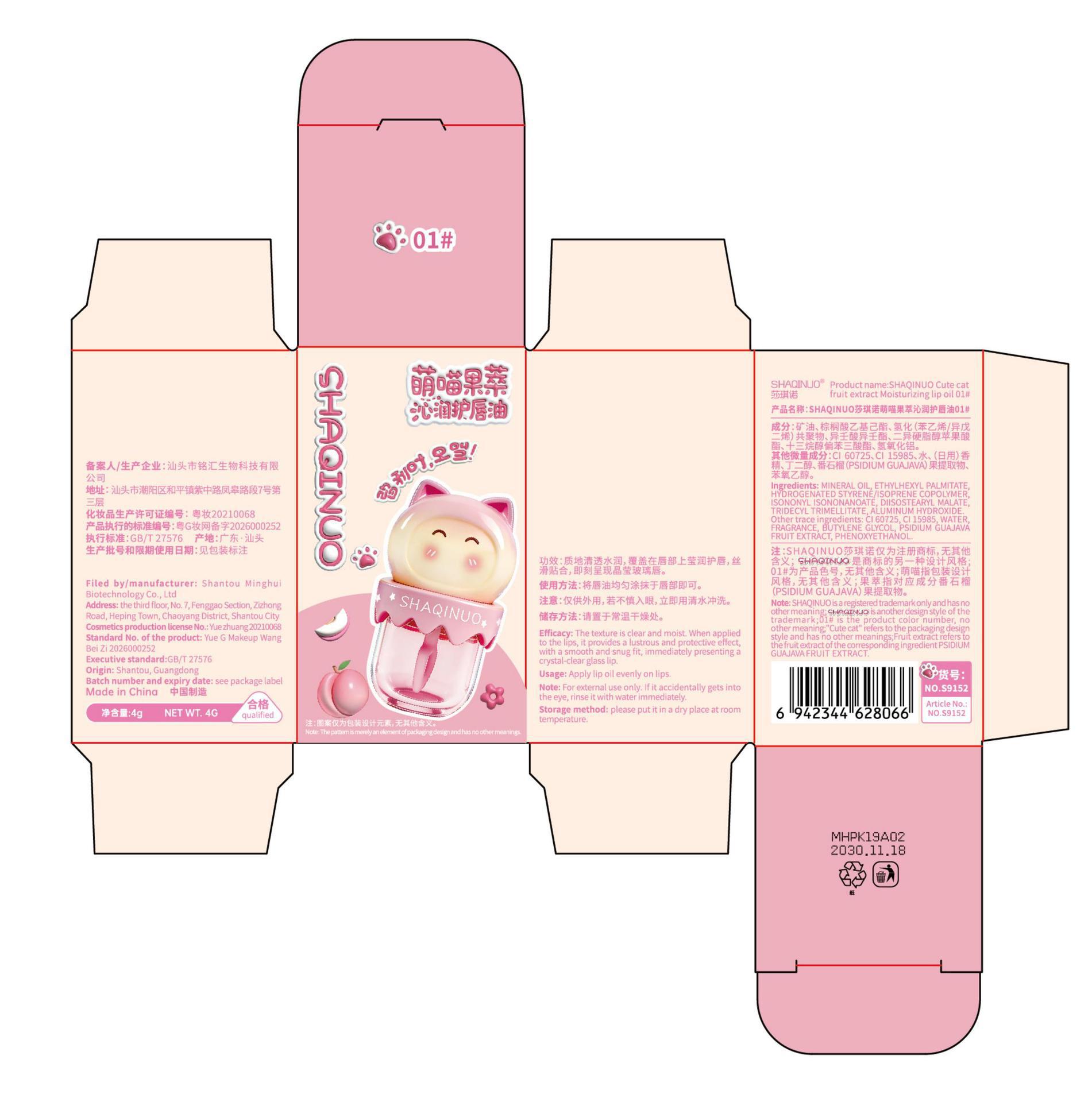 跨境美妆SHAQINUO 4色可爱卡通唇油萌喵果萃护补水保湿滋润嘟唇膜