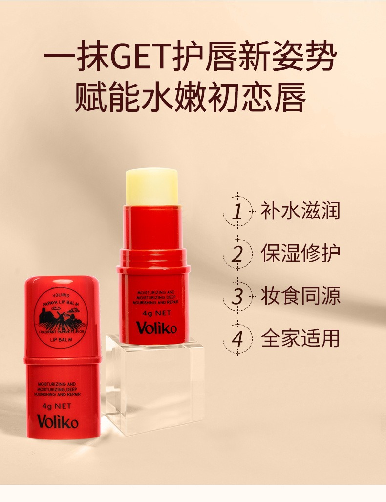 VOLIKO木瓜膏润唇膏专用深层保湿滋润补水干裂去死皮淡化唇纹护女