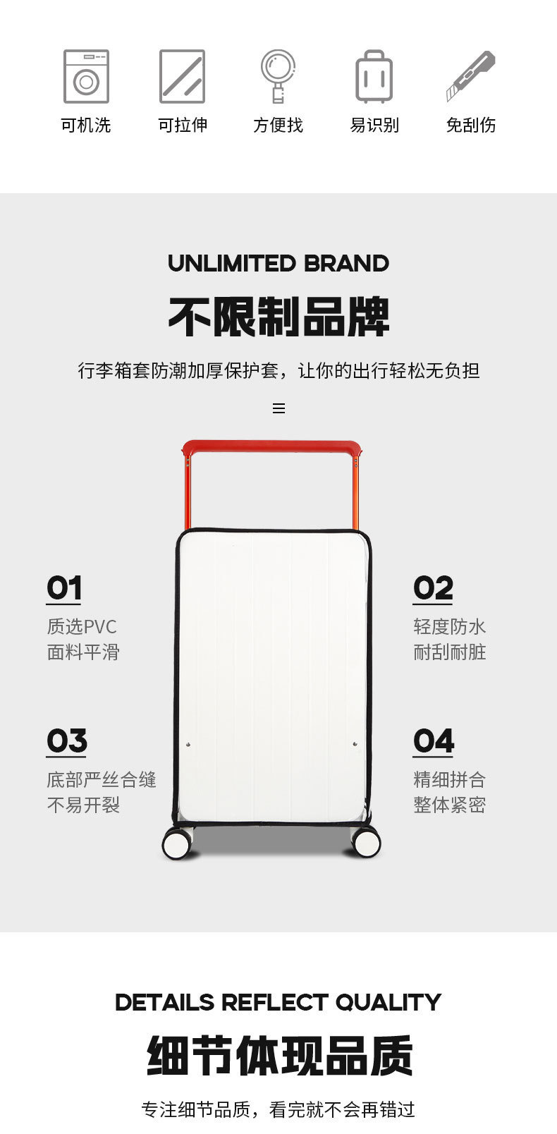 适用DTA宽拉杆行李箱保护套旅行套防尘罩20/24寸耐磨途加透明箱套