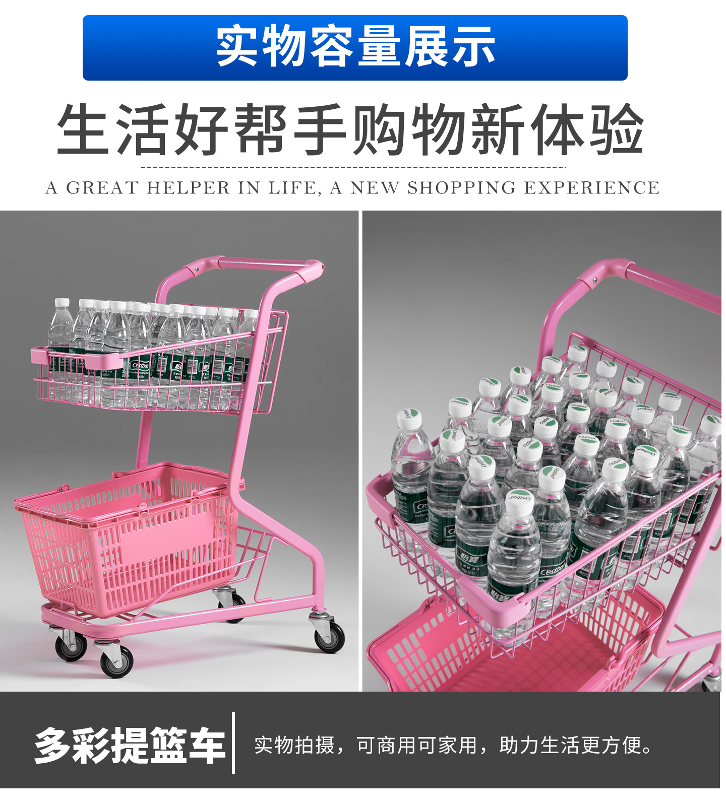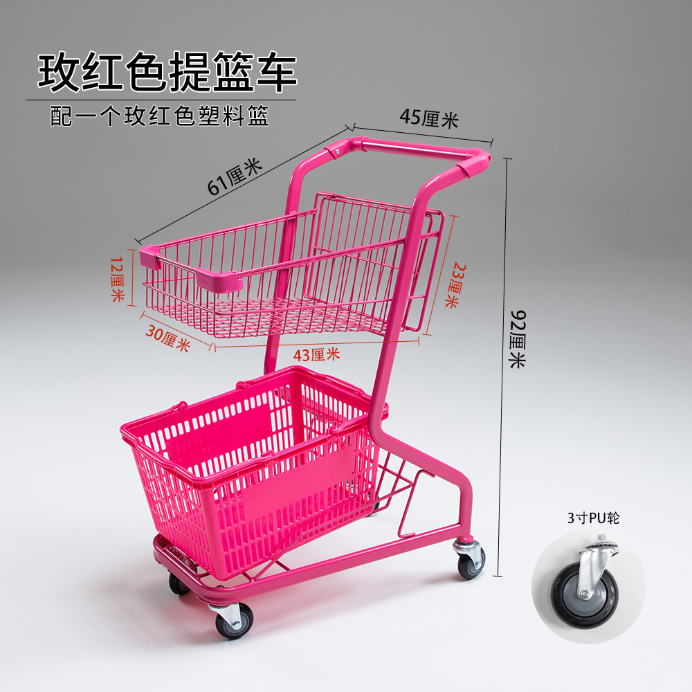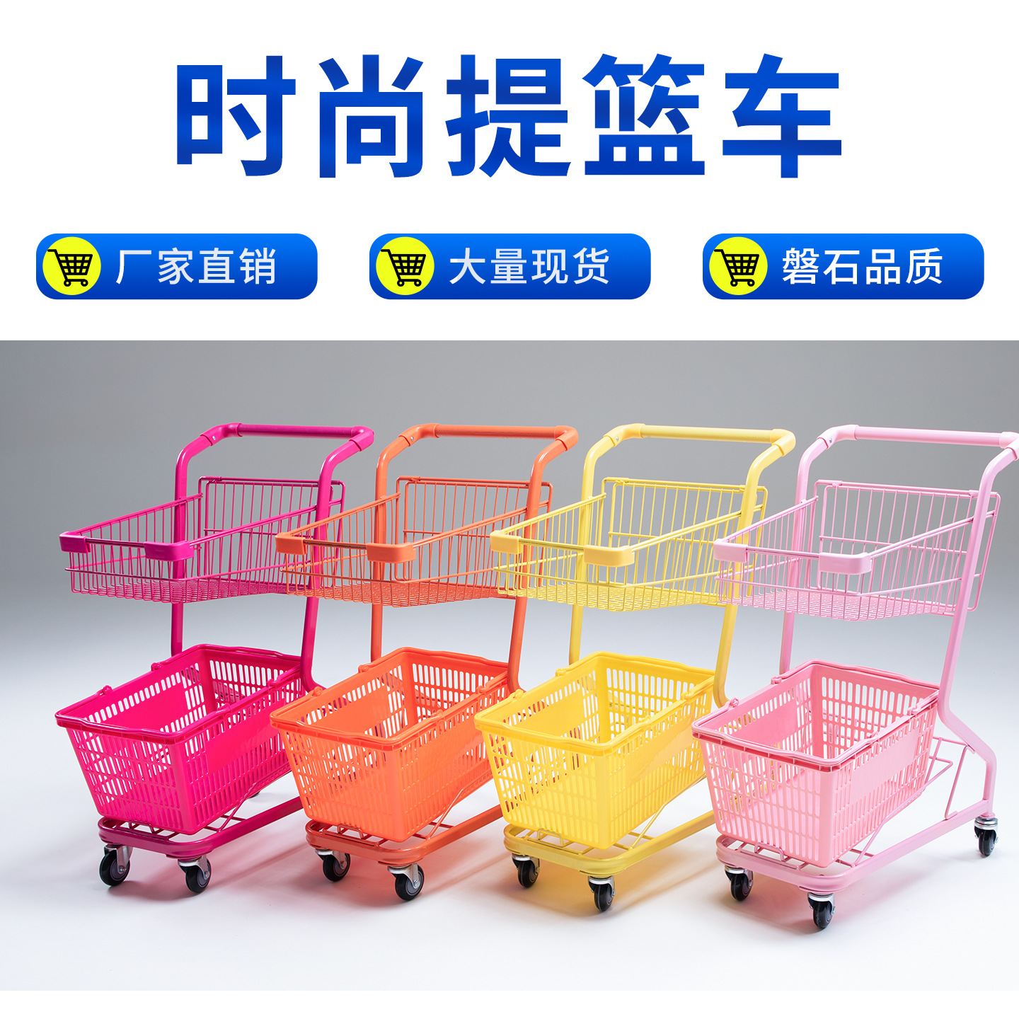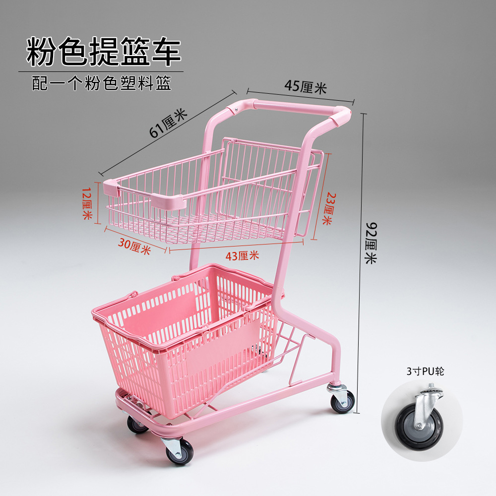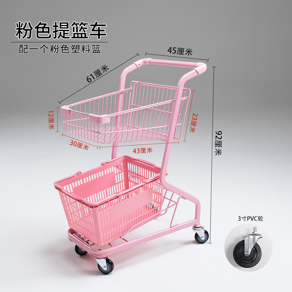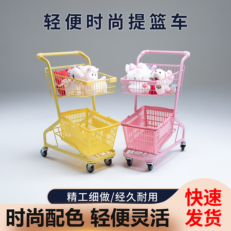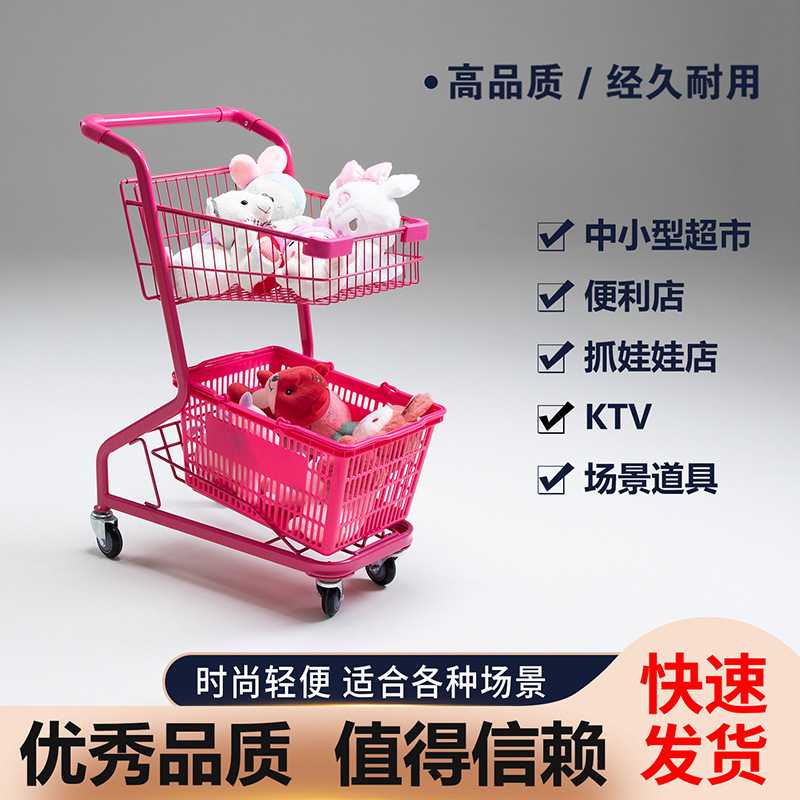 彩色双层超市购物车网红带篮便利店抓娃娃手推车摄影场景装饰推车