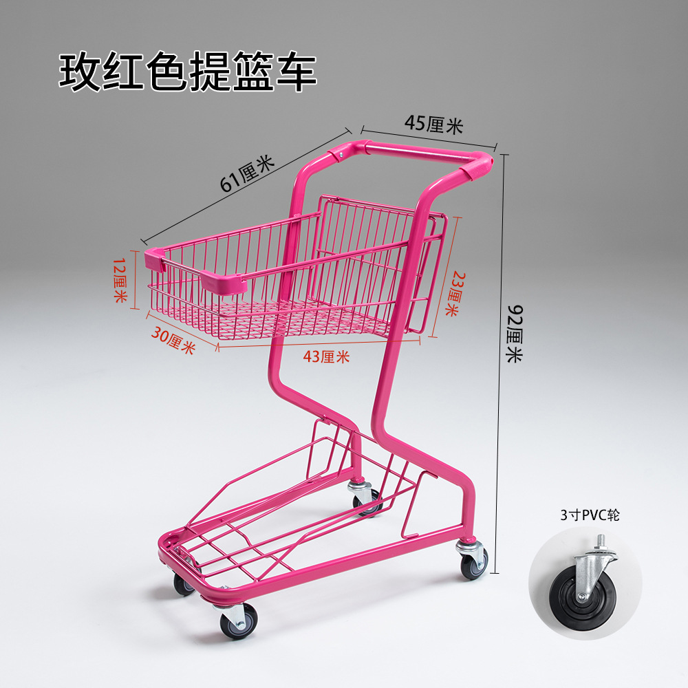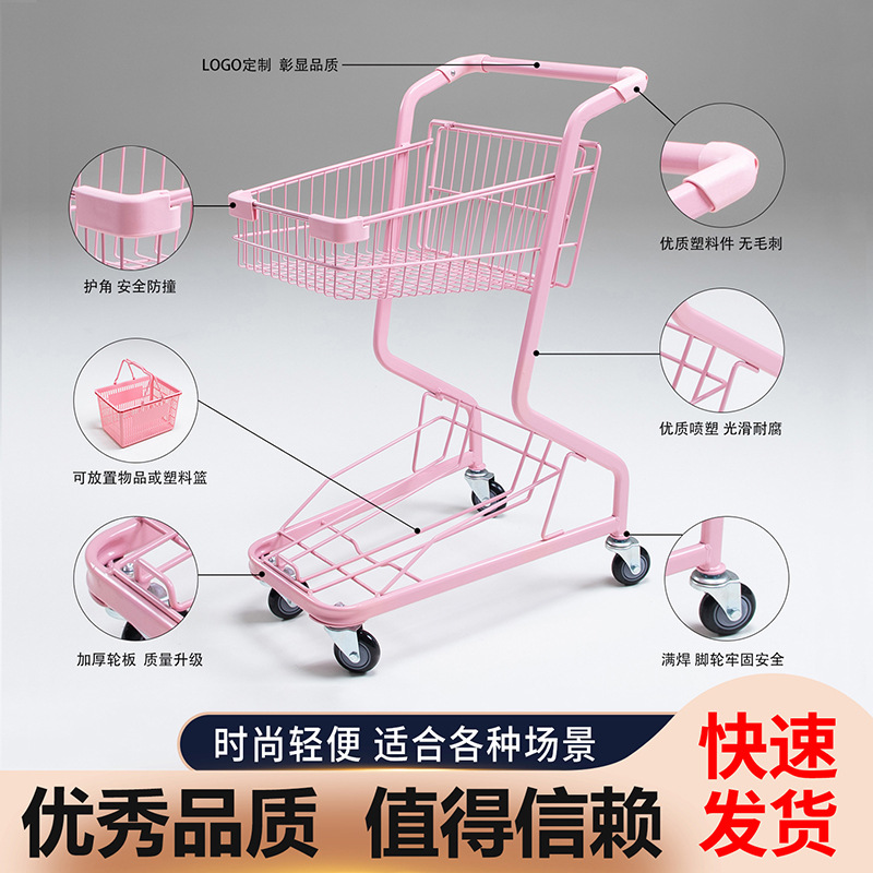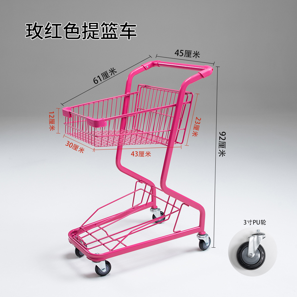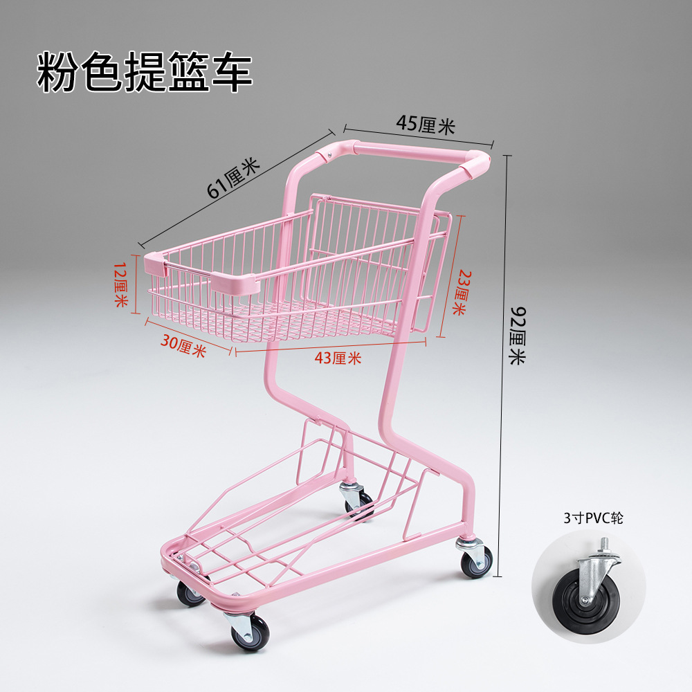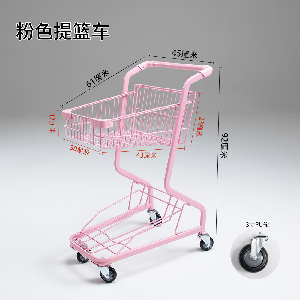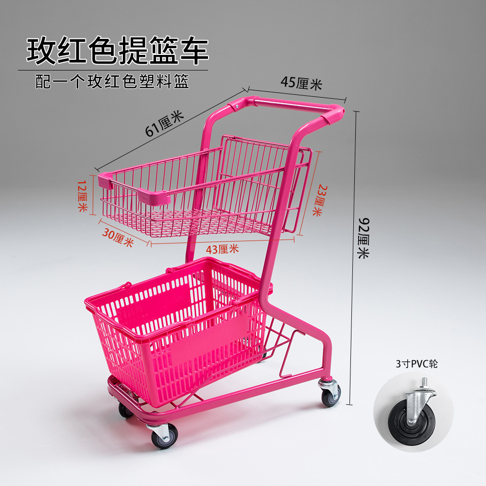 彩色双层超市购物车网红带篮便利店抓娃娃手推车摄影场景装饰推车