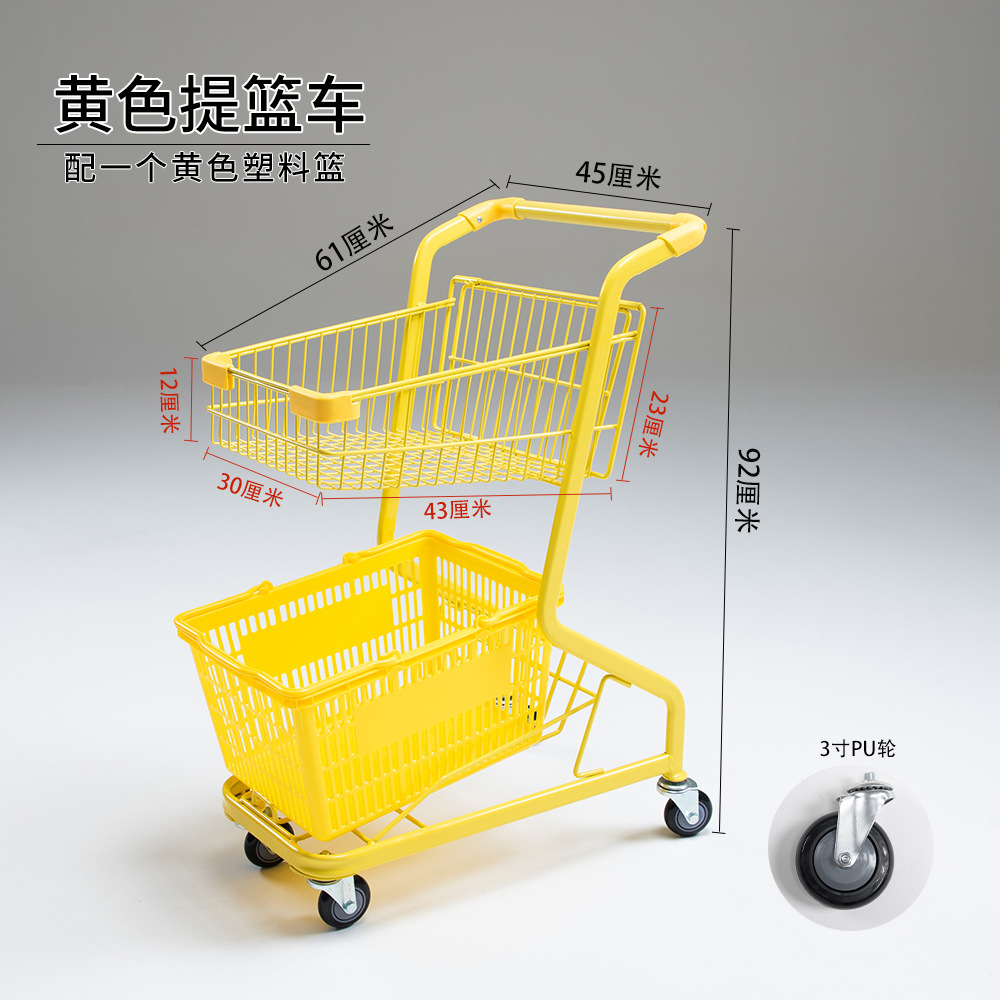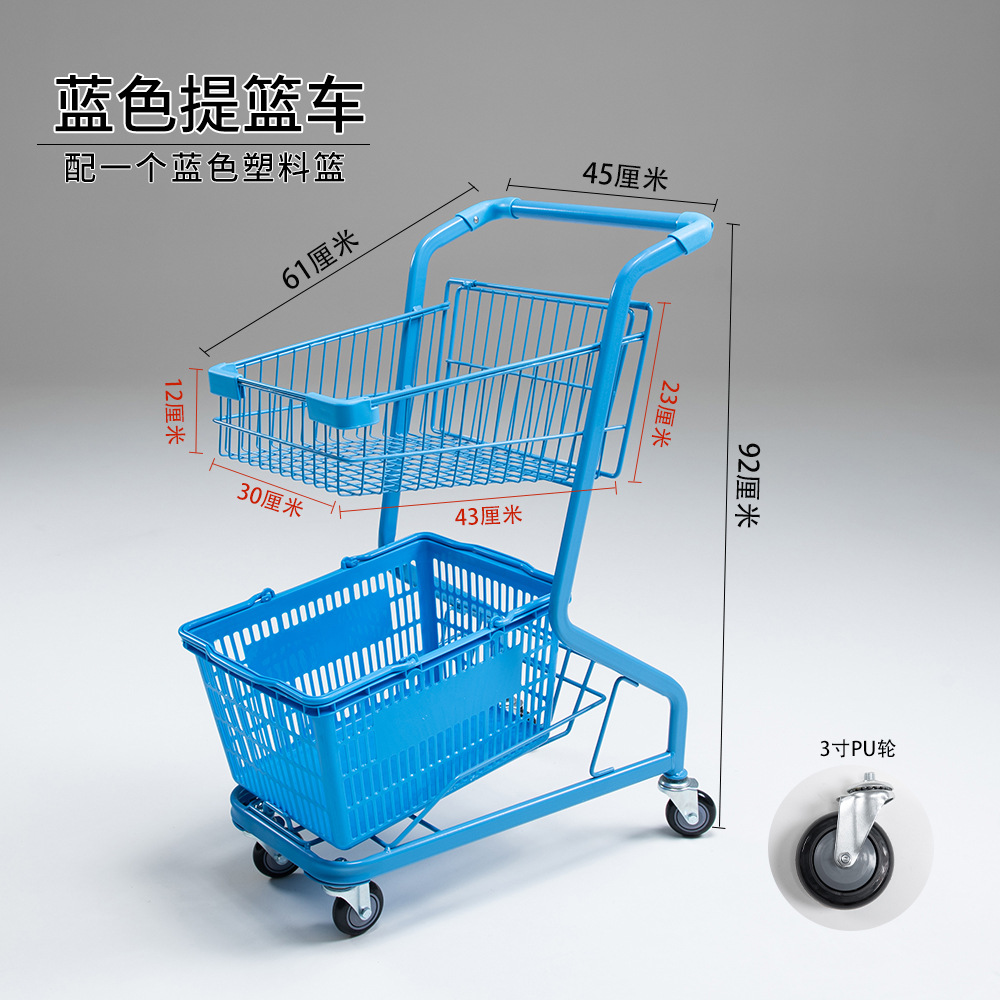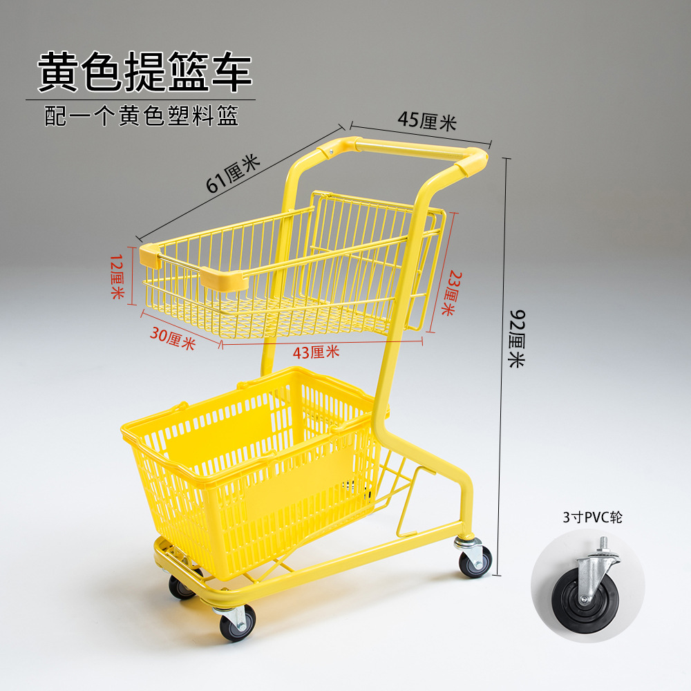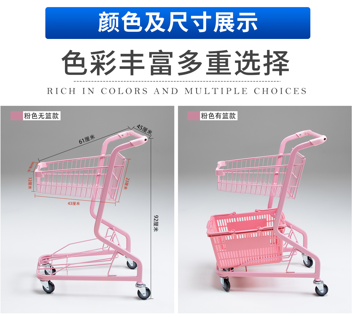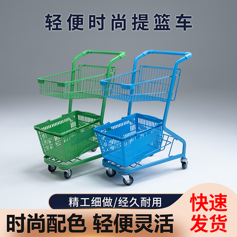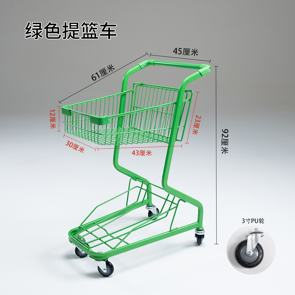 彩色双层超市购物车网红带篮便利店抓娃娃手推车摄影场景装饰推车