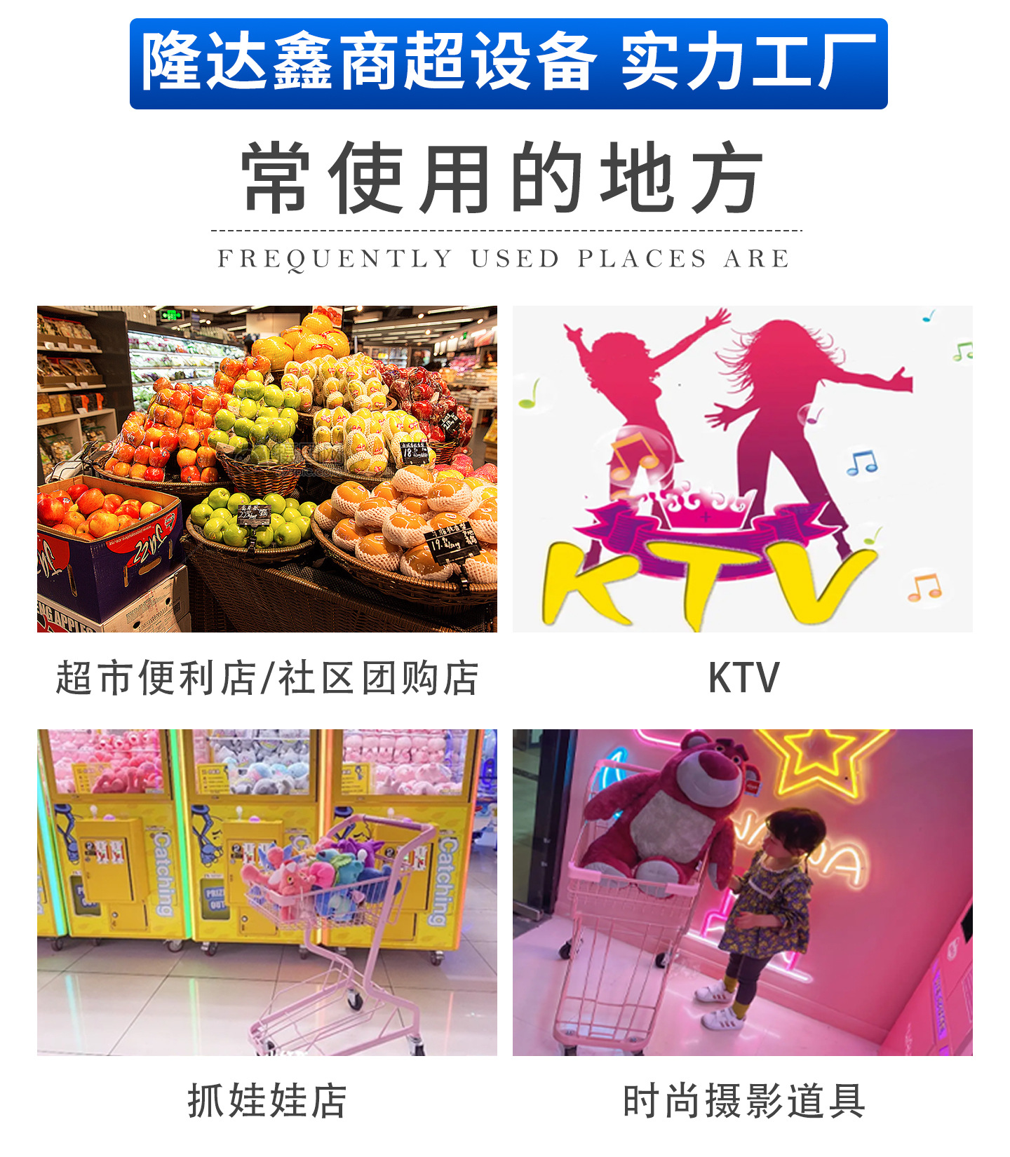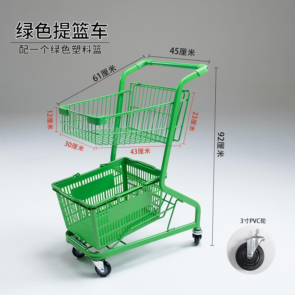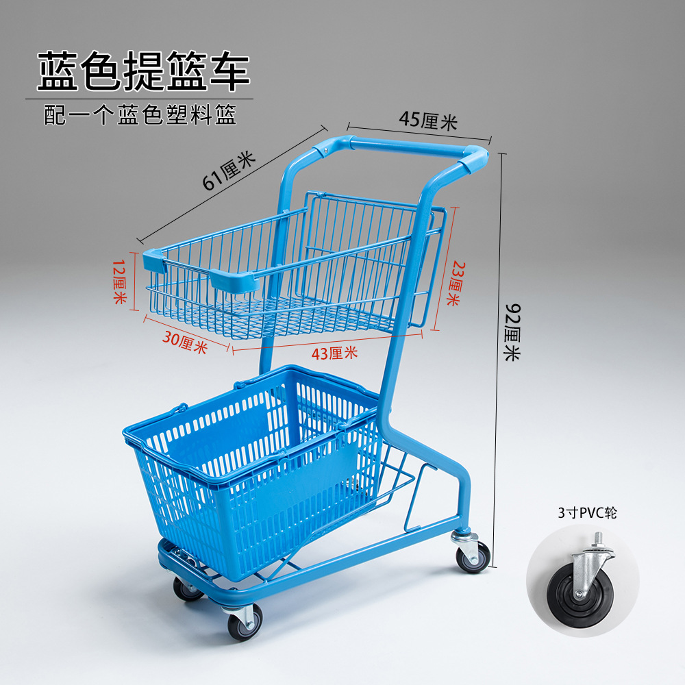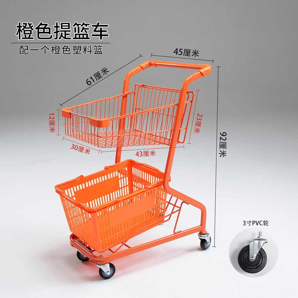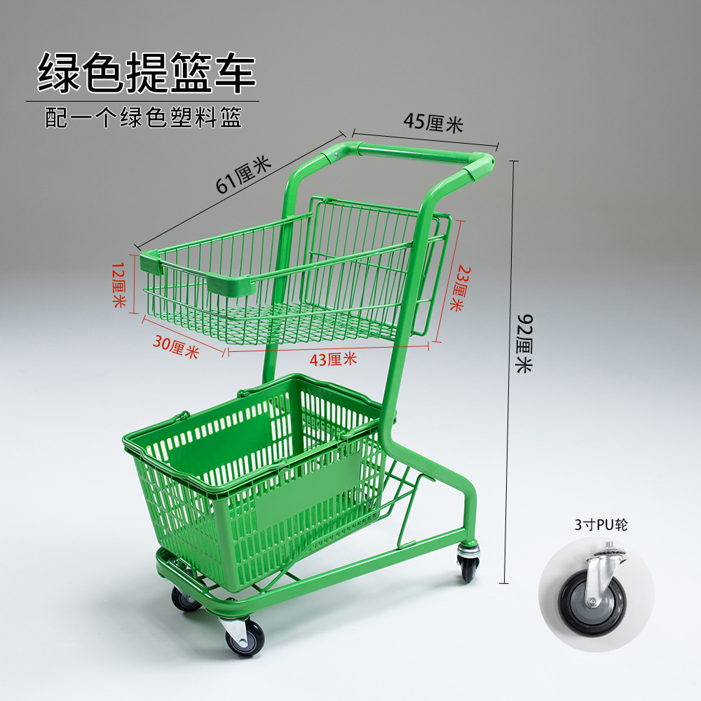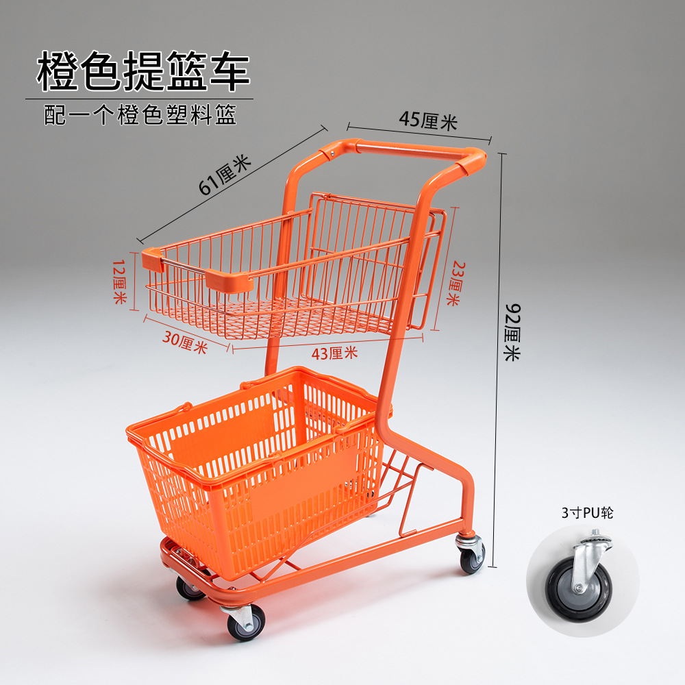 彩色双层超市购物车网红带篮便利店抓娃娃手推车摄影场景装饰推车