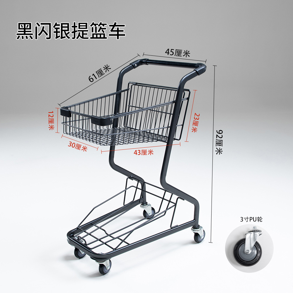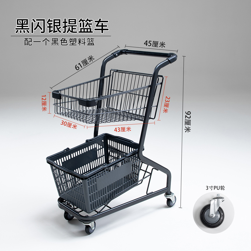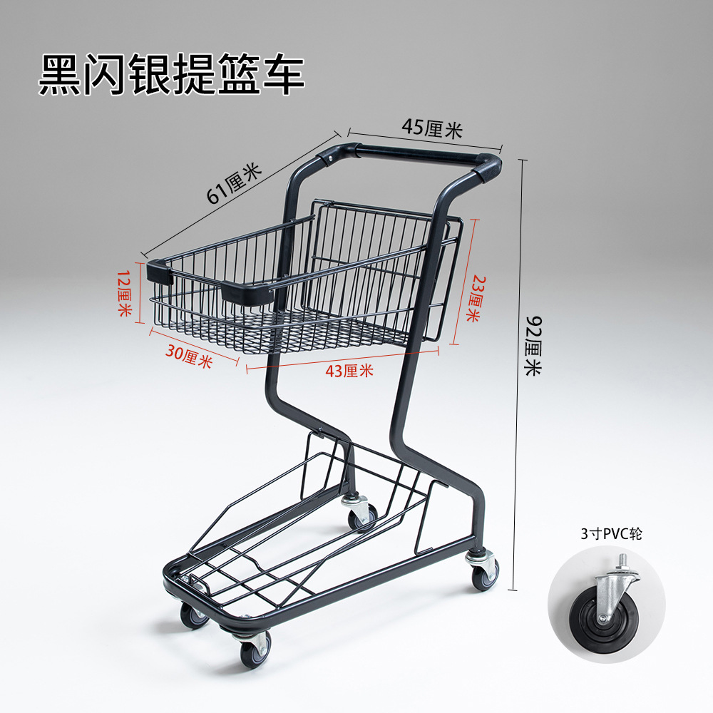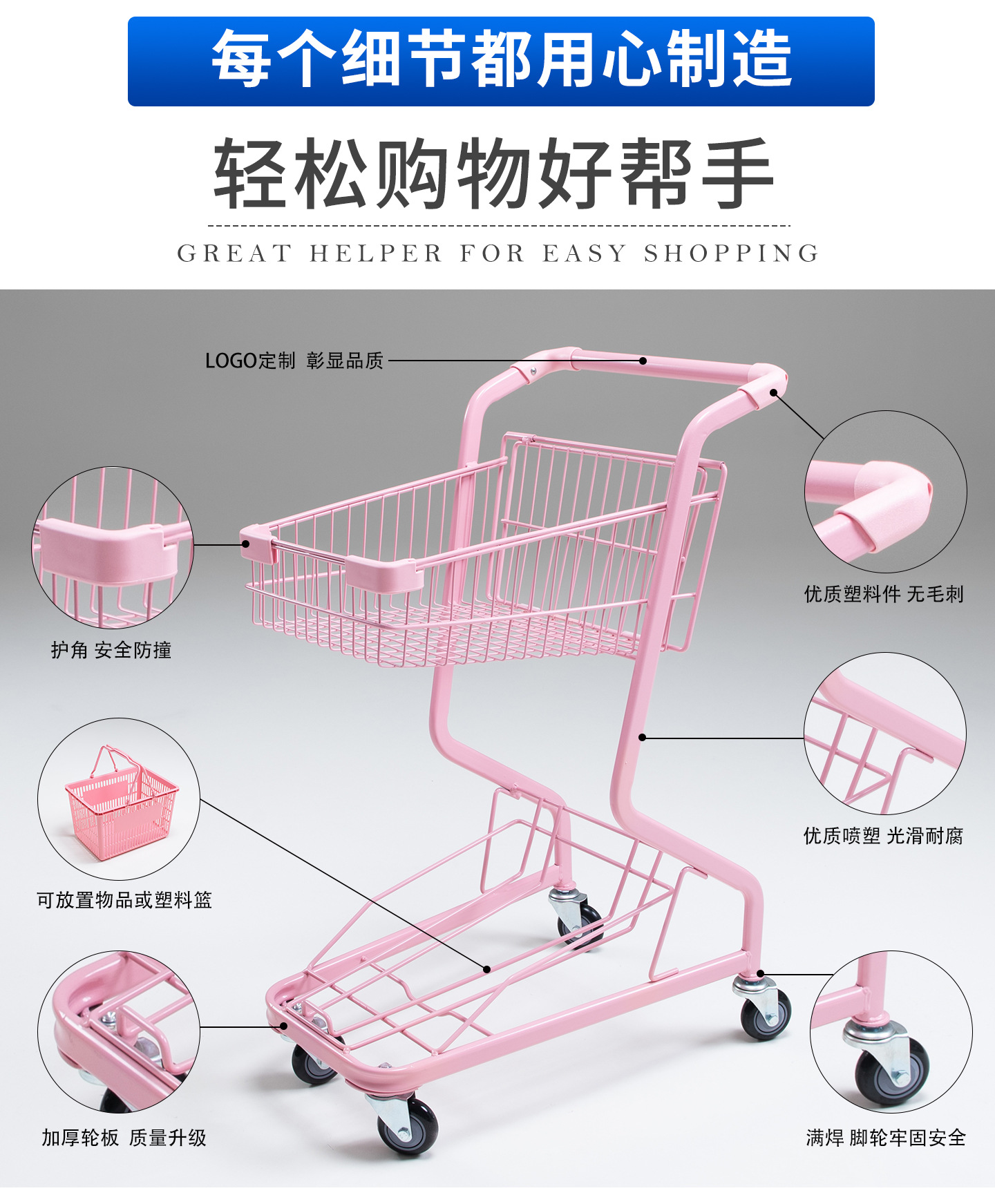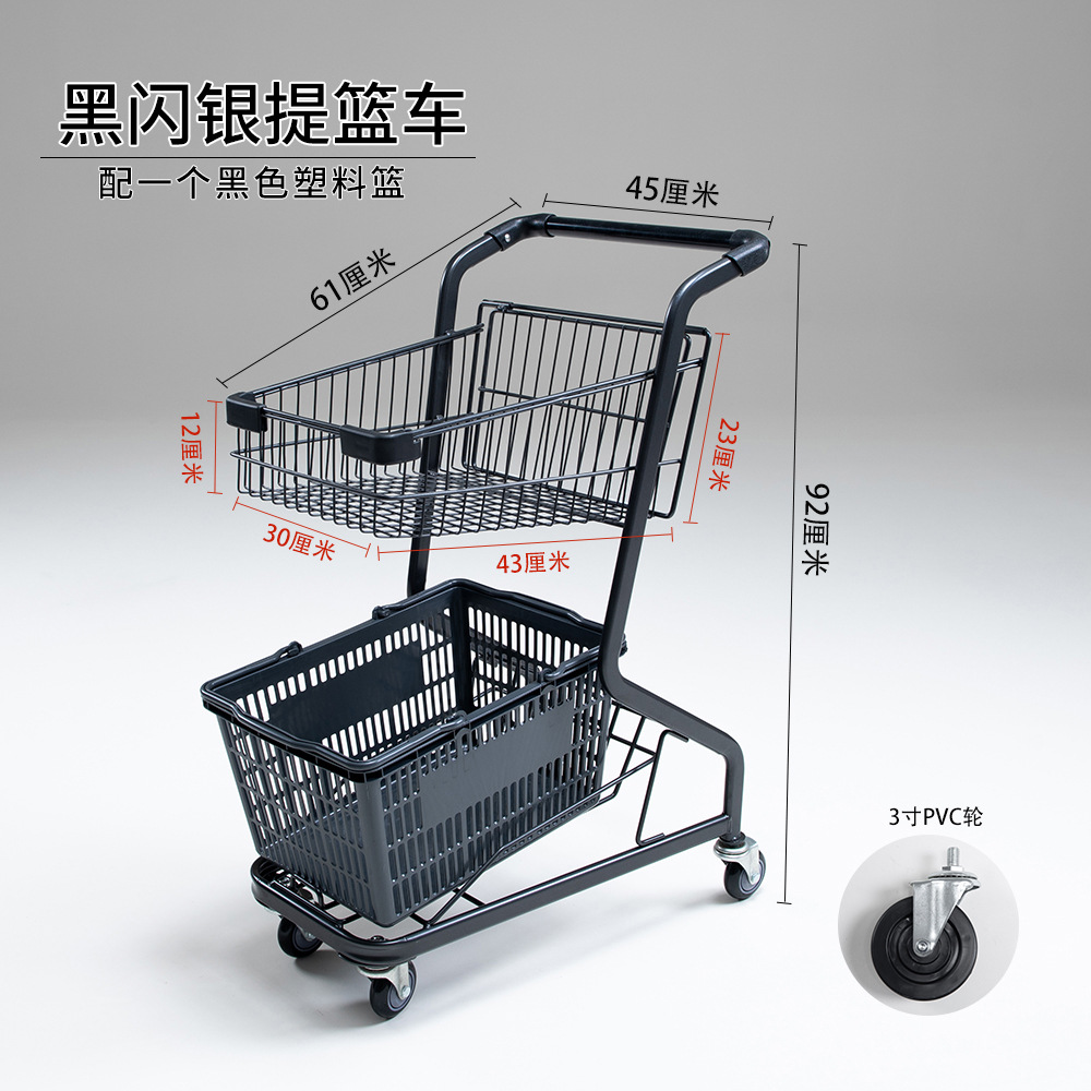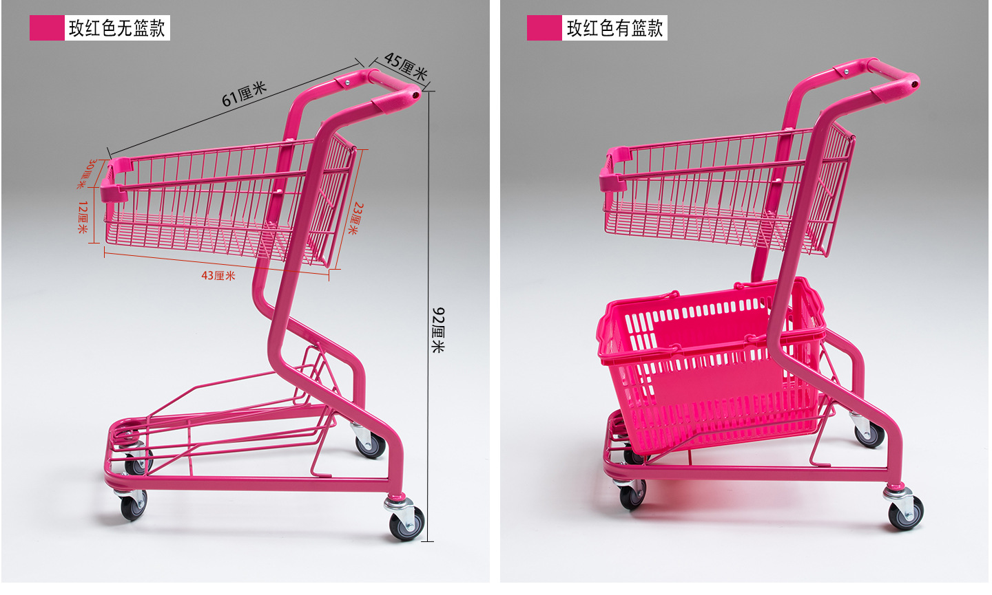 彩色双层超市购物车网红带篮便利店抓娃娃手推车摄影场景装饰推车