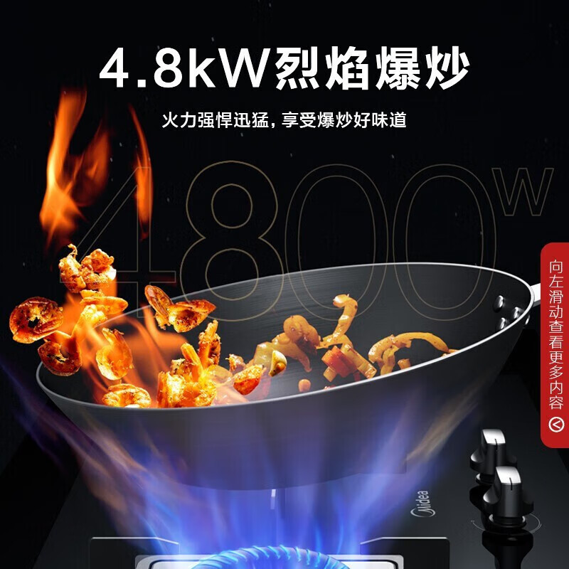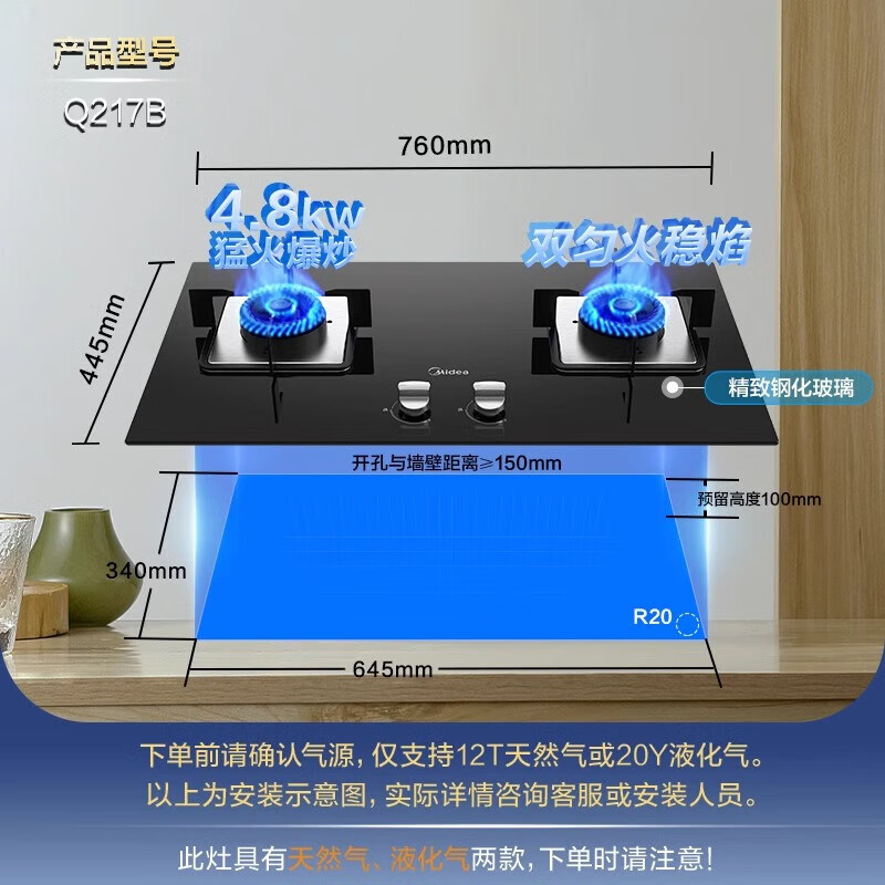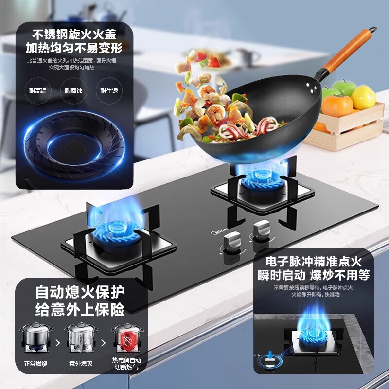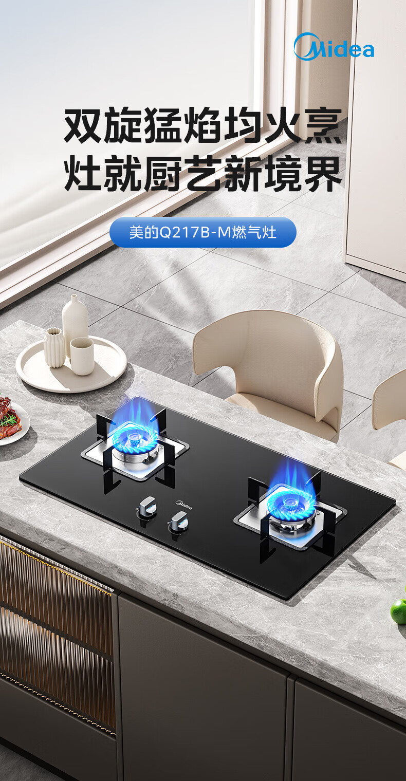 美的燃气灶家用天燃气双眼灶4.8KW大火力天然气台嵌两用式猛火灶