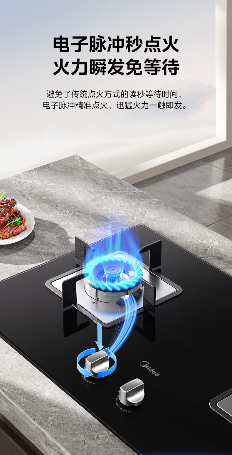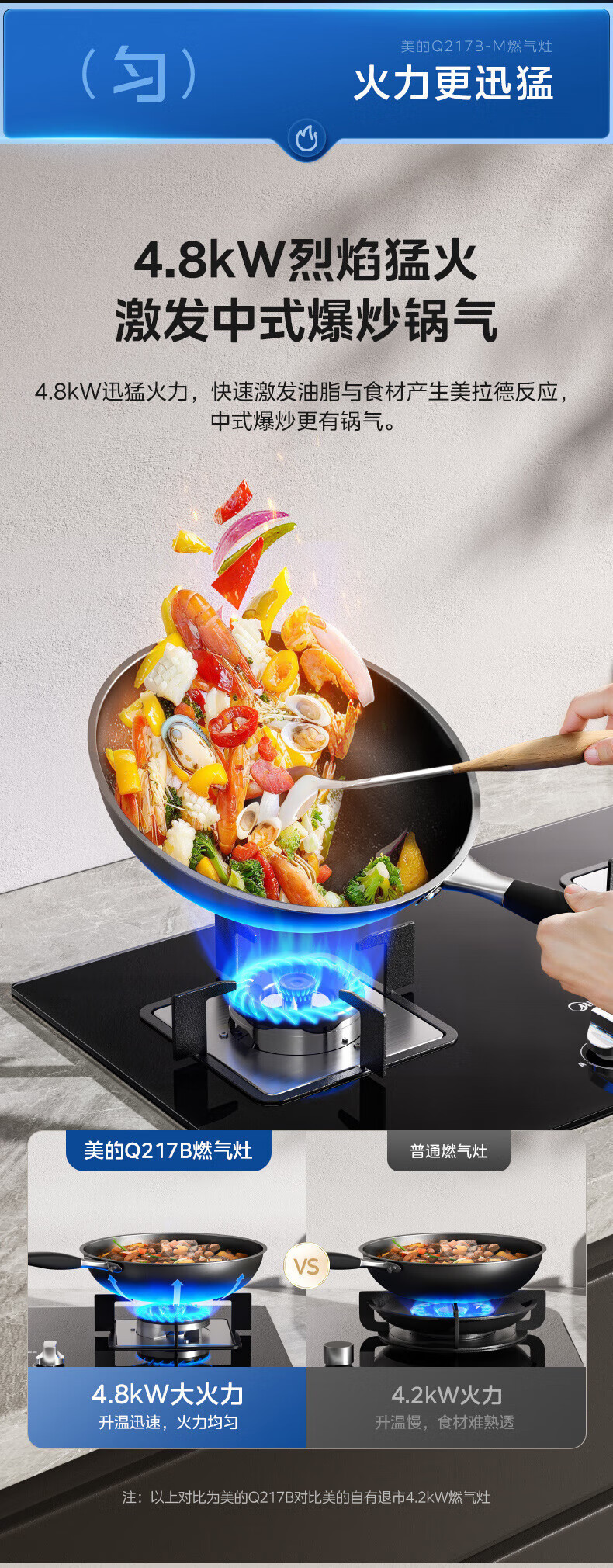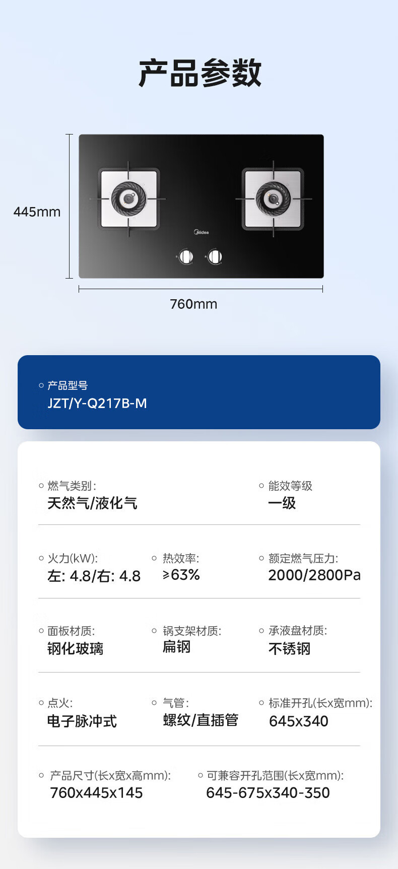 美的燃气灶家用天燃气双眼灶4.8KW大火力天然气台嵌两用式猛火灶
