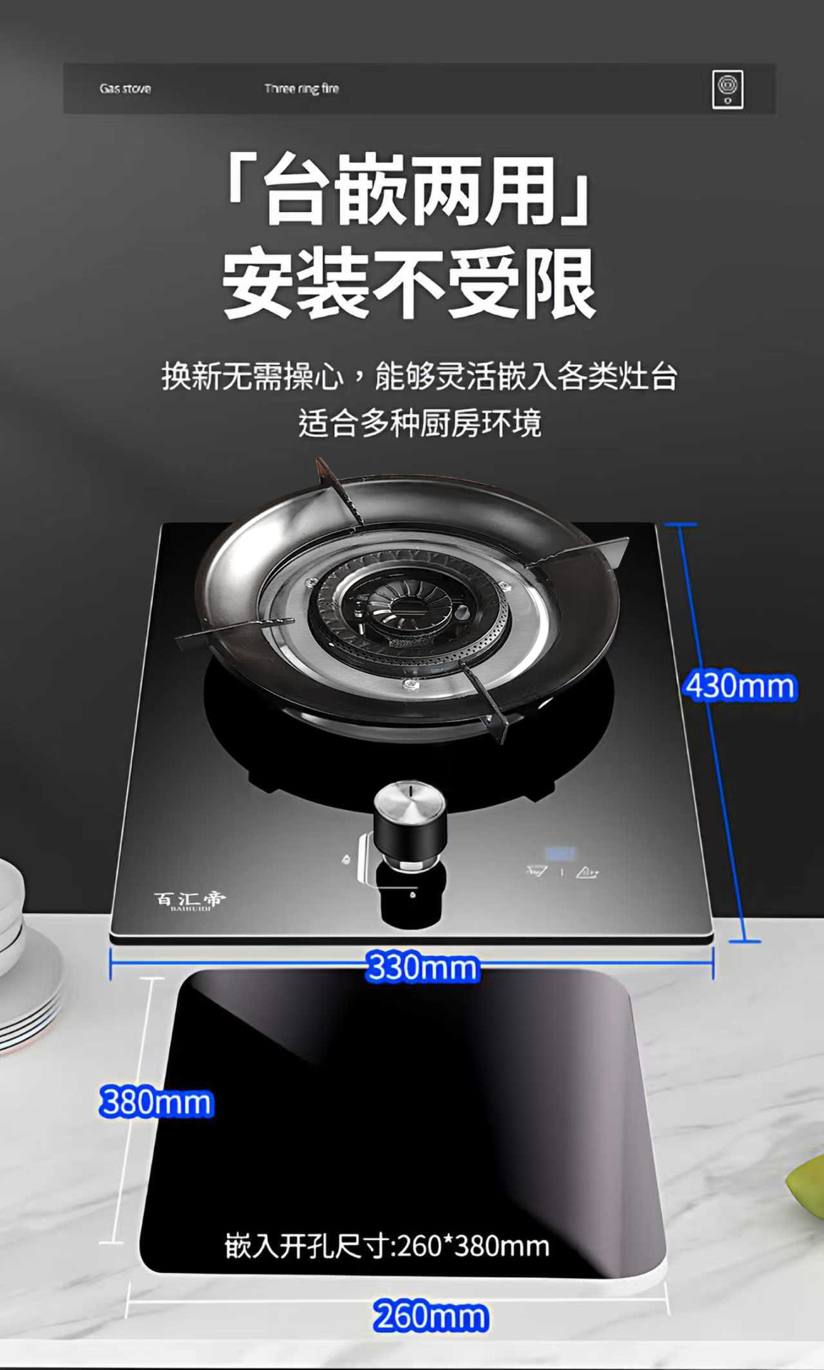 家用厨房出租房燃气灶单灶钢化玻璃煤气灶台嵌两用熄火保护灶具