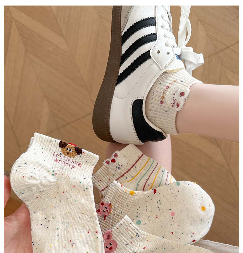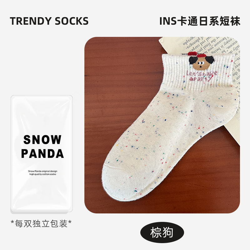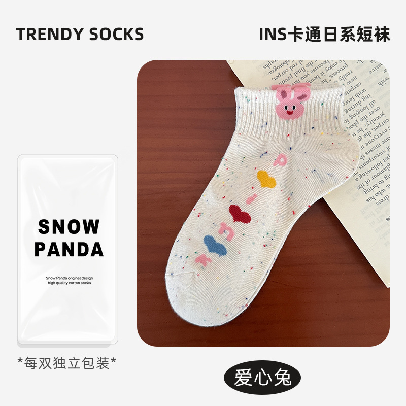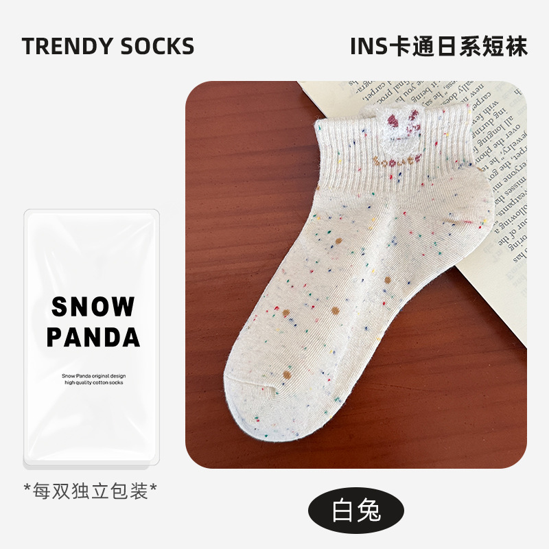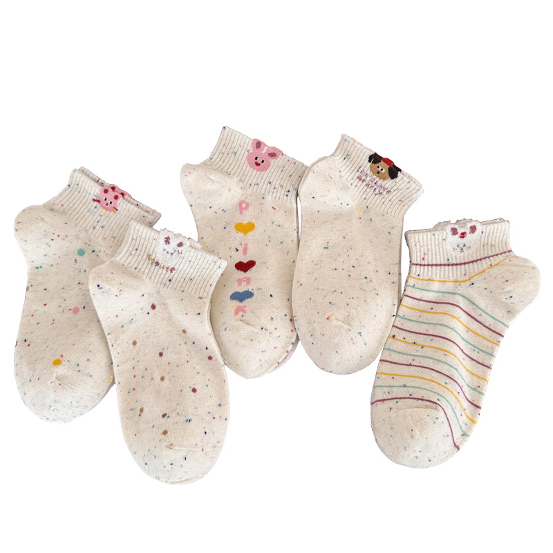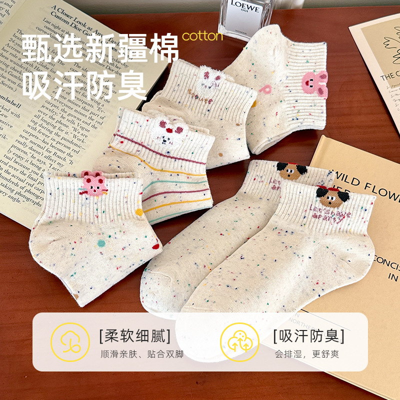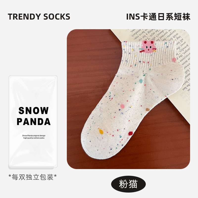 春夏新款袜子女可爱卡通点子纱棉袜ins高颜值学院风吸汗透气短袜