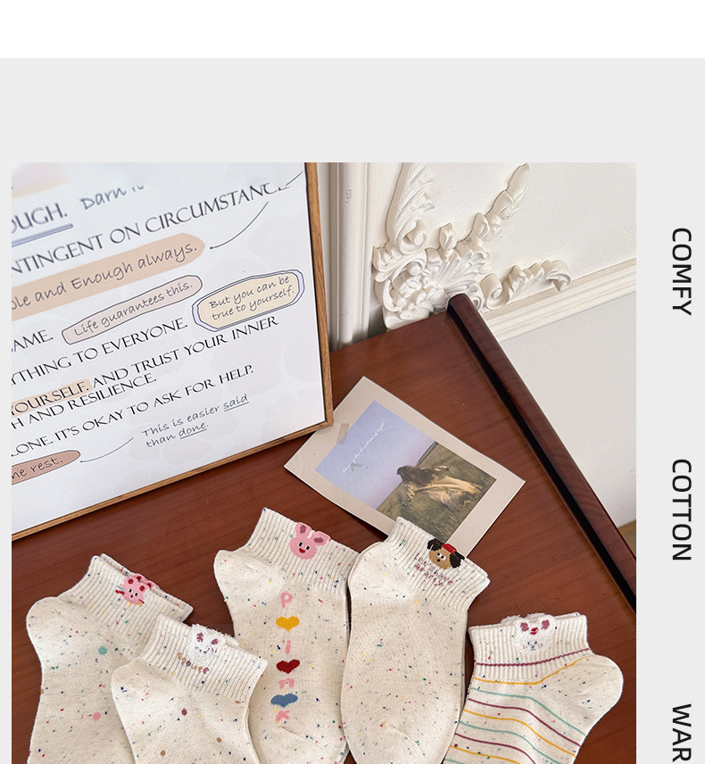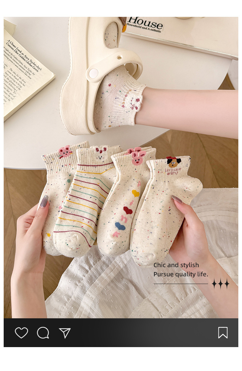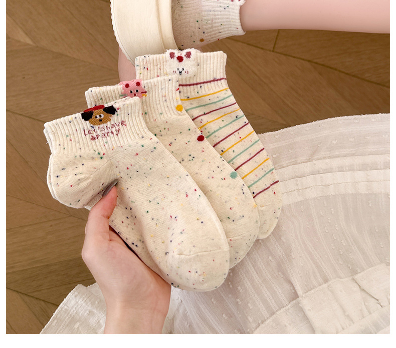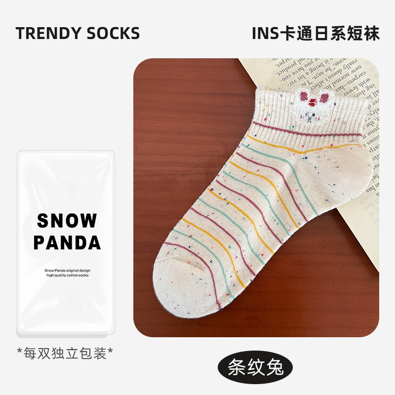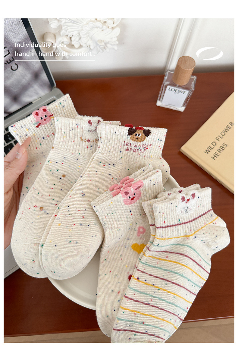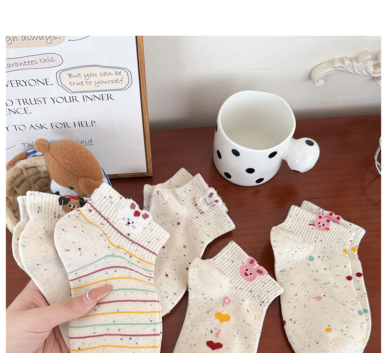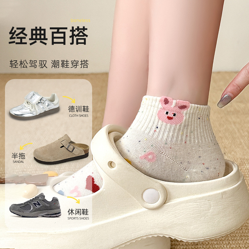 春夏新款袜子女可爱卡通点子纱棉袜ins高颜值学院风吸汗透气短袜