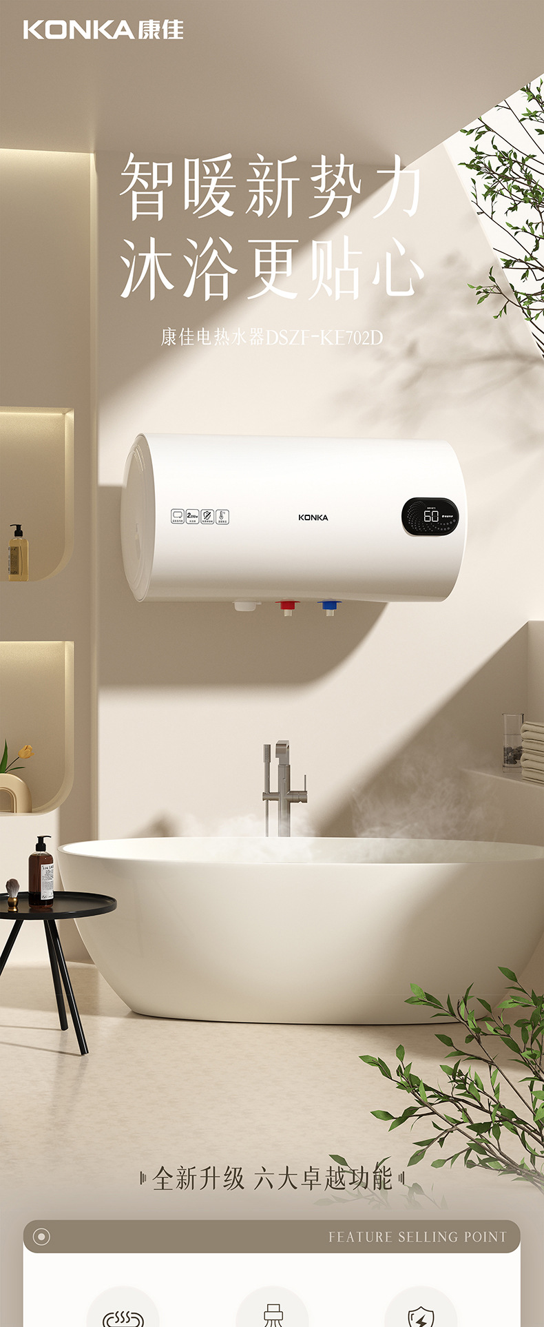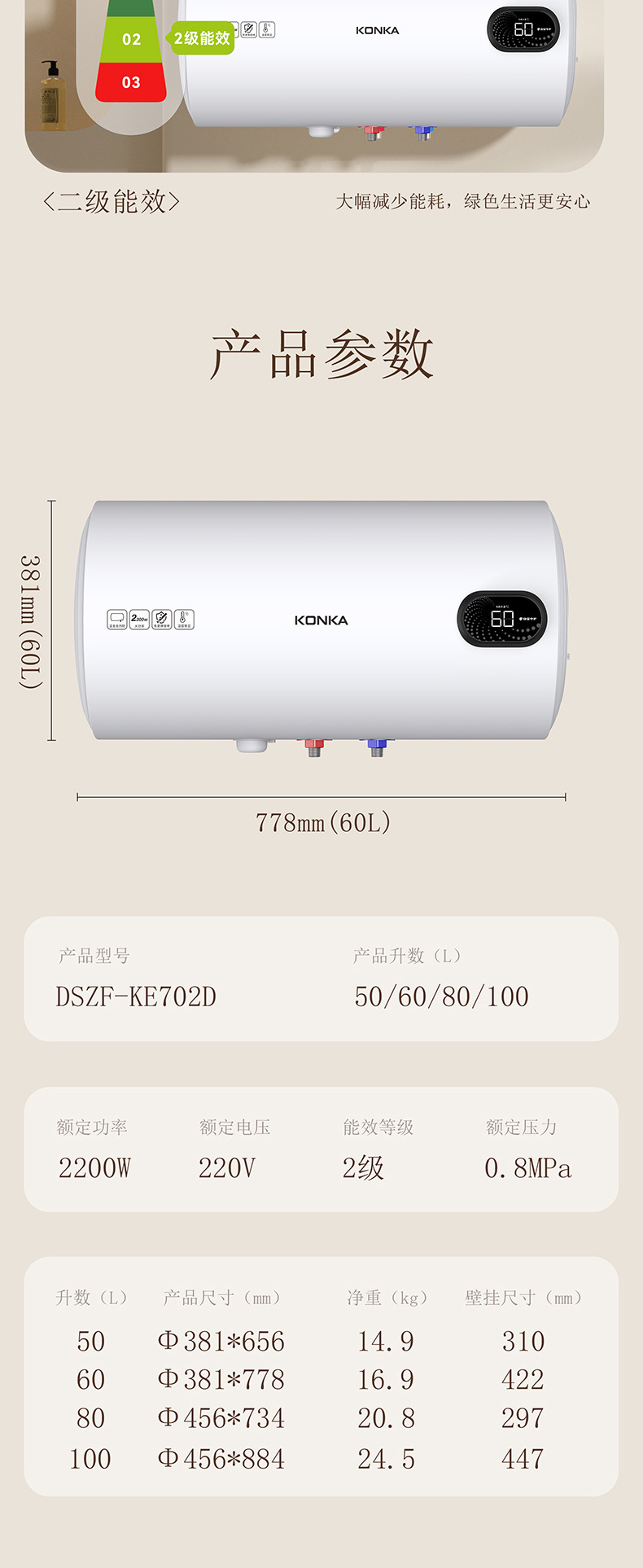 康佳厂家直销储水式热水器洗澡家用公寓节能12重保护电热水器批发