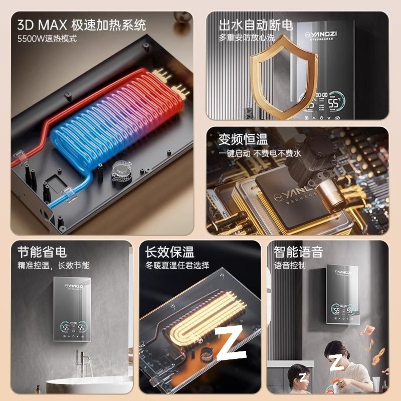 即热式电热水器家用恒温变频快速过水热卫生间速热式小型洗澡