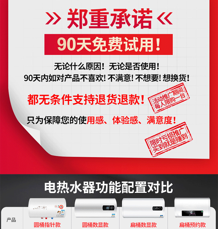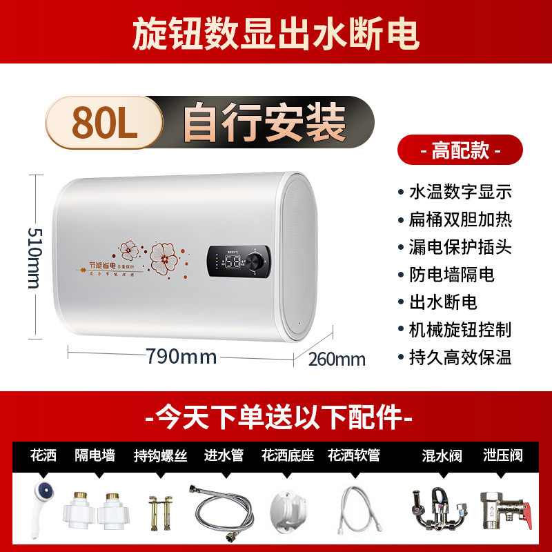 多才好太太热水器家用电热水器一级能效卫生间洗澡节能扁桶储水式