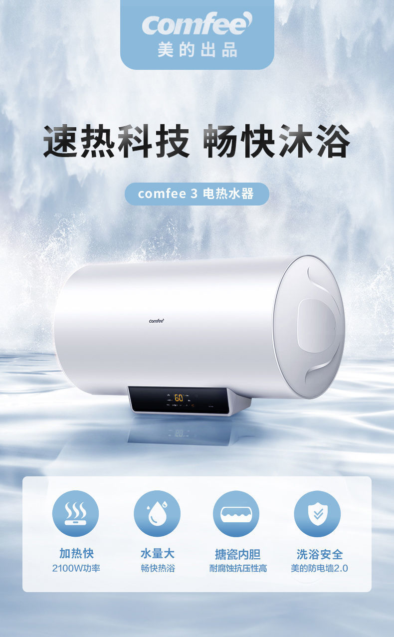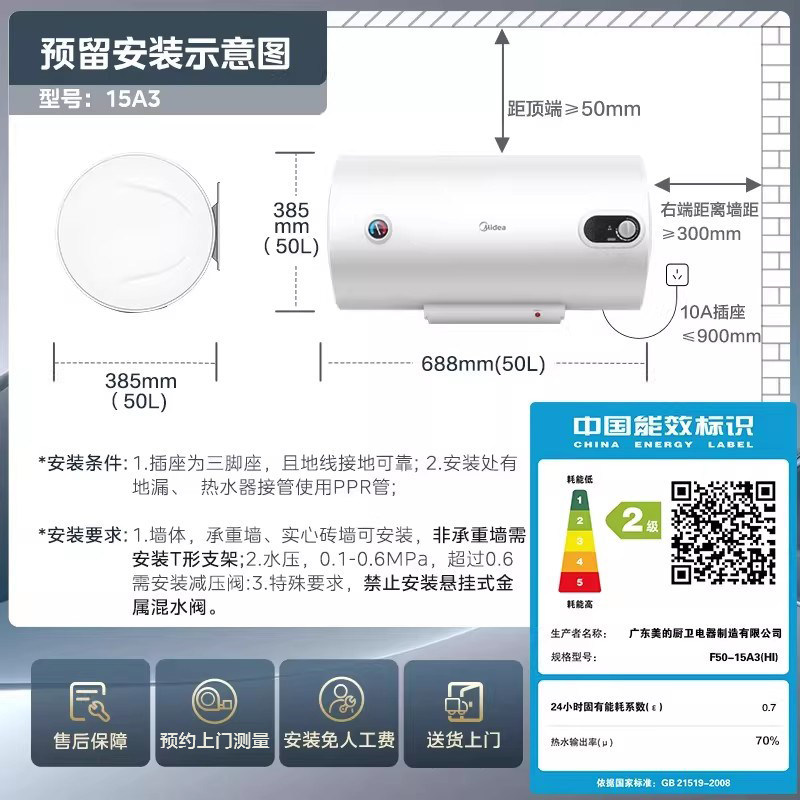 美的出品华凌电热水器家用节能卫生间租房一级能效50L60升KY1pro