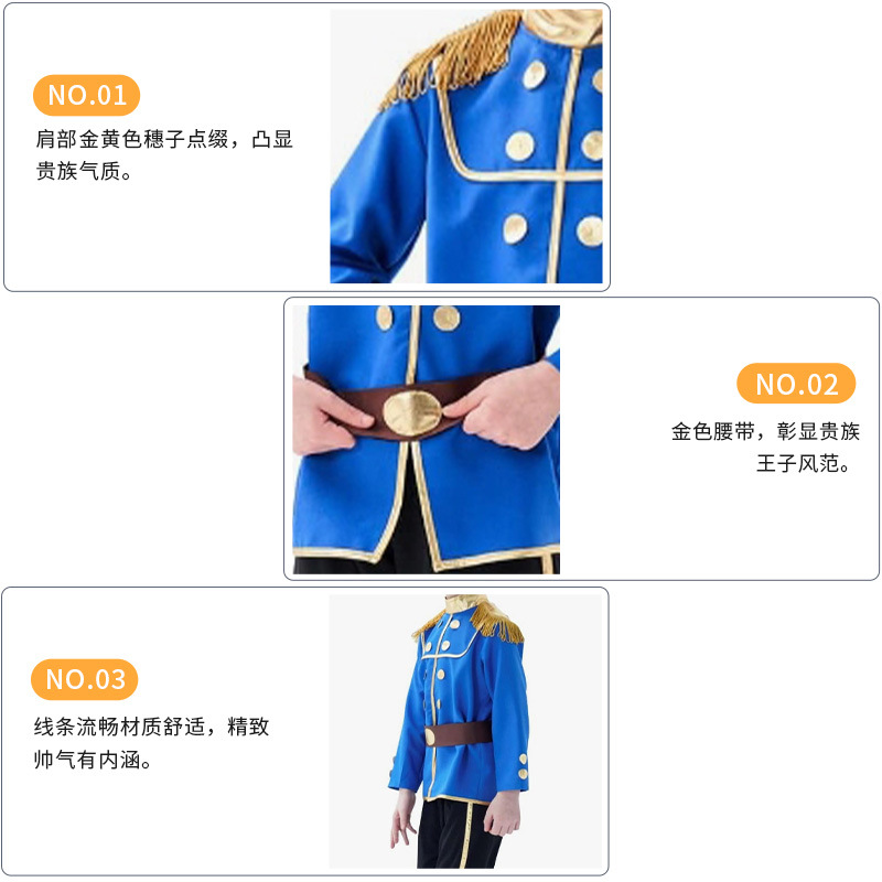 定制欧美跨境儿童演出服装cos童话王子万圣节少年表演服角色扮演