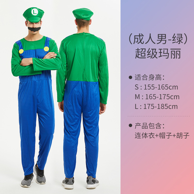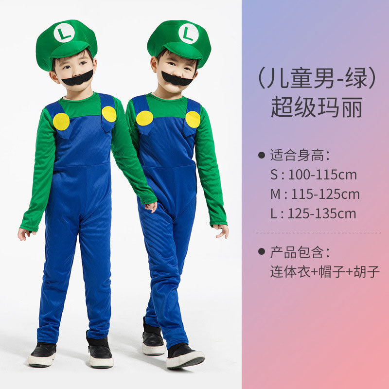 卡通超级玛丽服装cosplay亲子装泡泡袖扮演马里奥cos服装演出服