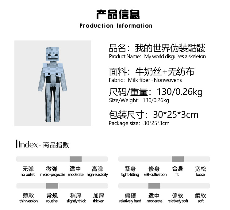 跨境新款万圣节服饰我的世界大电影Y连体衣真人同款儿童舞台表演