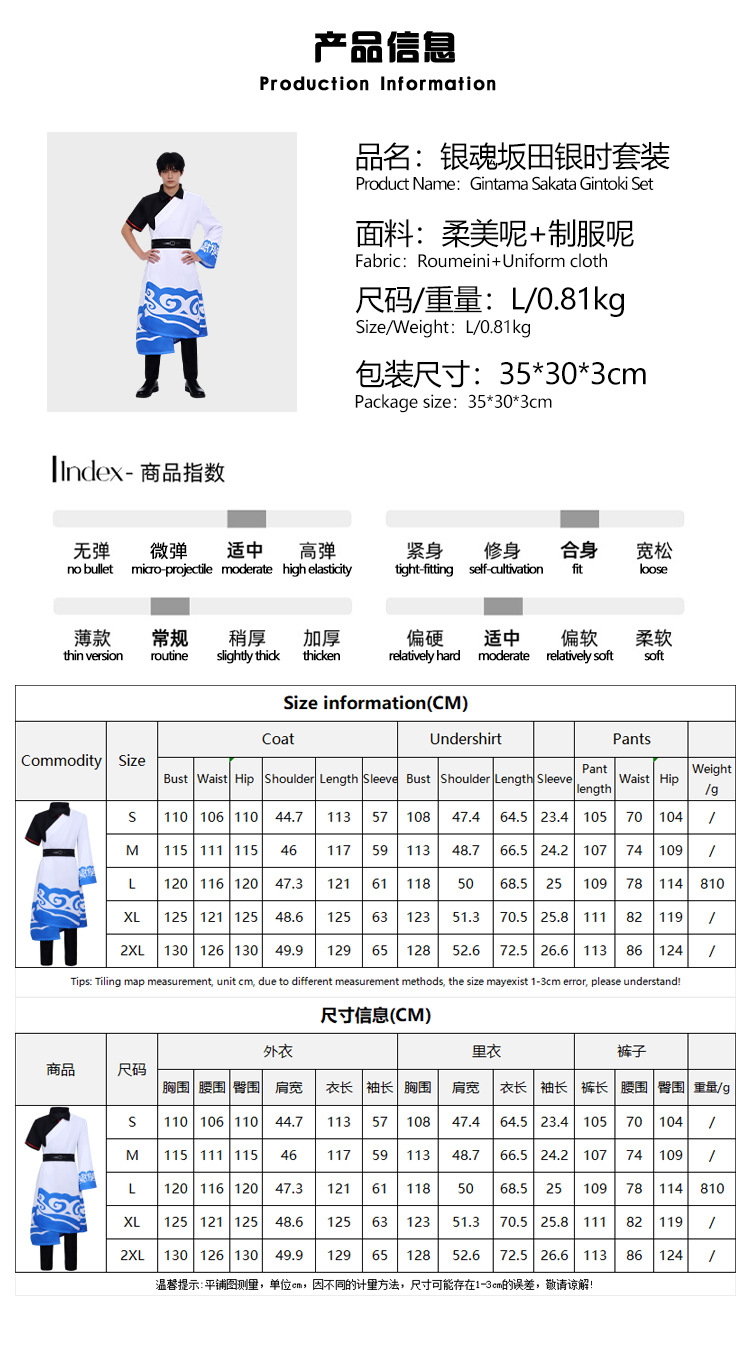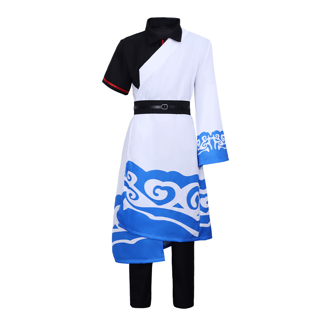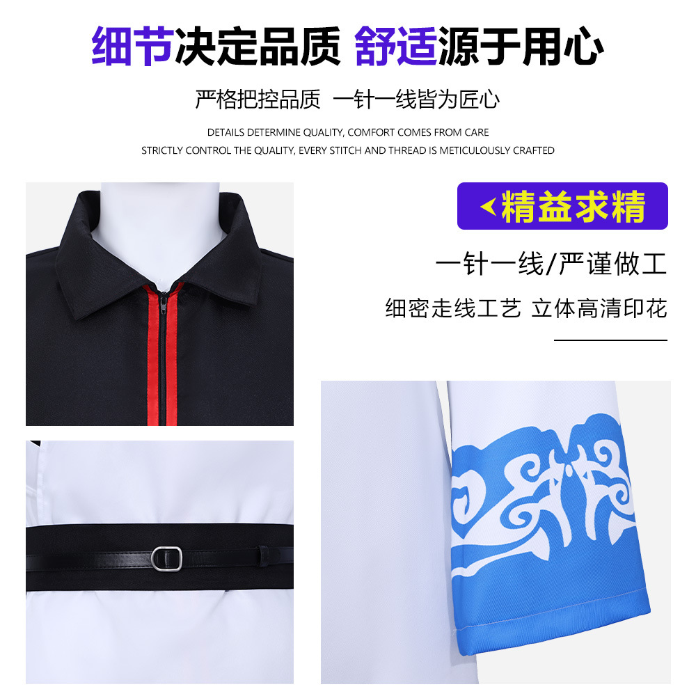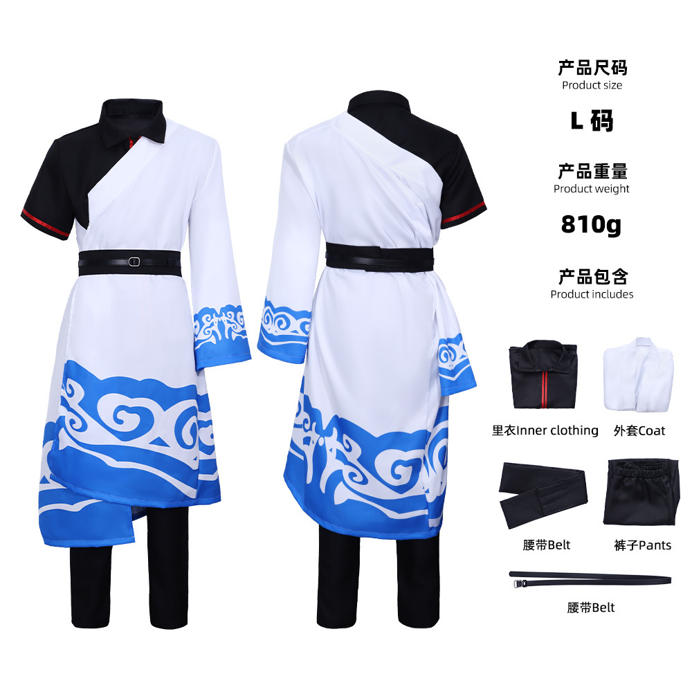 跨境2银魂坂田银时cos服黑白蓝祥云印花和服儿童成人动漫演出服X