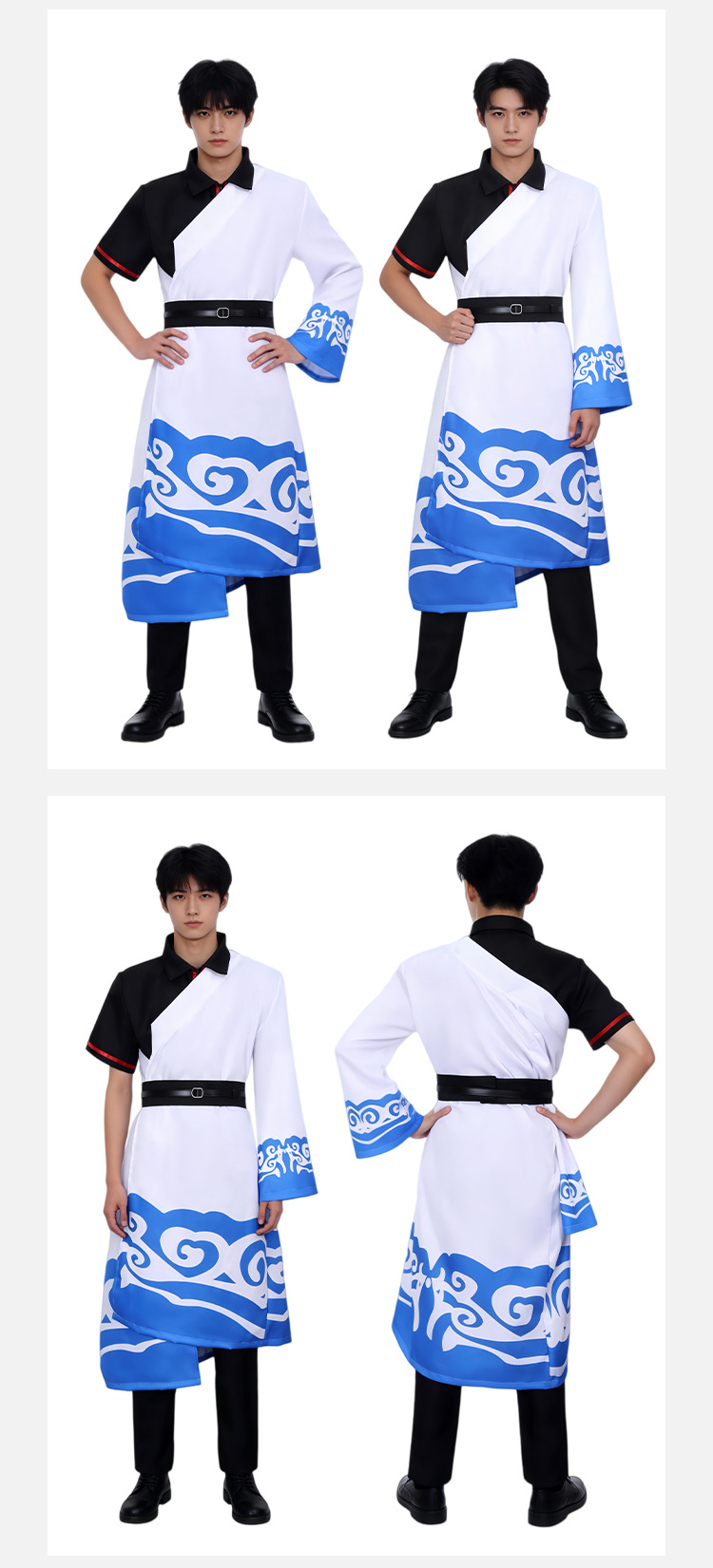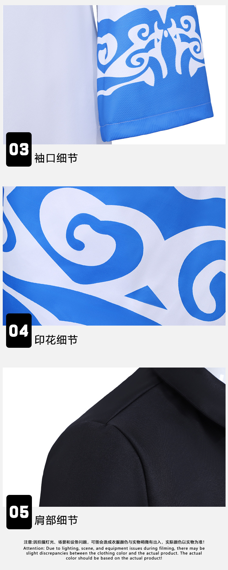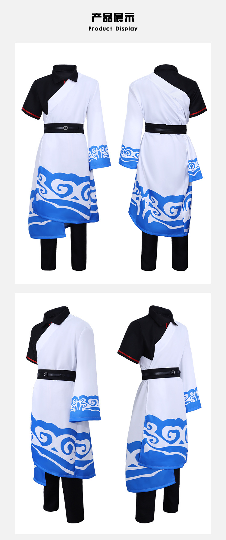跨境2银魂坂田银时cos服黑白蓝祥云印花和服儿童成人动漫演出服X