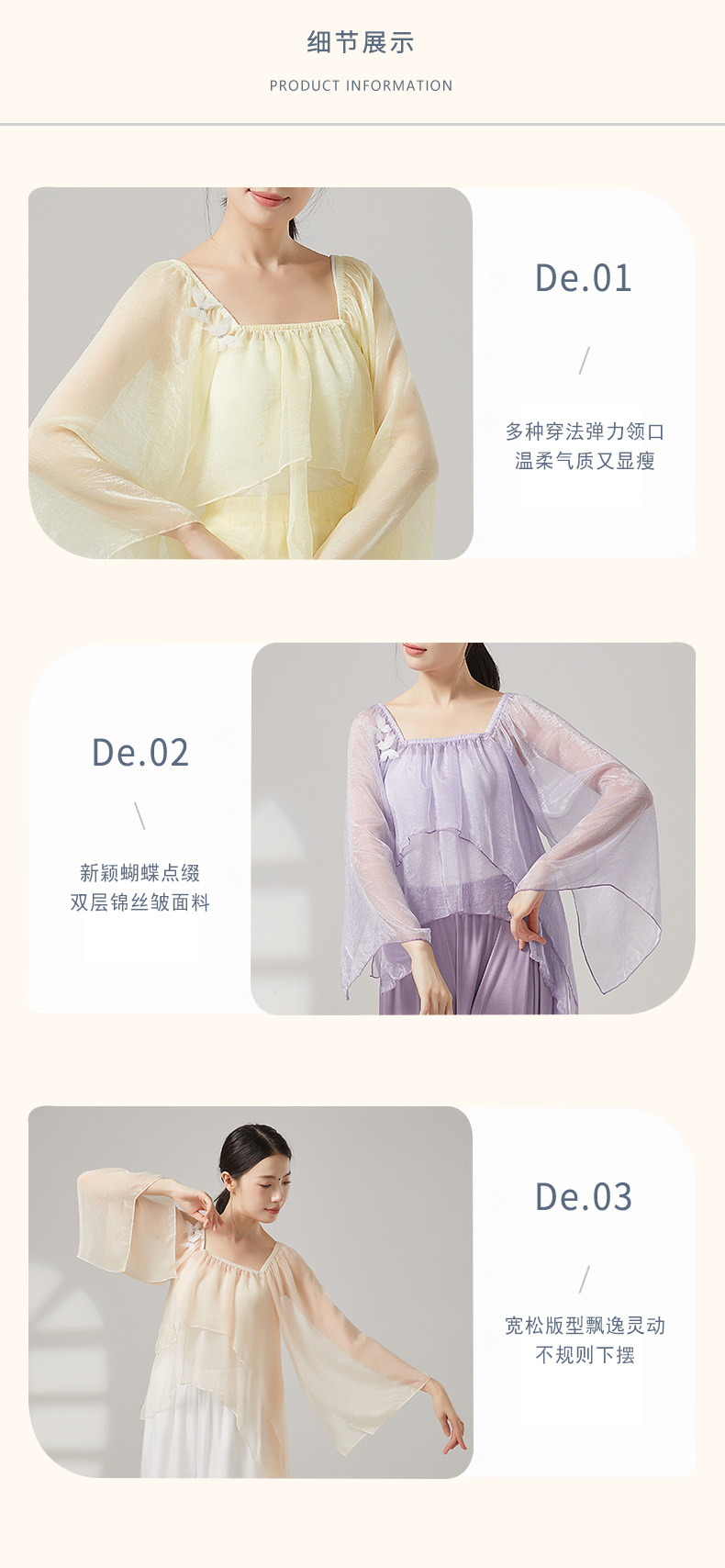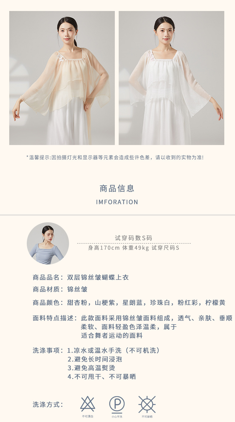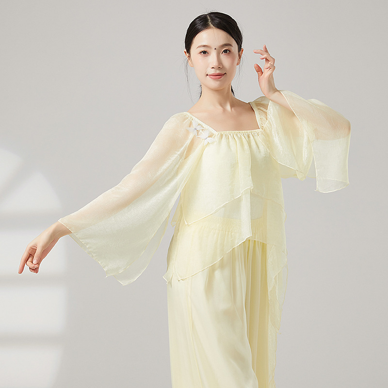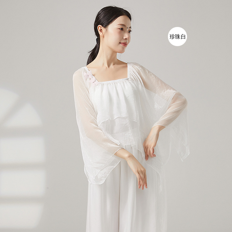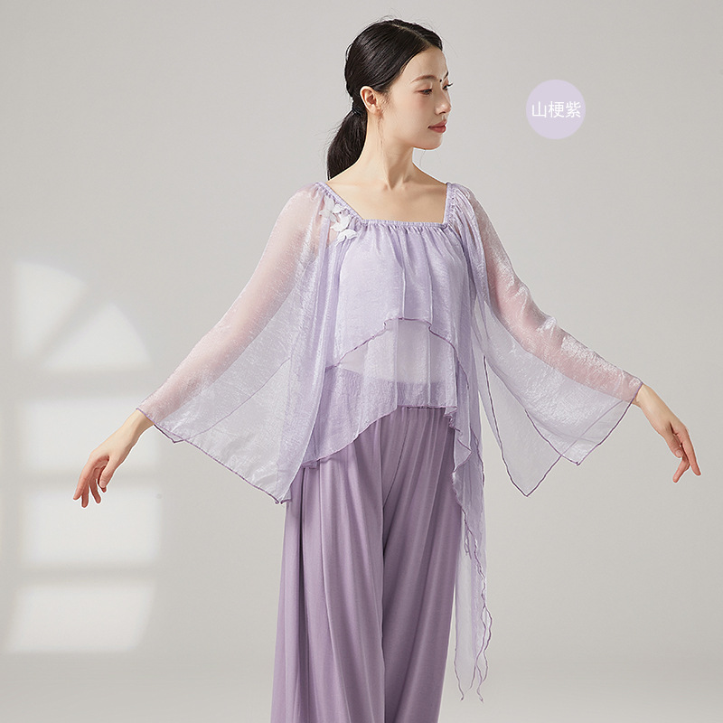 古典舞蹈服女宽松仙气飘逸纱衣中国舞练功服形体演出服上衣