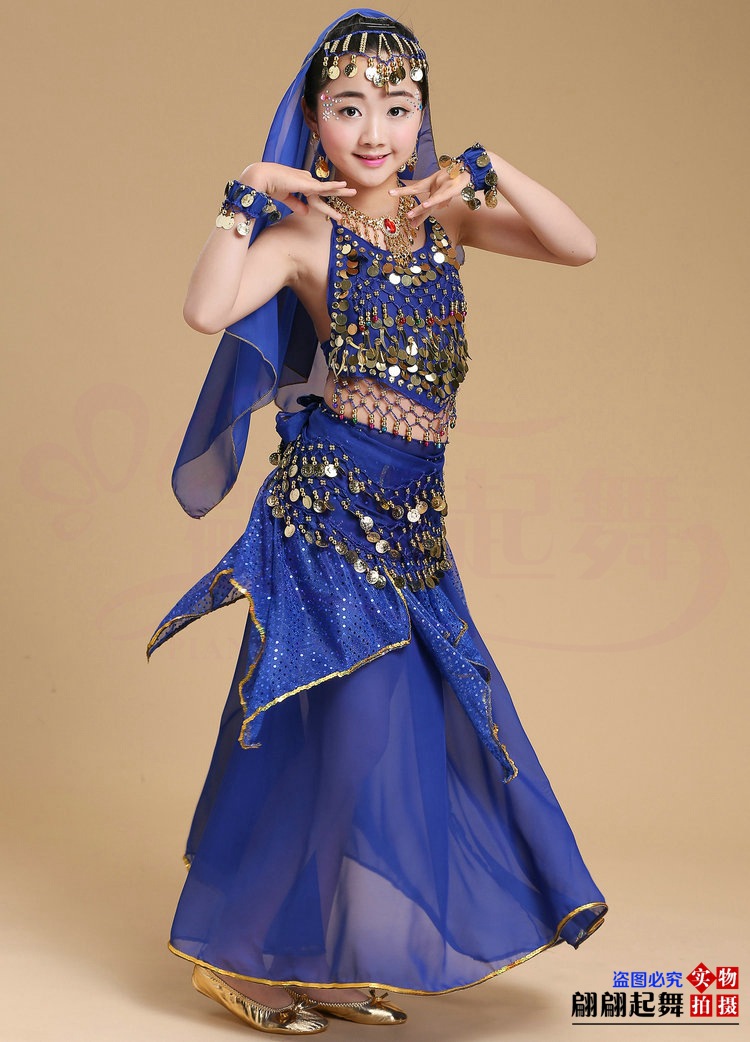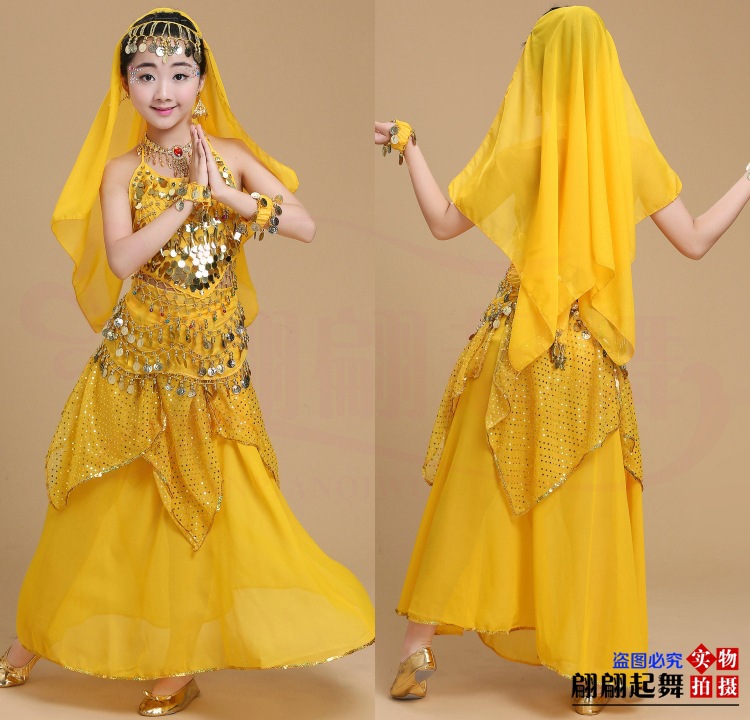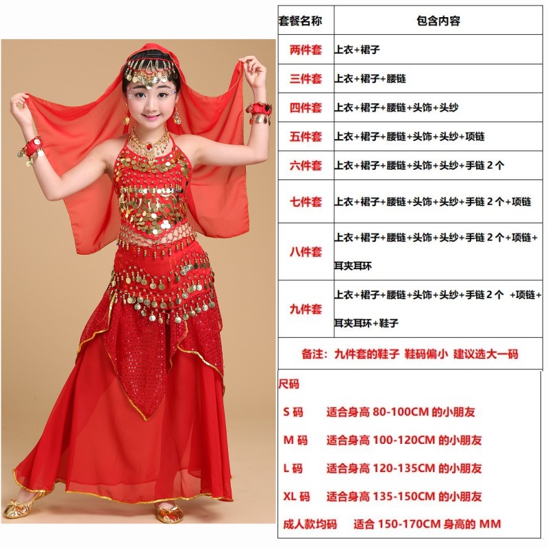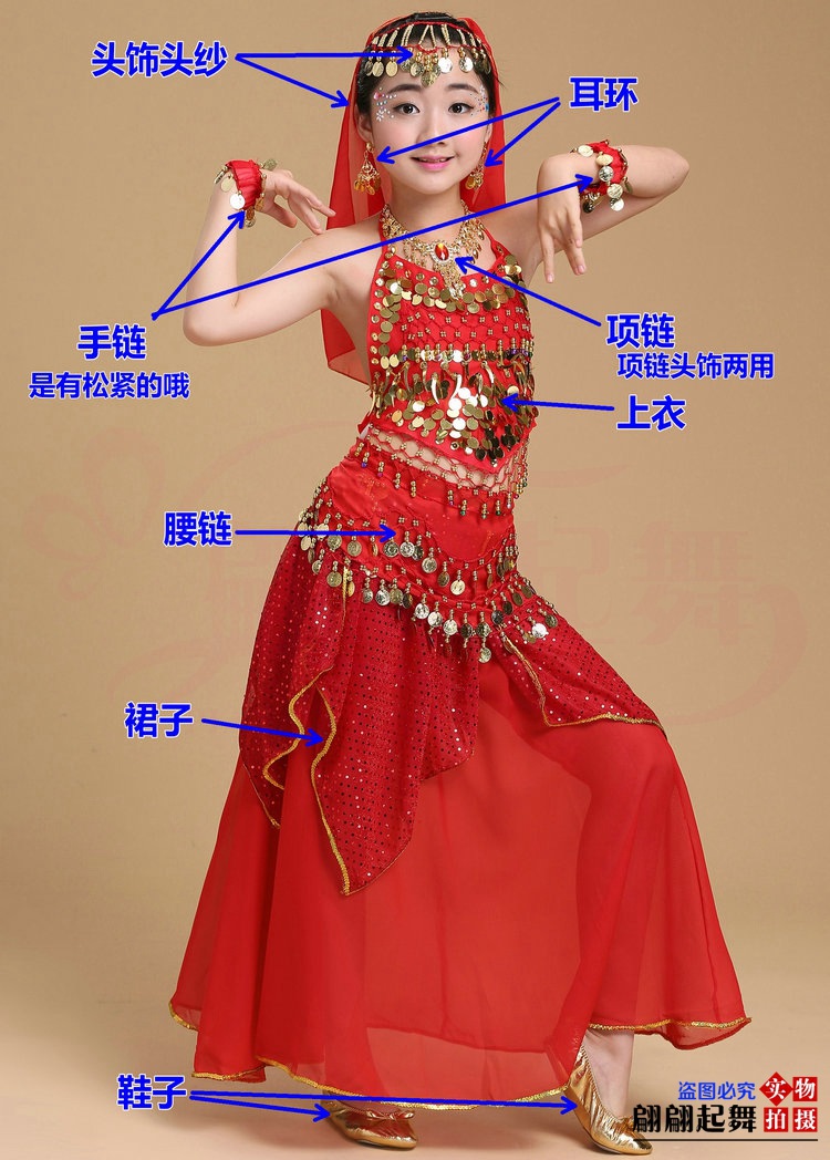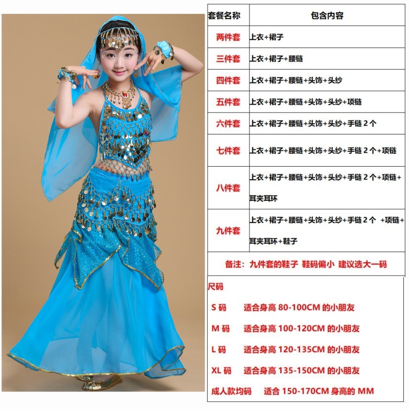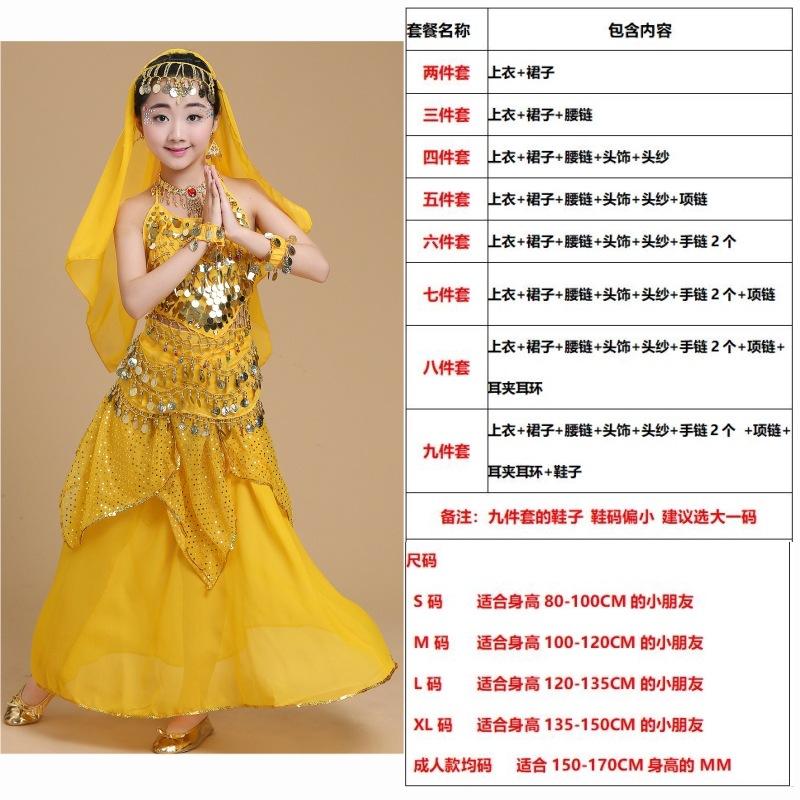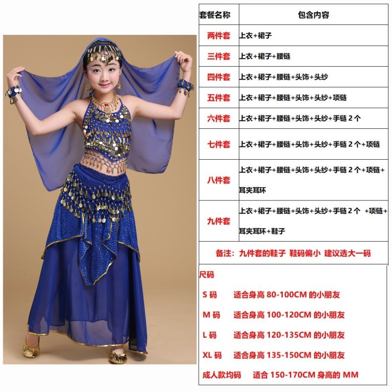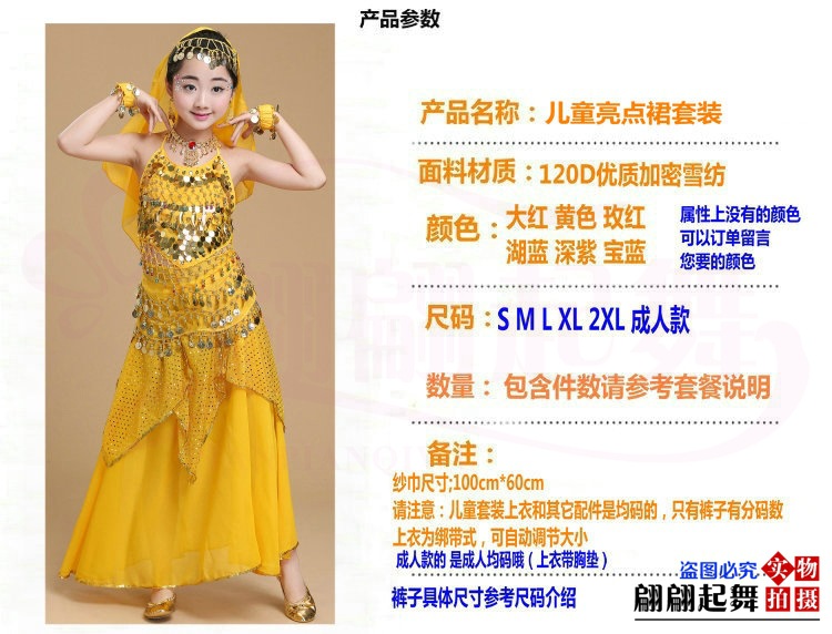 儿童舞蹈服印度舞演出民族新疆舞小孩肚皮舞亮点裙练习表演服套装