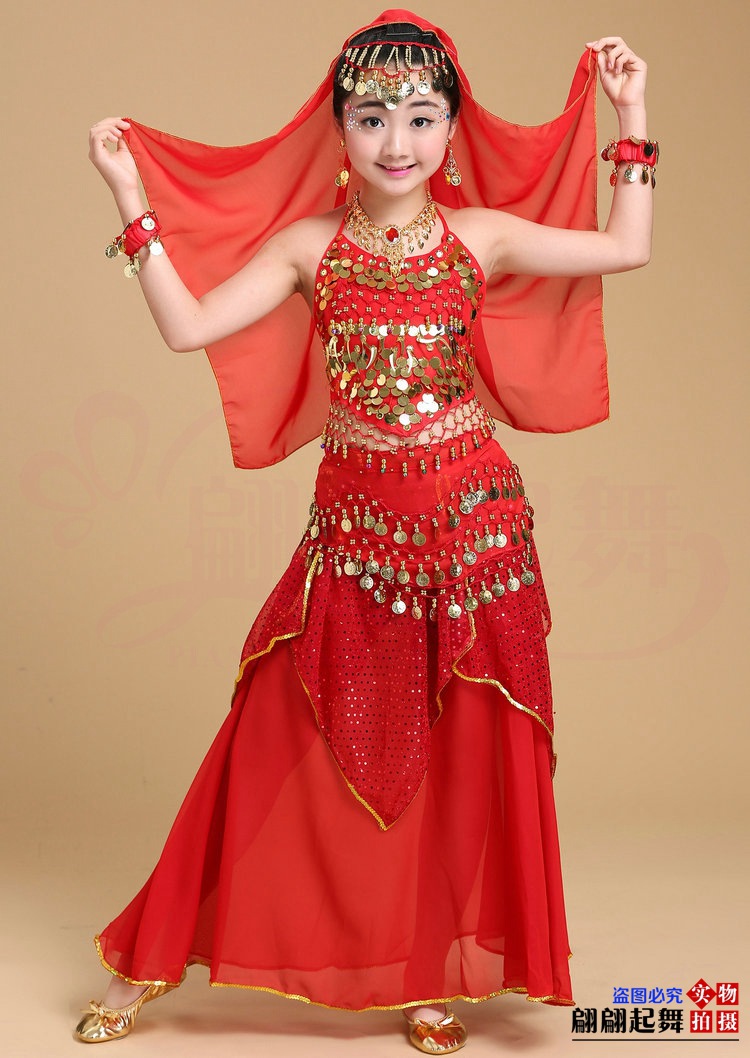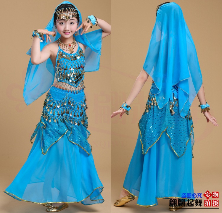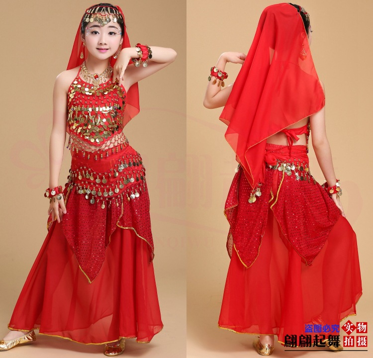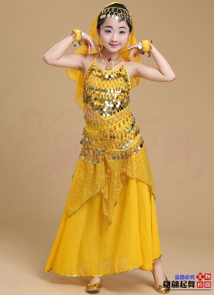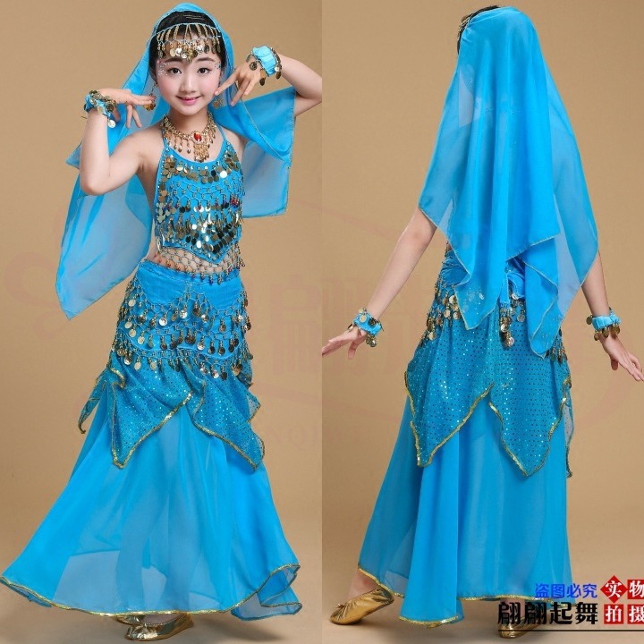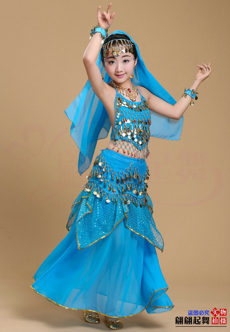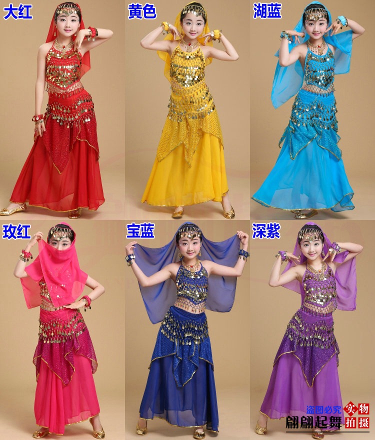 儿童舞蹈服印度舞演出民族新疆舞小孩肚皮舞亮点裙练习表演服套装