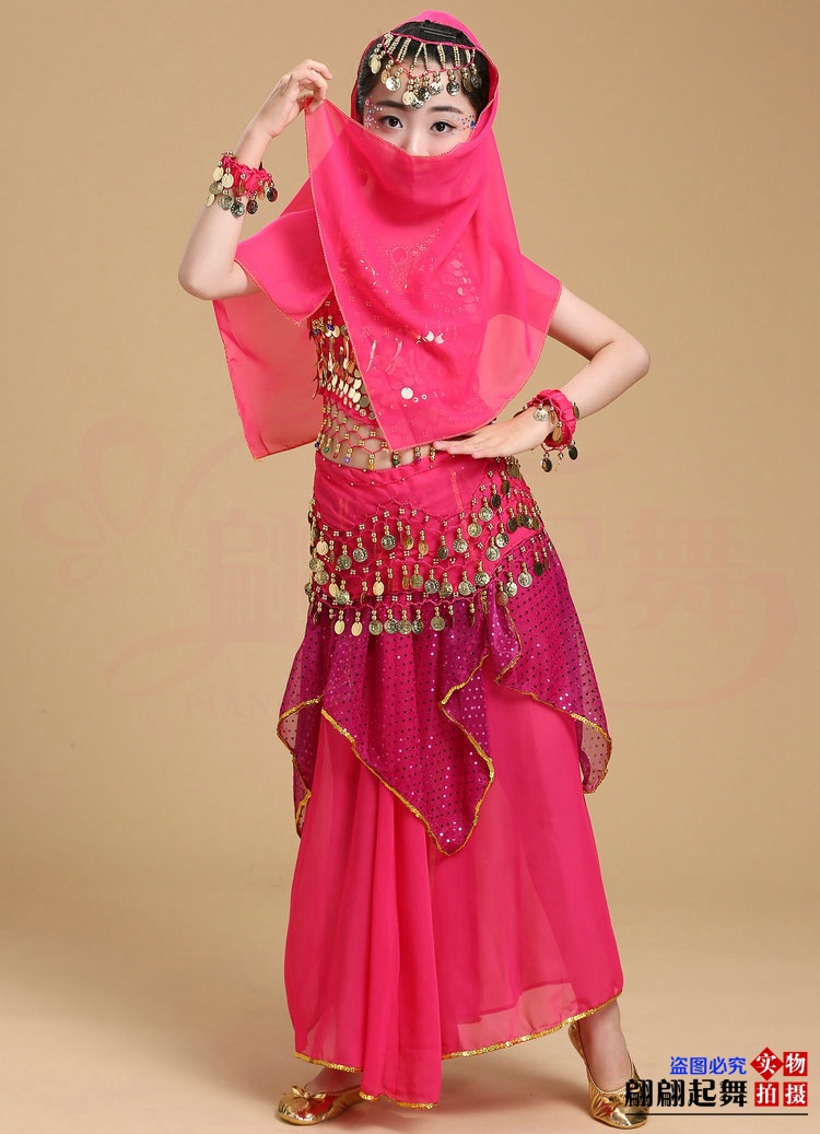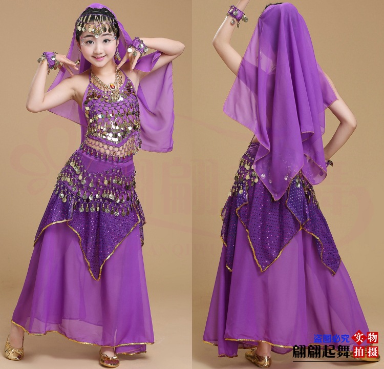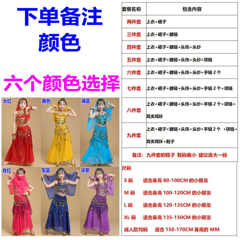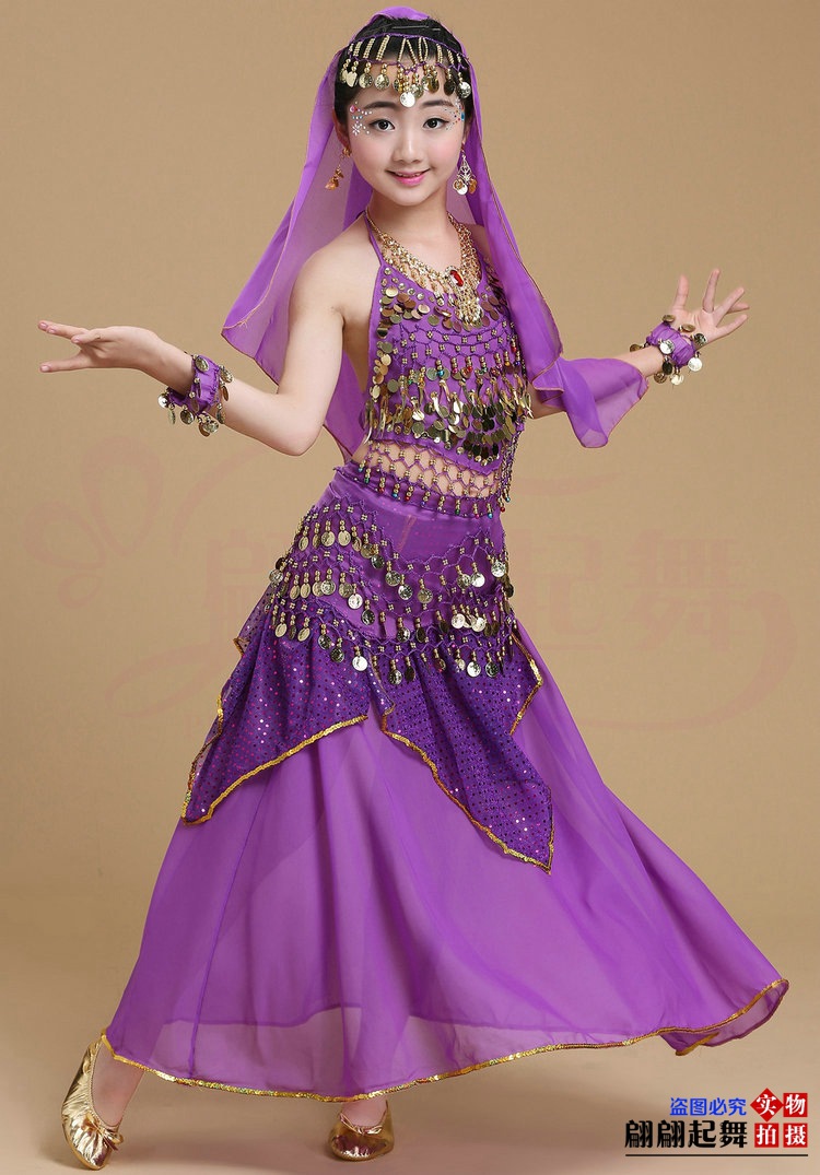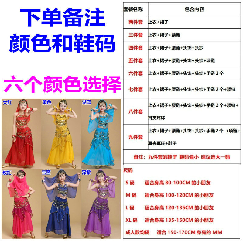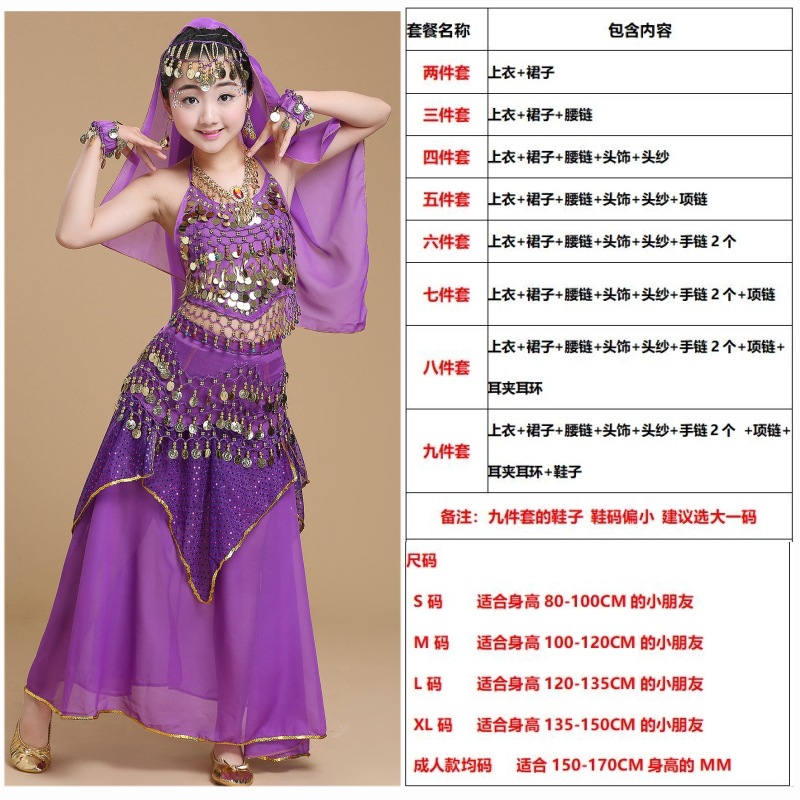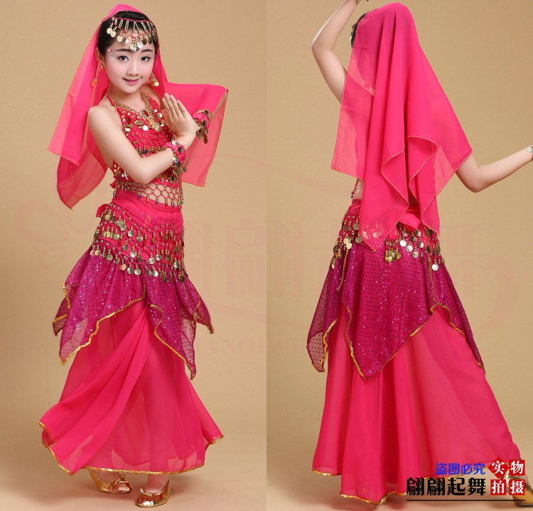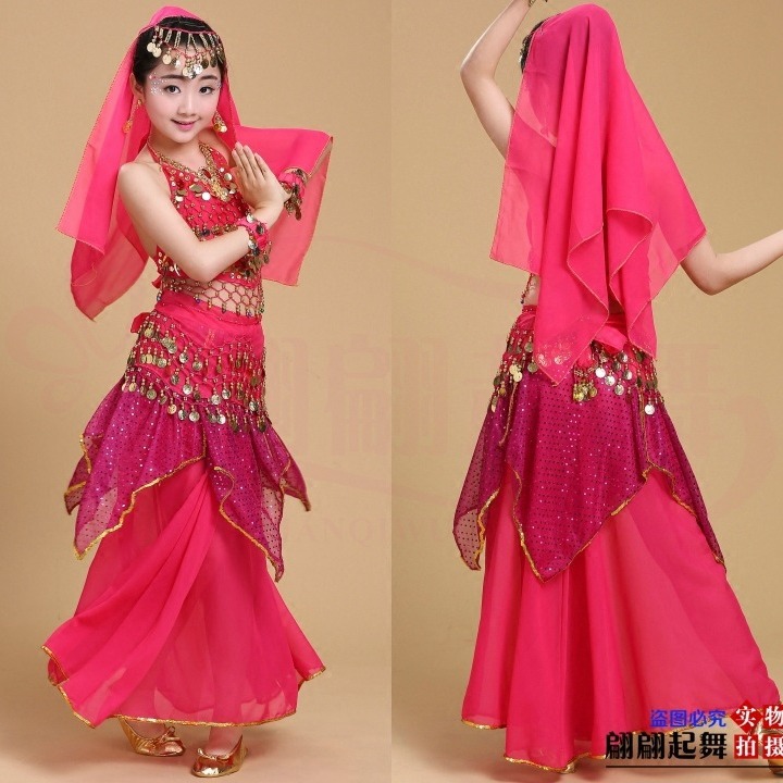 儿童舞蹈服印度舞演出民族新疆舞小孩肚皮舞亮点裙练习表演服套装