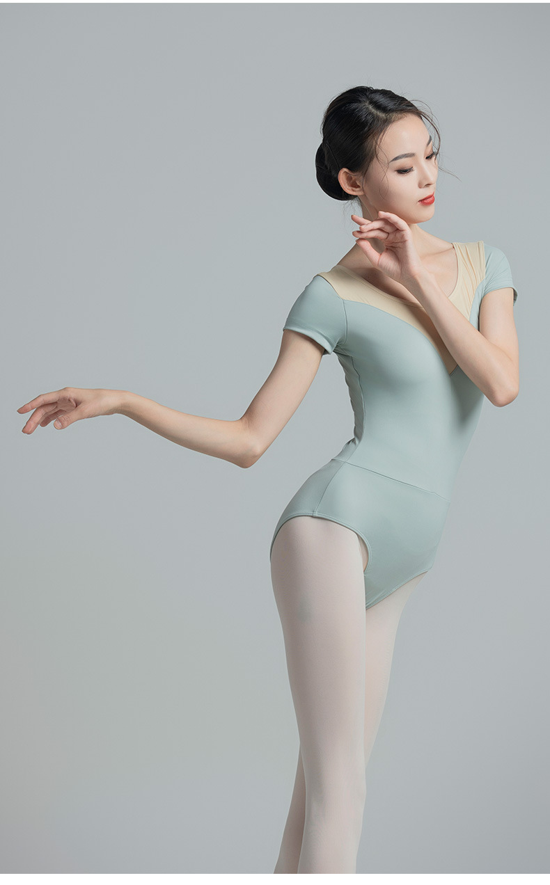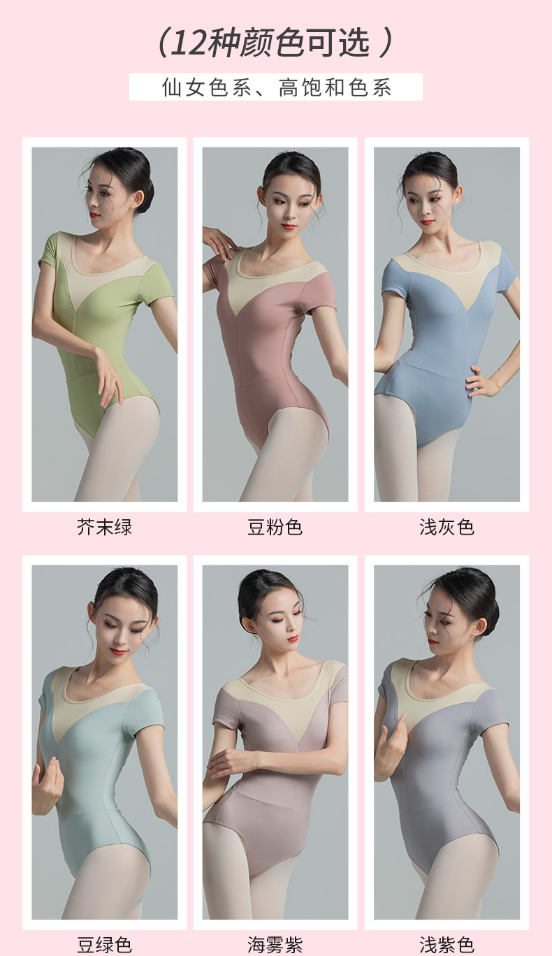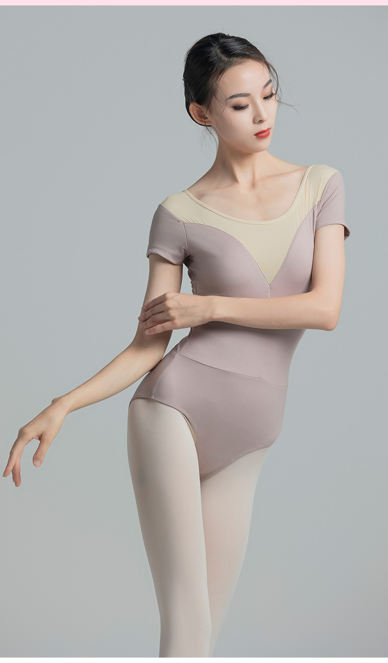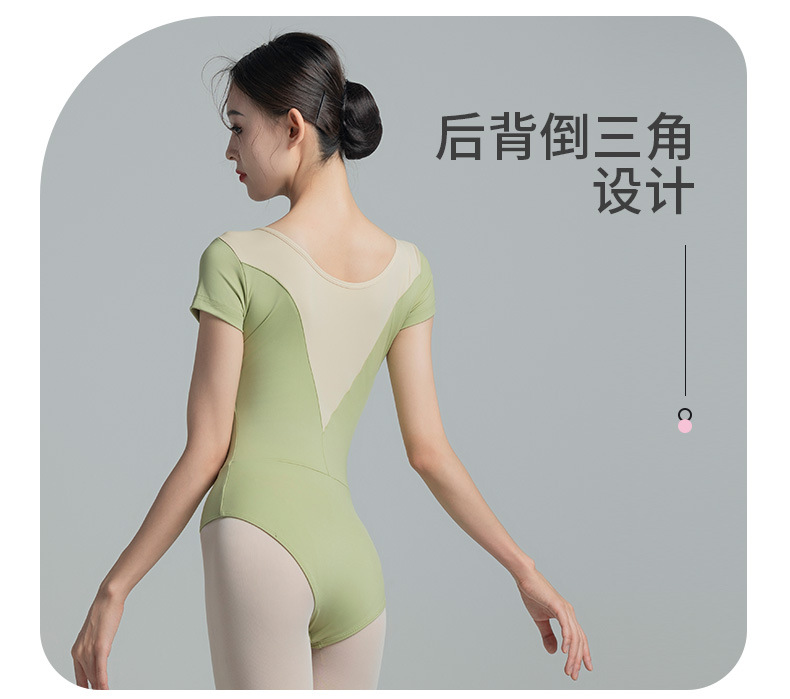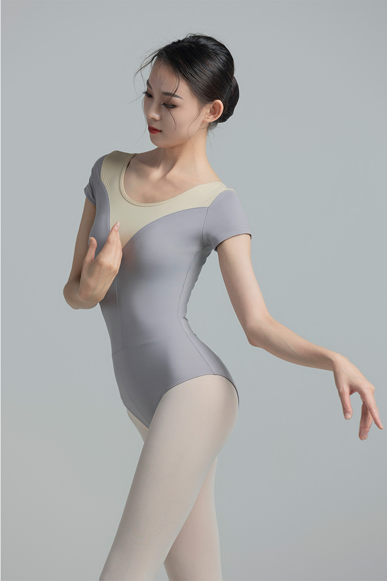 考级舞蹈服装连体衣演出练功服女成人体操芭蕾短袖锦纶拼色连体衣