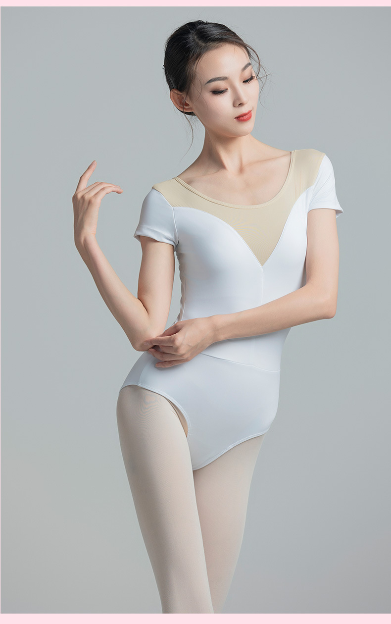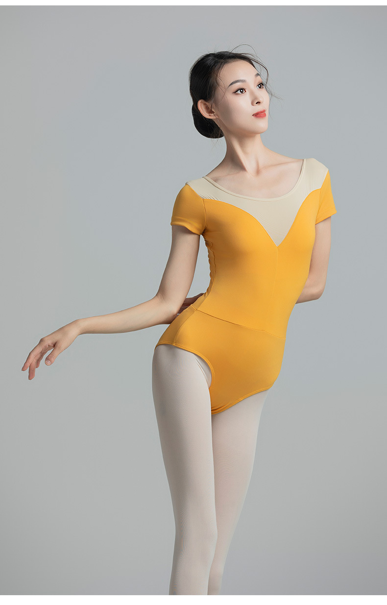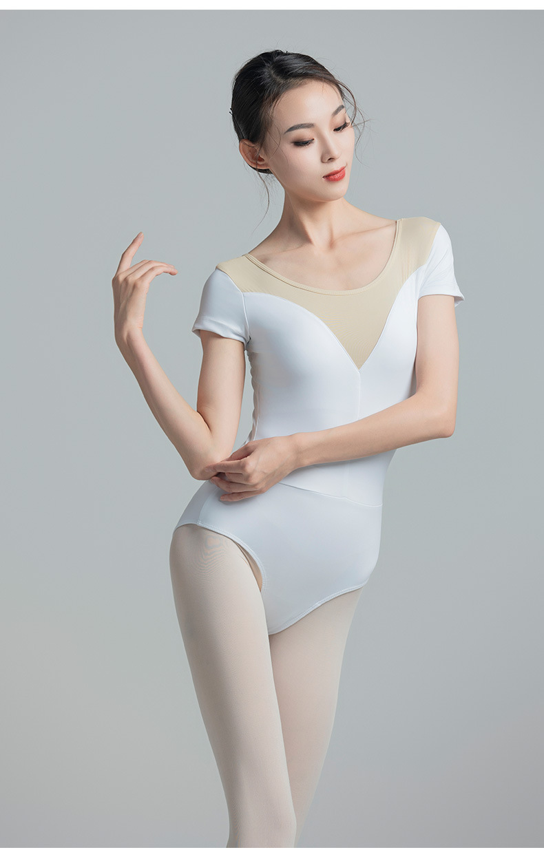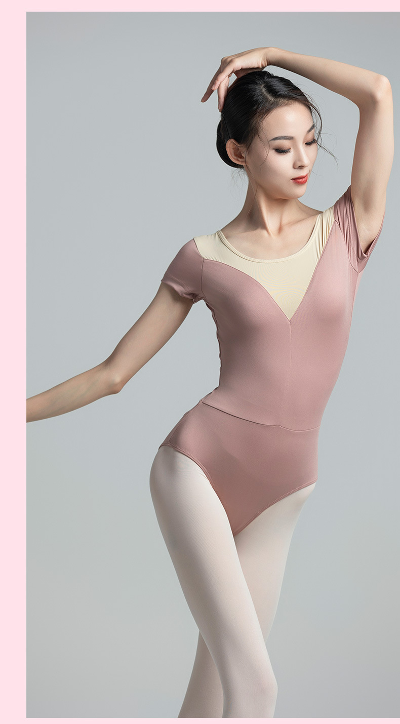 考级舞蹈服装连体衣演出练功服女成人体操芭蕾短袖锦纶拼色连体衣