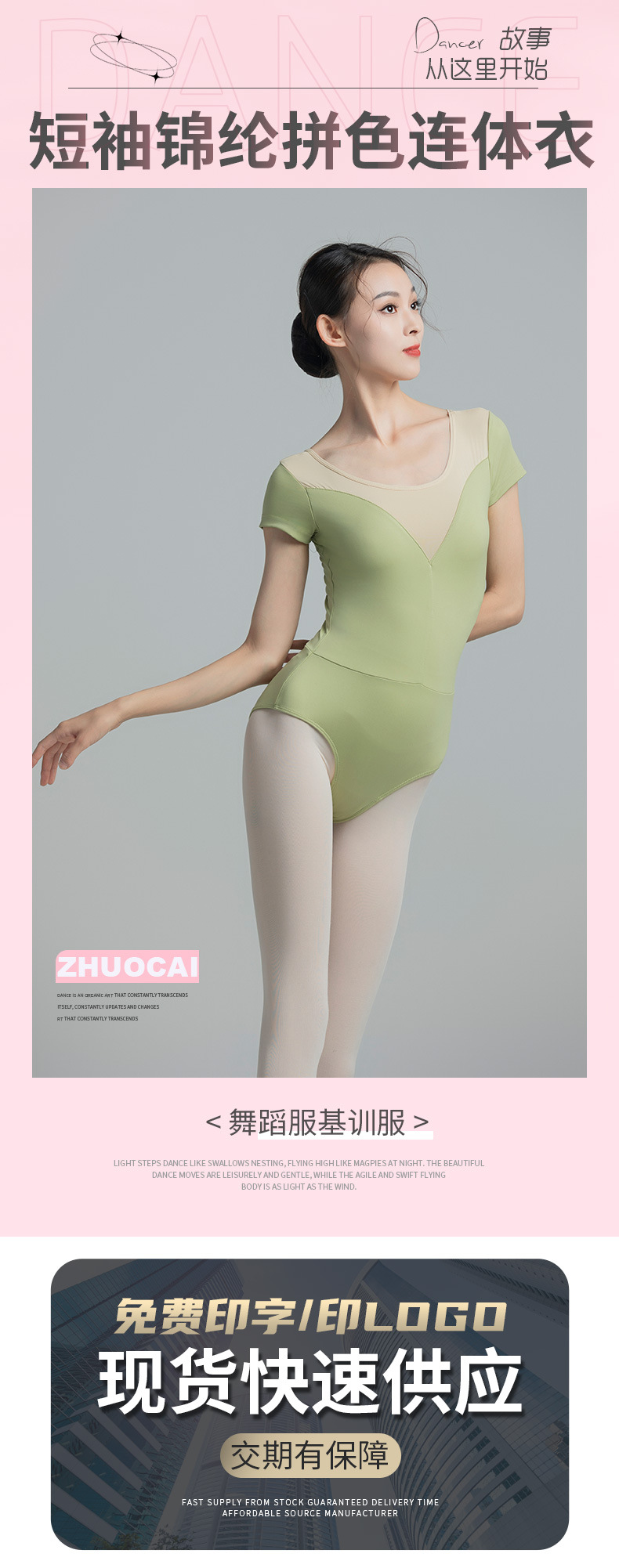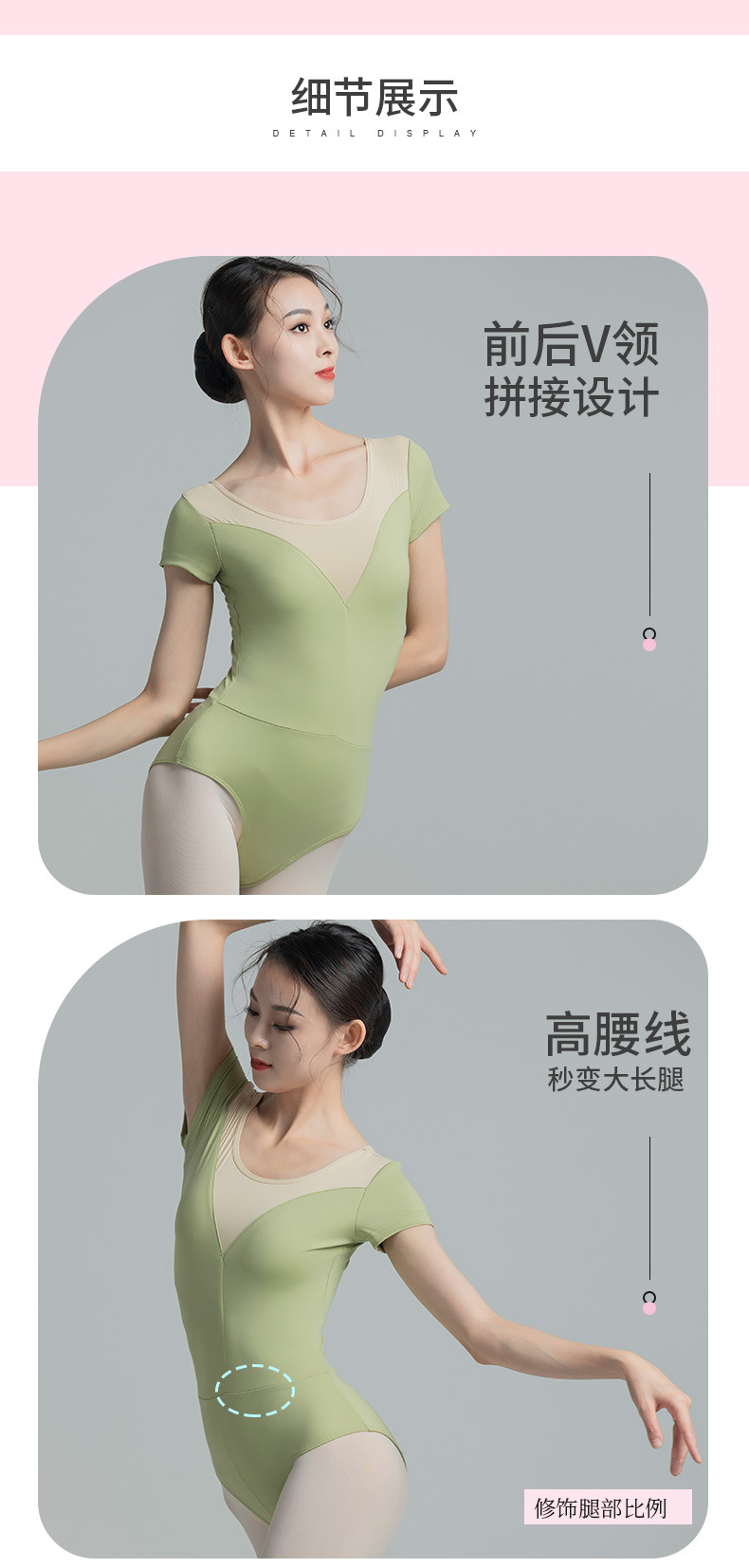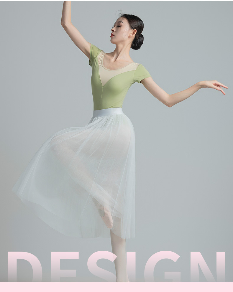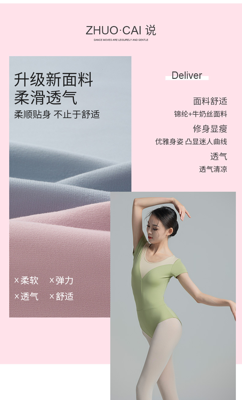考级舞蹈服装连体衣演出练功服女成人体操芭蕾短袖锦纶拼色连体衣