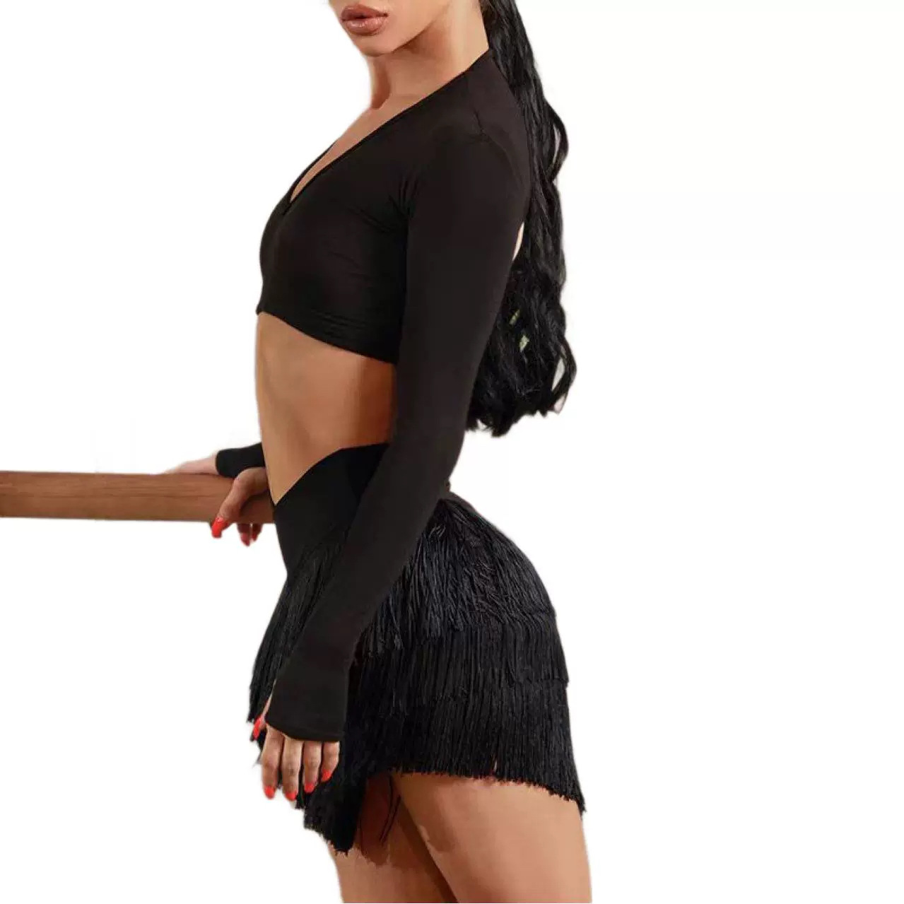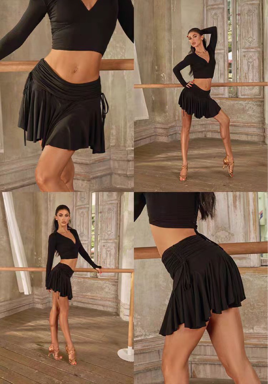 新款半裙抽绳设计荷叶裙边拉丁舞日常练功服女带底裤